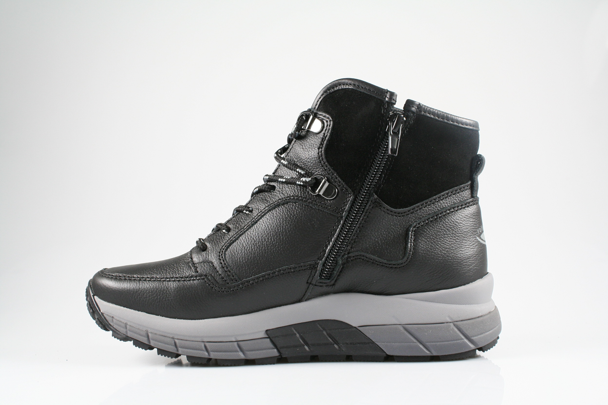 Typ: Boots; Farbe "schwarz/anthrazit"; Ausstattung:; - Obermaterial: Glattleder; - Warmfutter; - herausnehmbares Fußbett; - leichte Laufsohle; - gepolsterter Schaftrand; - Schnürsenkel und Reißverschluss zur Weitenregulierung;