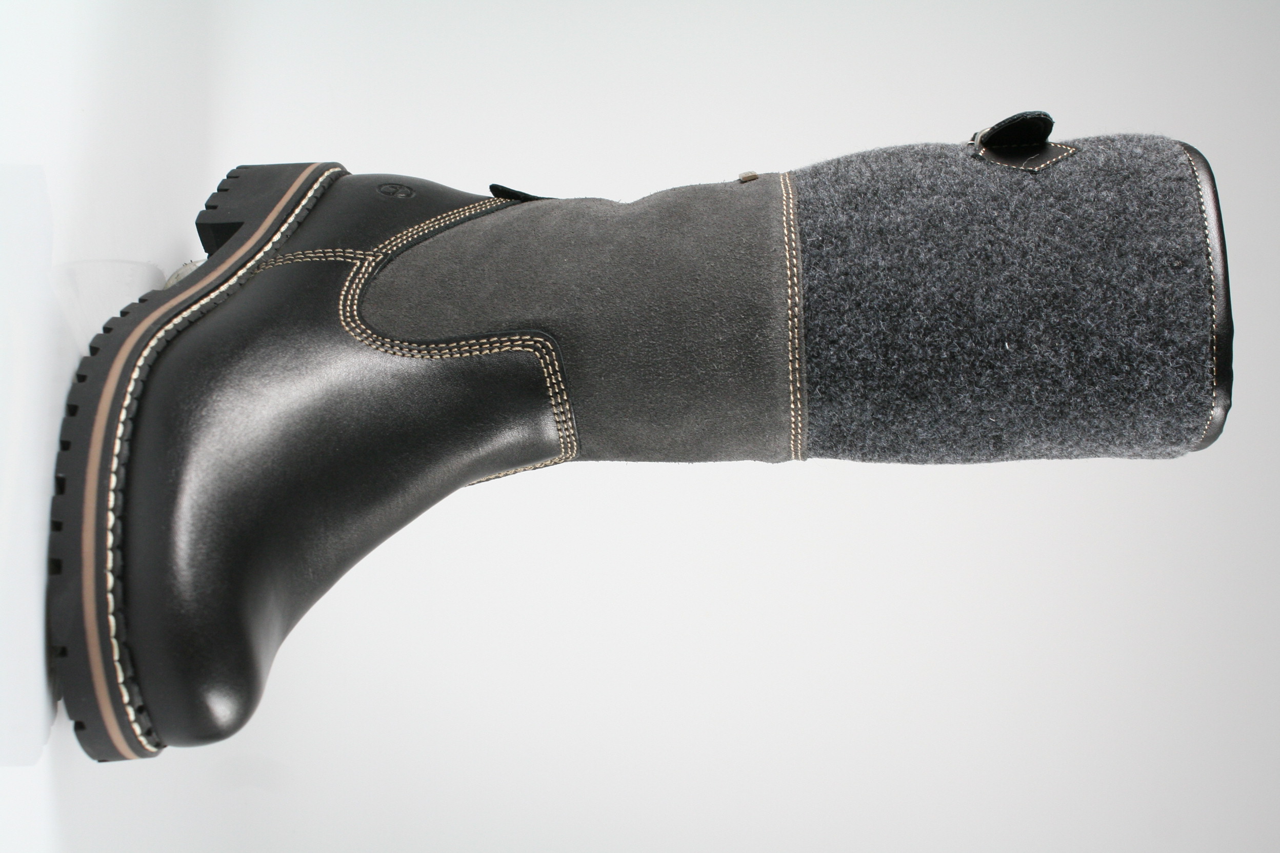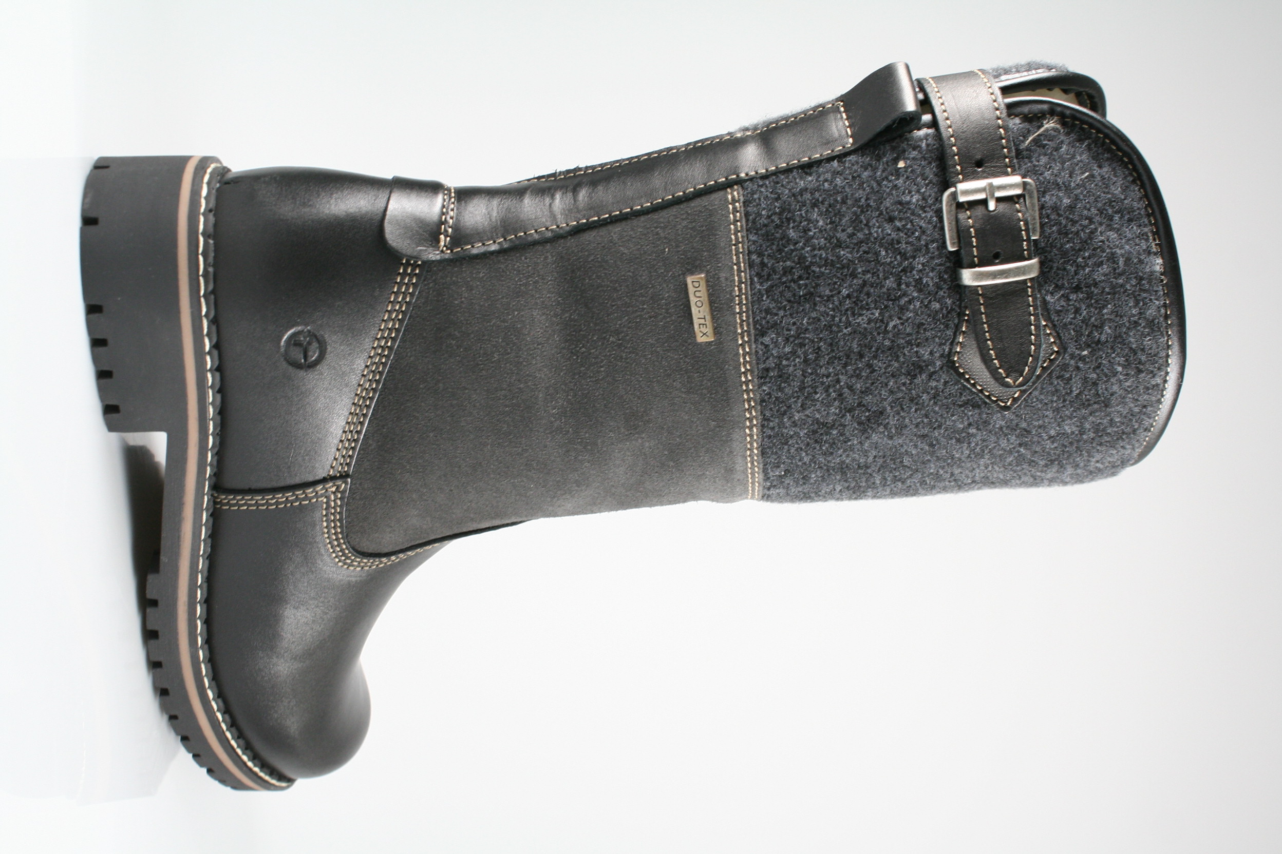 Typ: Stiefel; Farbe "black comb"; Ausstattung:; - Obermaterial: Leder, Filz; - Warmfutter; - weiches Fußbett; - flexible Laufsohle; - gepolsterter Schaftrand; - Reißverschluss an der Innenseite; - wasserfest durch "Duo-Tex"-Membrane