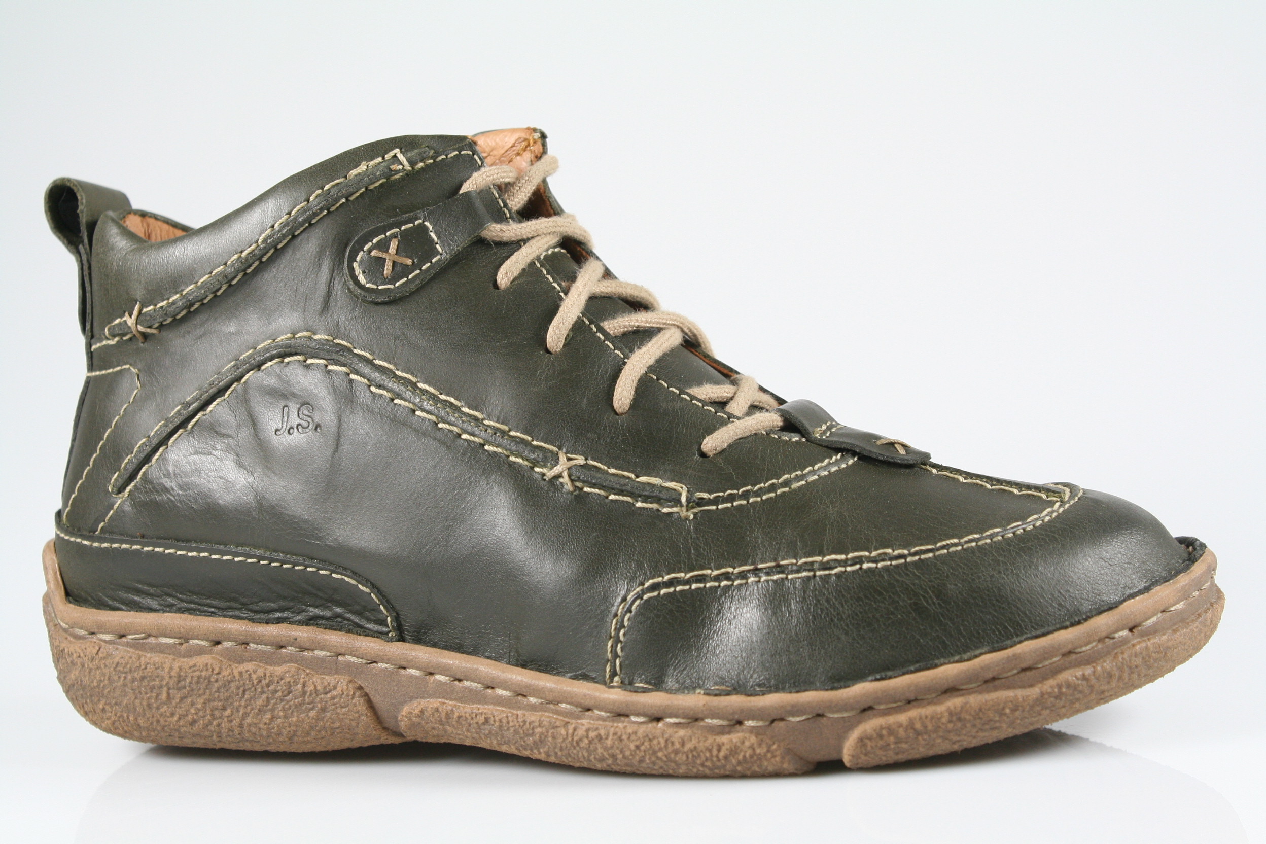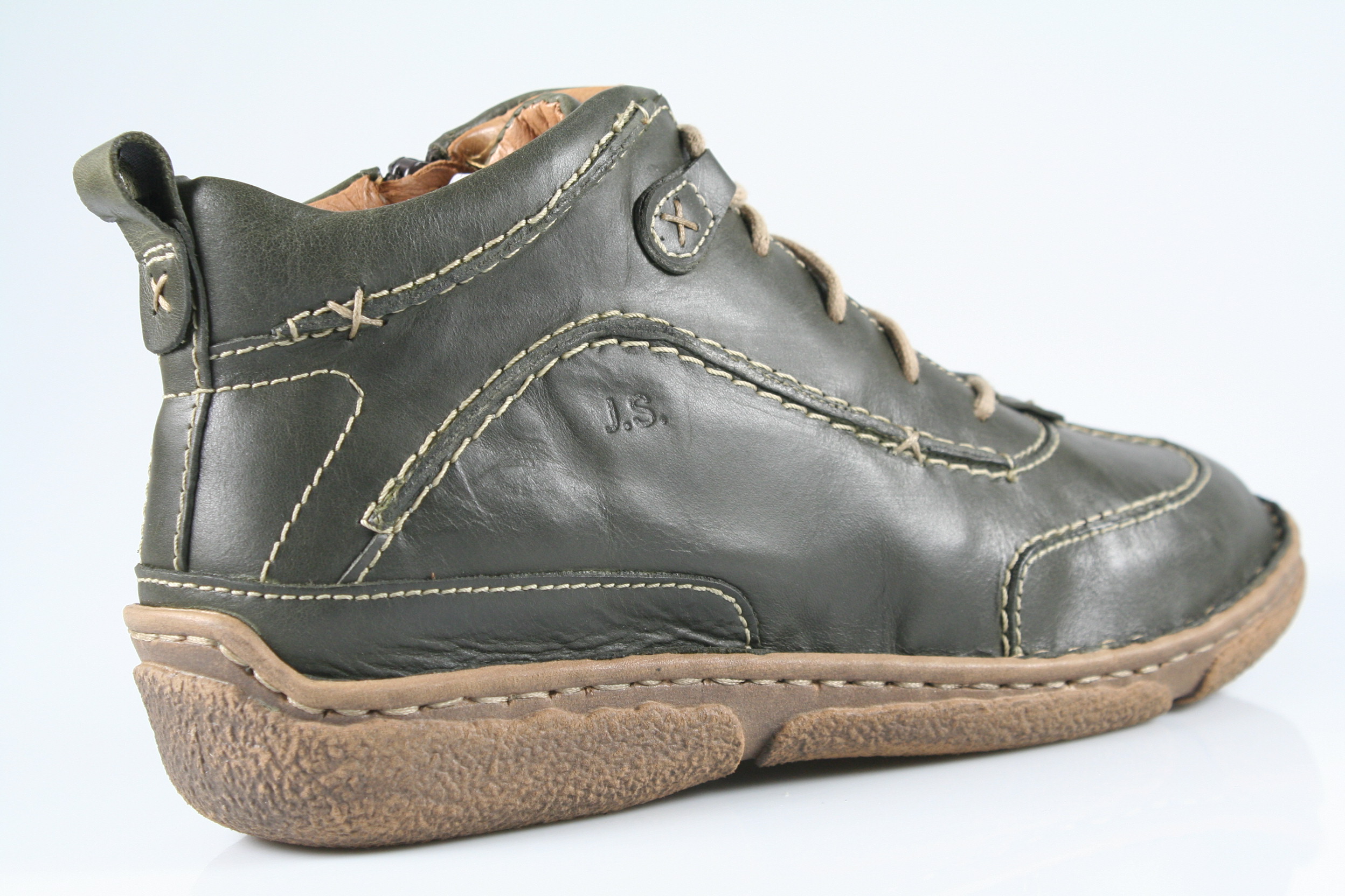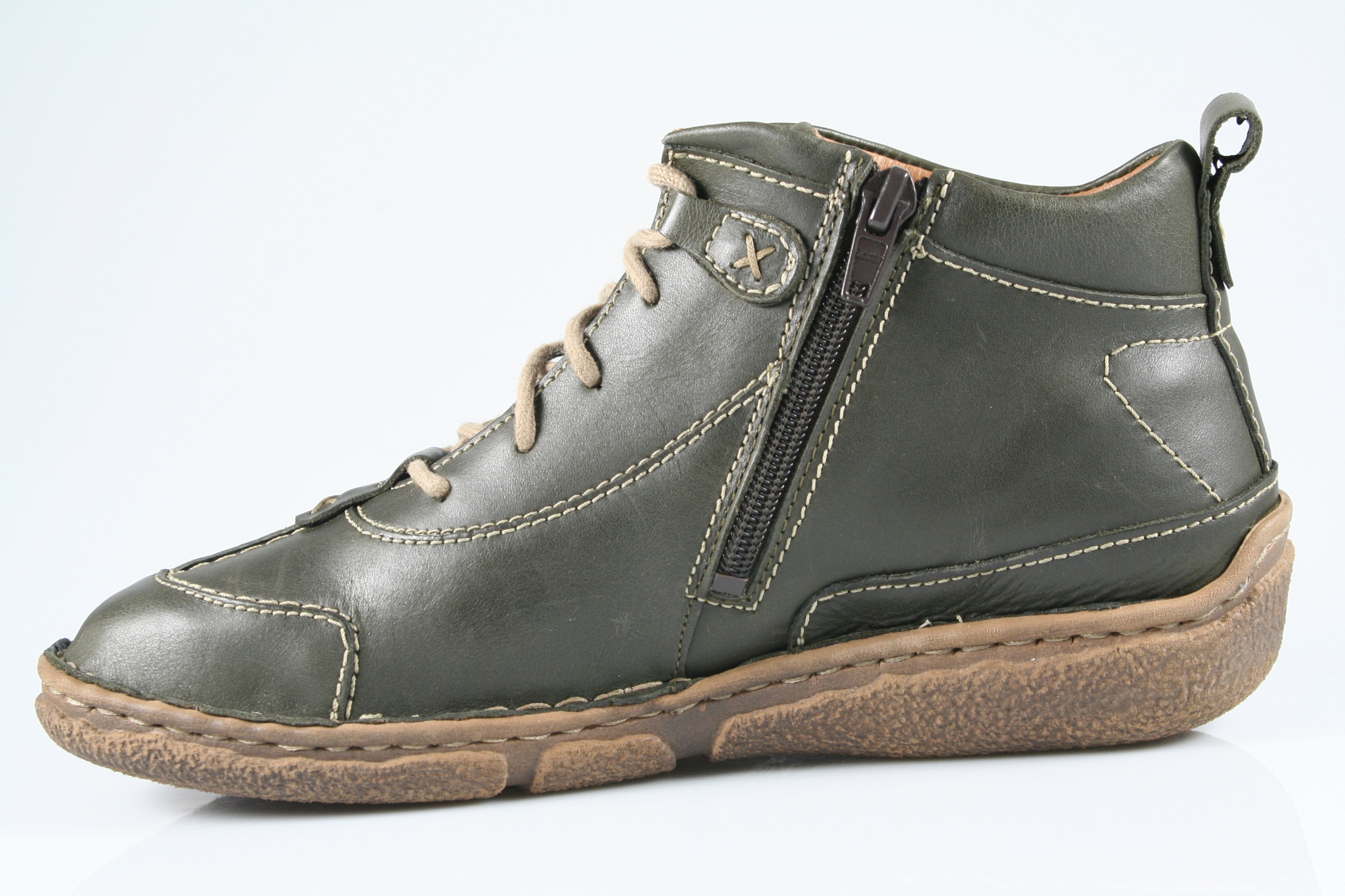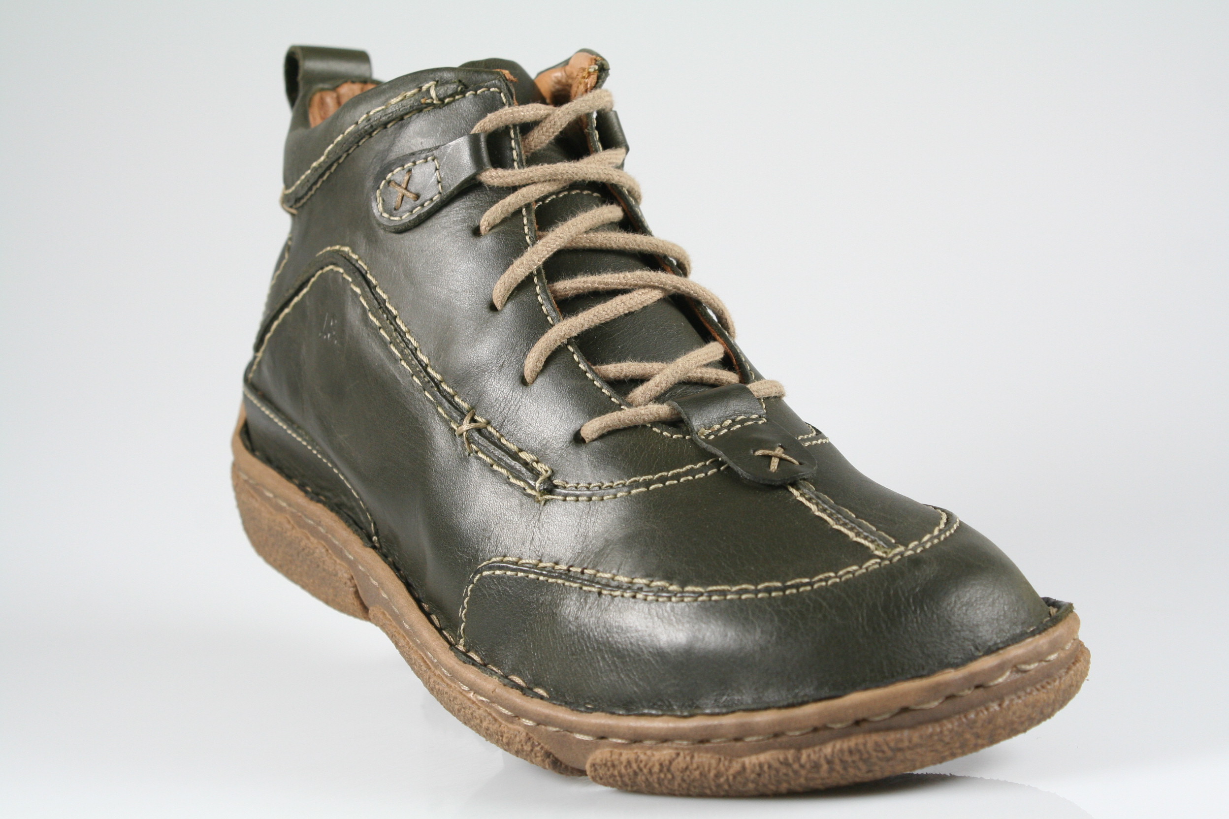 Typ: Boots; Farbe "moos"; Ausstattung:; - Obermaterial: Glattleder; - Lederfutter; - herausnehmbares Fußbett; - flexible Laufsohle; - gepolsterter Schaftrand; - Schnürsenkel und Reißverschluss