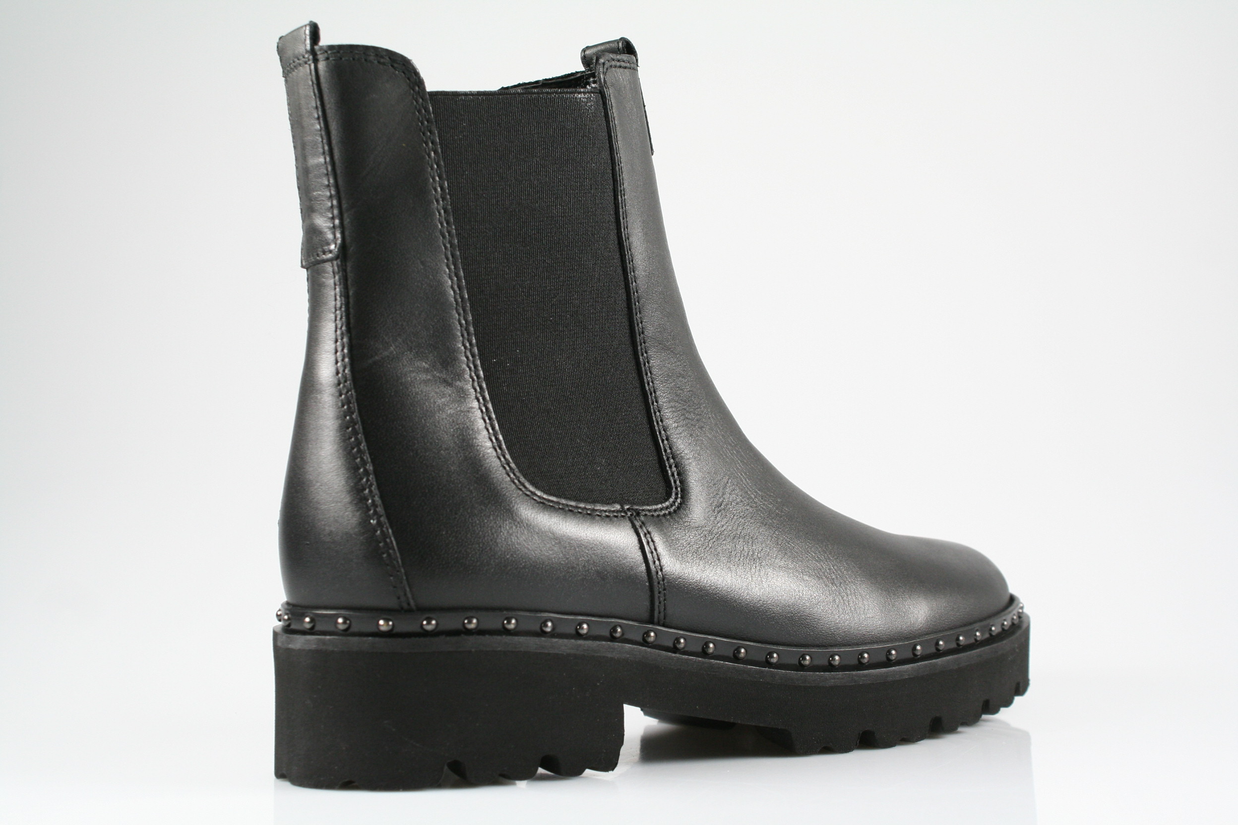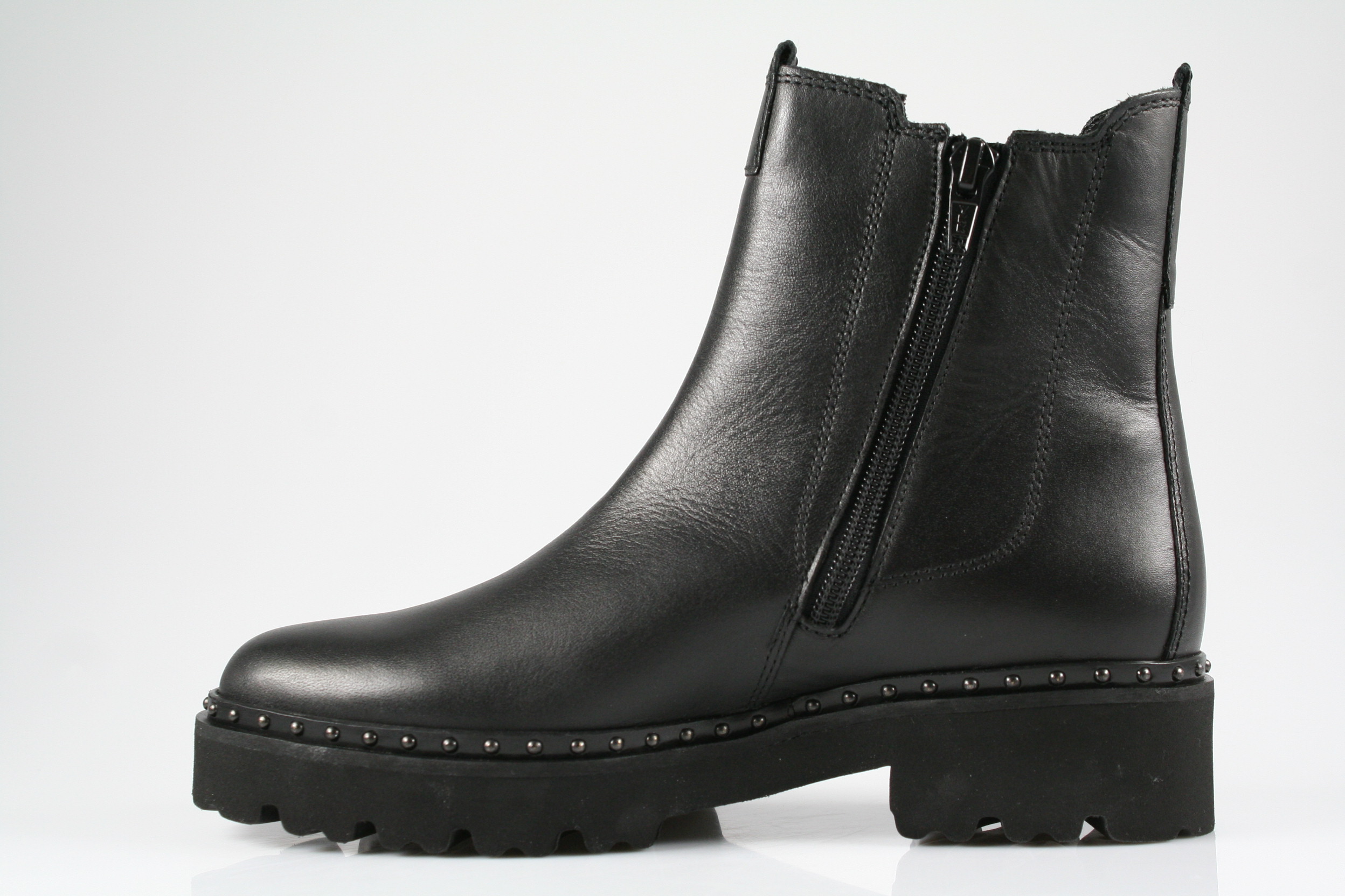 Typ: Stiefelette; Farbe "schwarz"; Ausstattung:; - Obermaterial: Glattleder; - herausnehmbares Fußbett; - leichte Laufsohle; - gepolsterter Schaftrand; - Reißverschluss an der Innenseite;
