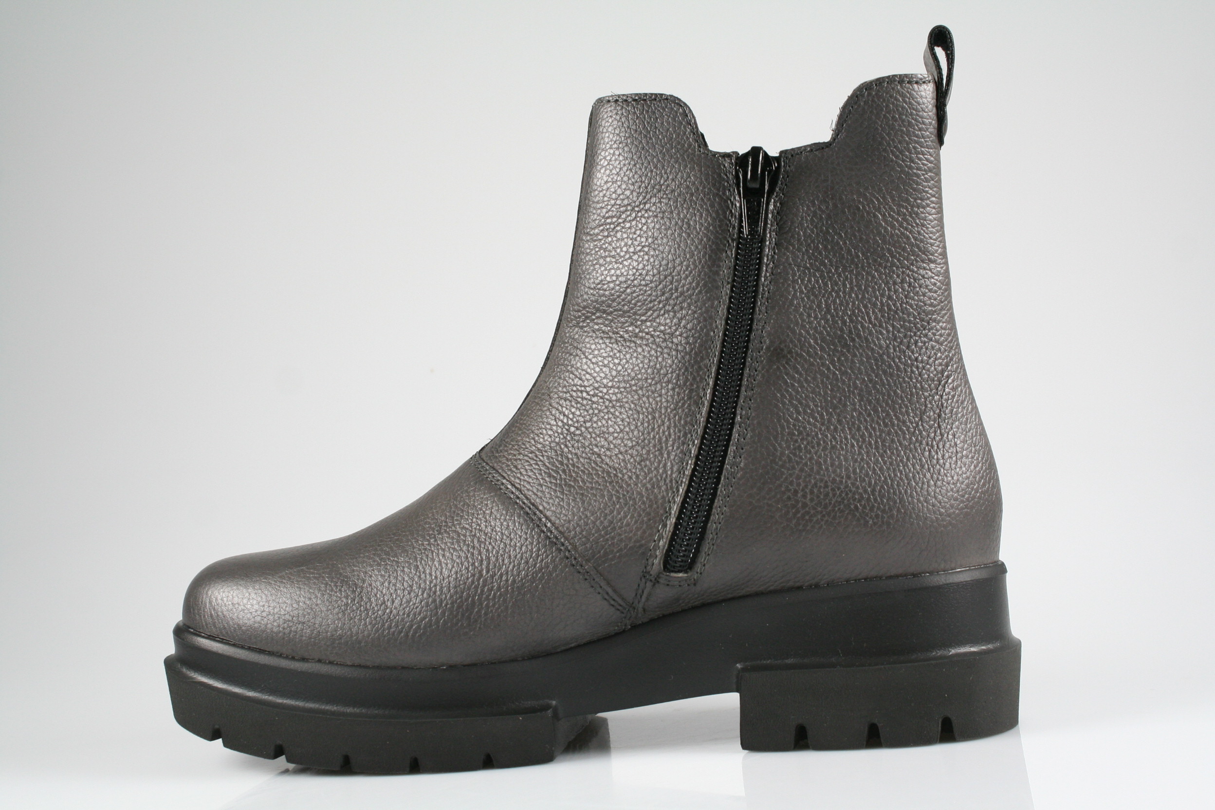Typ: Boots; Farbe "grau"; Ausstattung:; - Obermaterial: Nappaleder; - Warmfutter; - herausnehmbares Fußbett; - leichte Laufsohle; - gepolsterter Schaftrand; - Reißverschluss zur Weitenregulierung