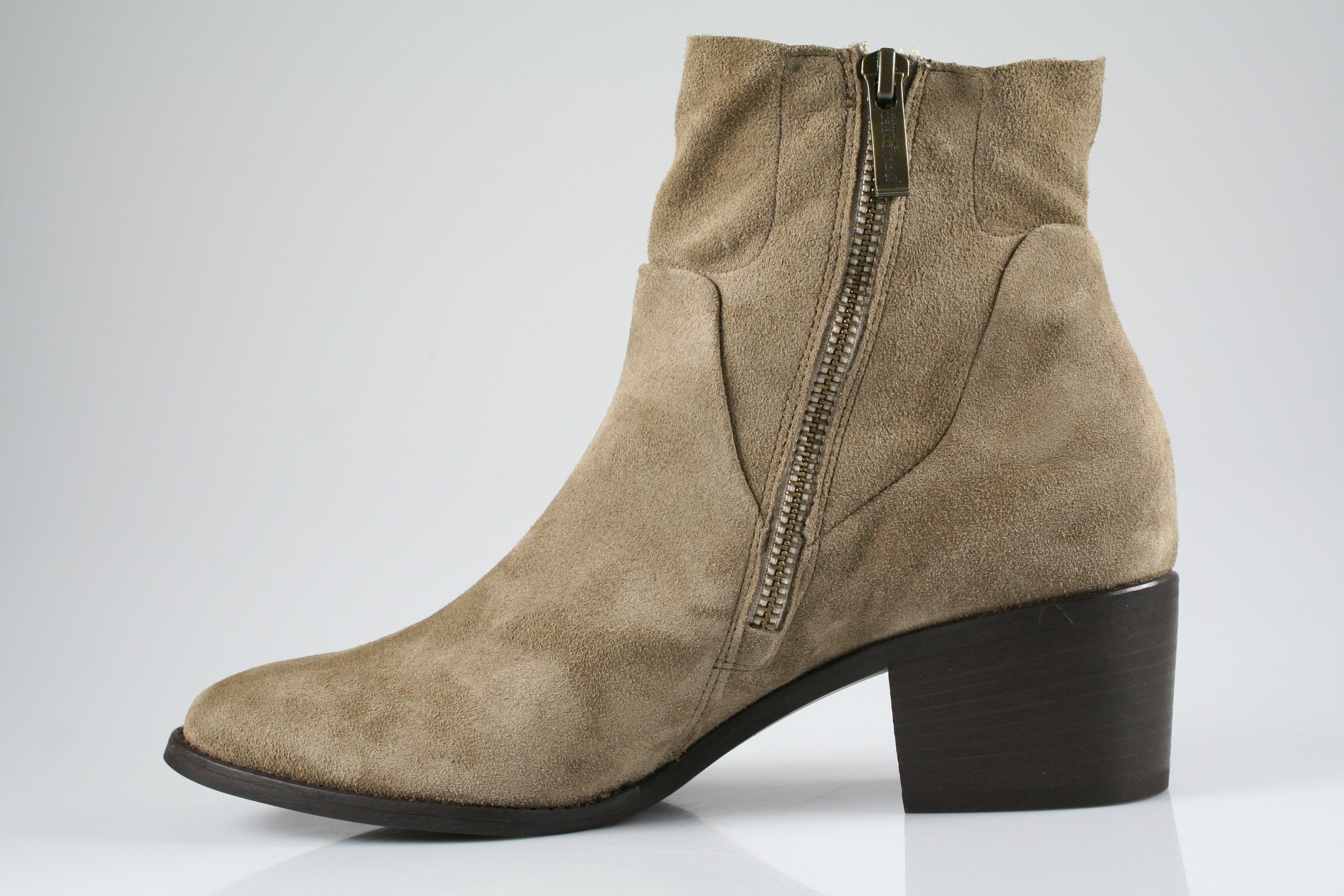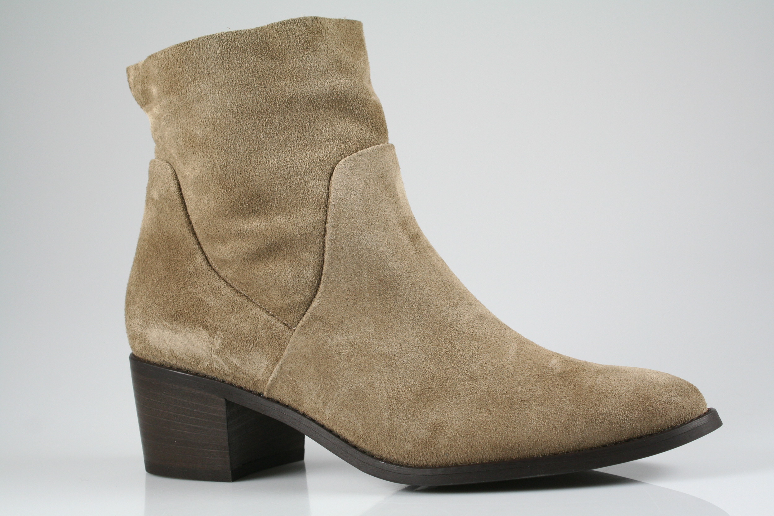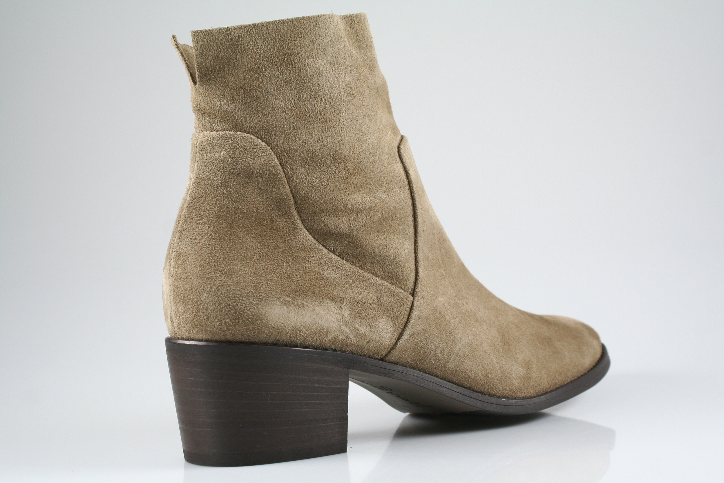 Typ: Stiefelette; Farbe "antelope"; Ausstattung:; - Obermaterial: Velourleder; - weiches Fußbett; - leichte Laufsohle; - 45mm Blockabsatz; - gepolsterter Schaftrand; - Reißverschluss an der Innenseite