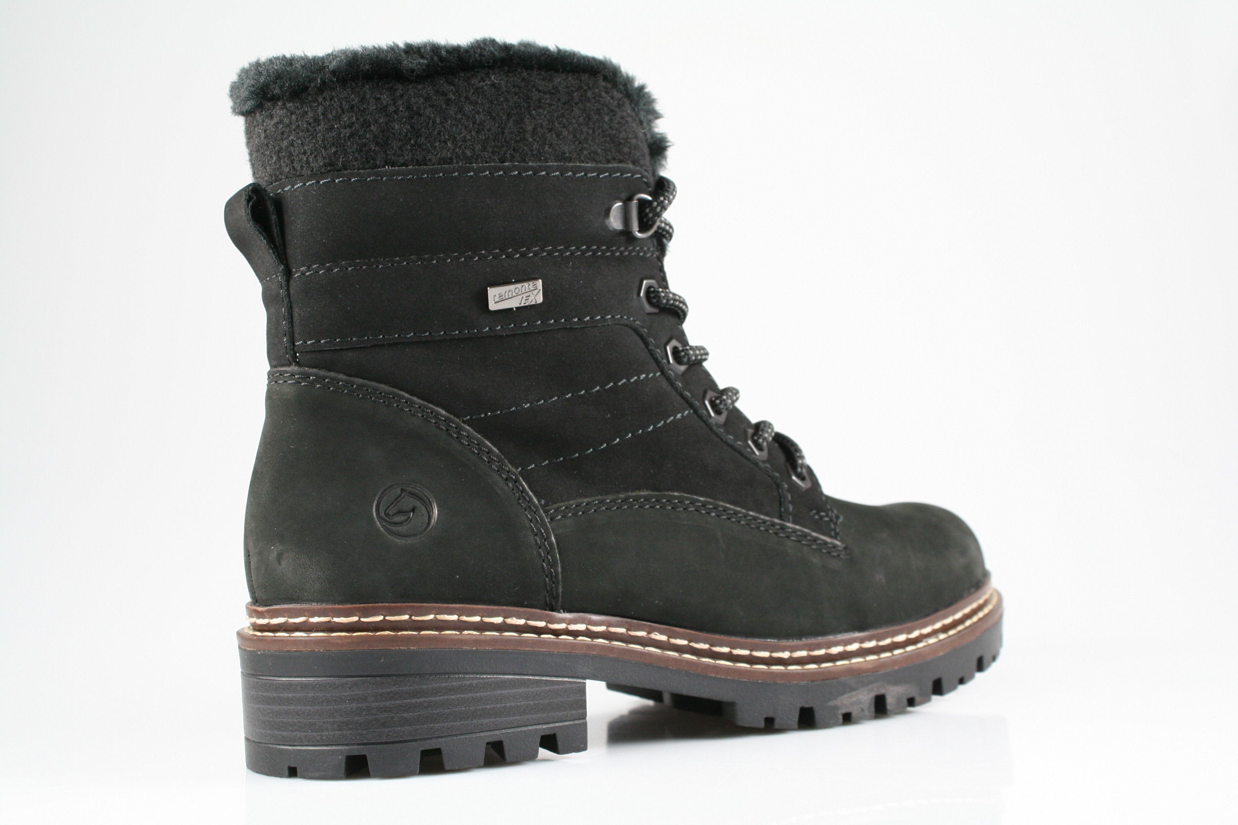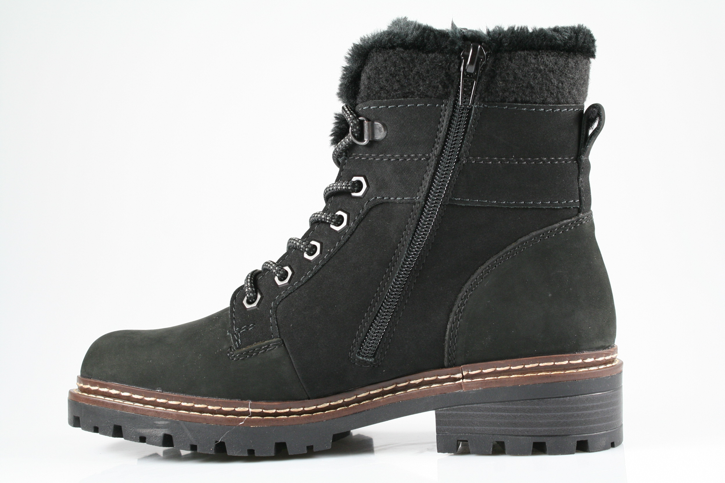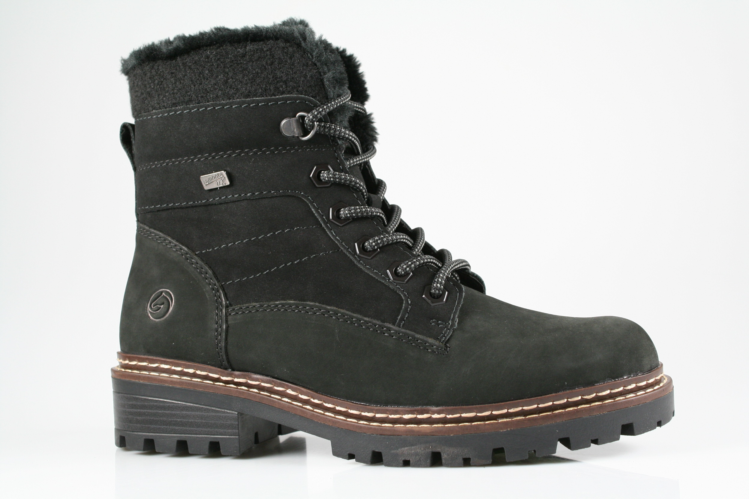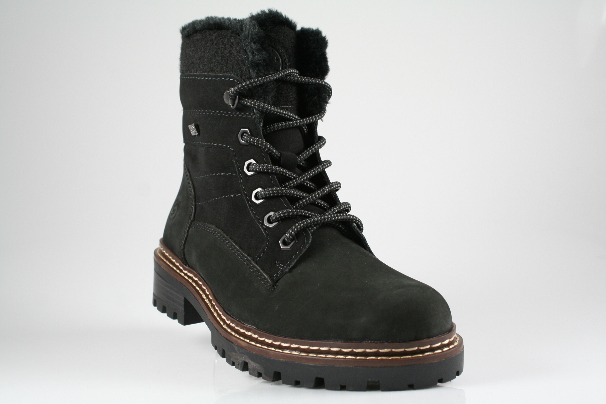Typ: Boots; Farbe "schwarz"; Ausstattung:; - Obermaterial: Nubukleder; - Warmfutter; - weiches Fußbett; - flexible Laufsohle; - gepolsterter Schaftrand; - Schnürsenkel und Reißverschluss zur Weitenregulierung; - "RemonteTex"-Membrane