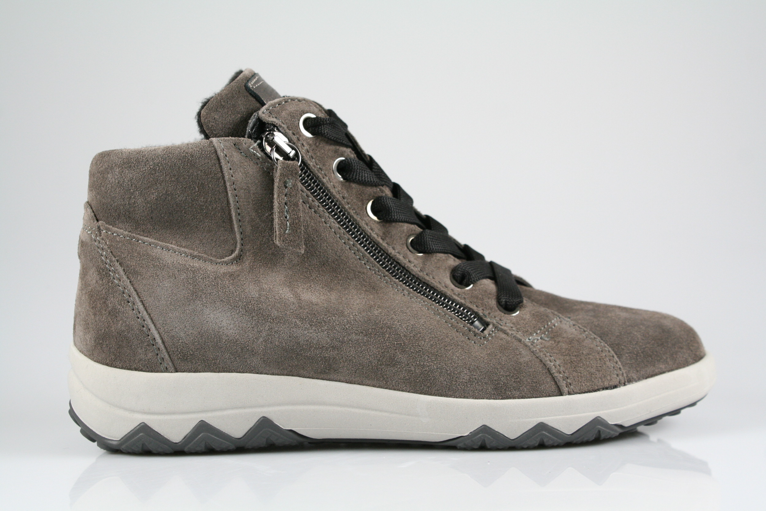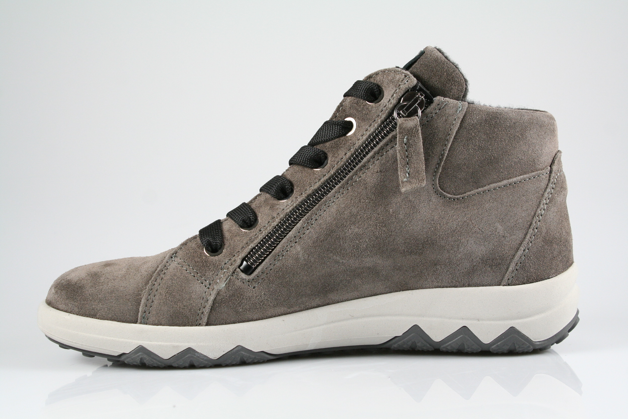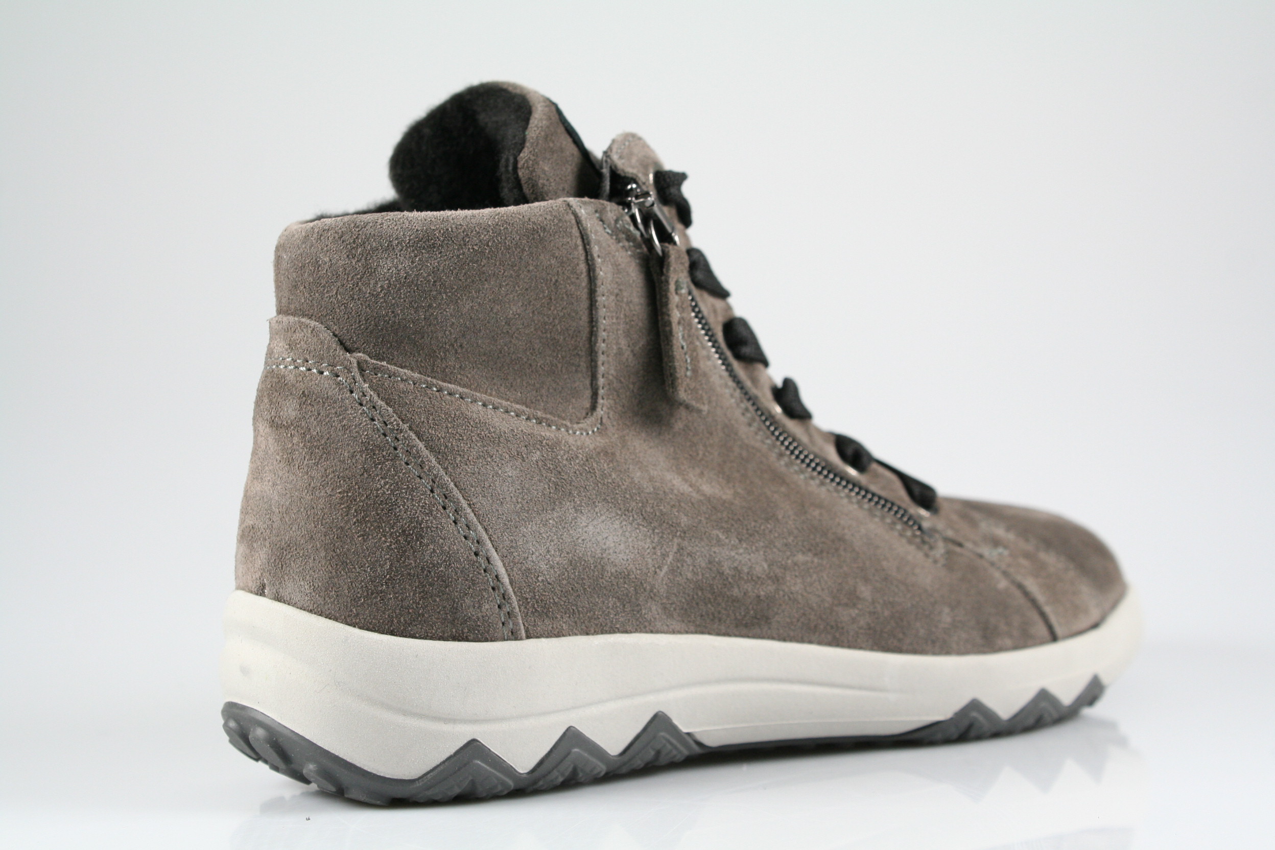 Typ: Boots; Farbe "mouse schiefer"; Ausstattung:; - Obermaterial: Velourleder; - angerautes Futter; - herausnehmbares Fußbett; - flexible Laufsohle; - gepolsterter Schaftrand; - Schnürsenkel und Reißverschluss zur Weitenregulierung;