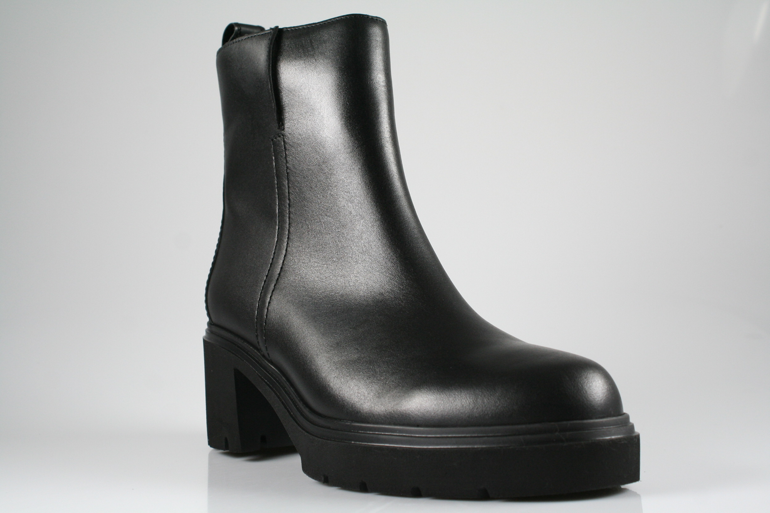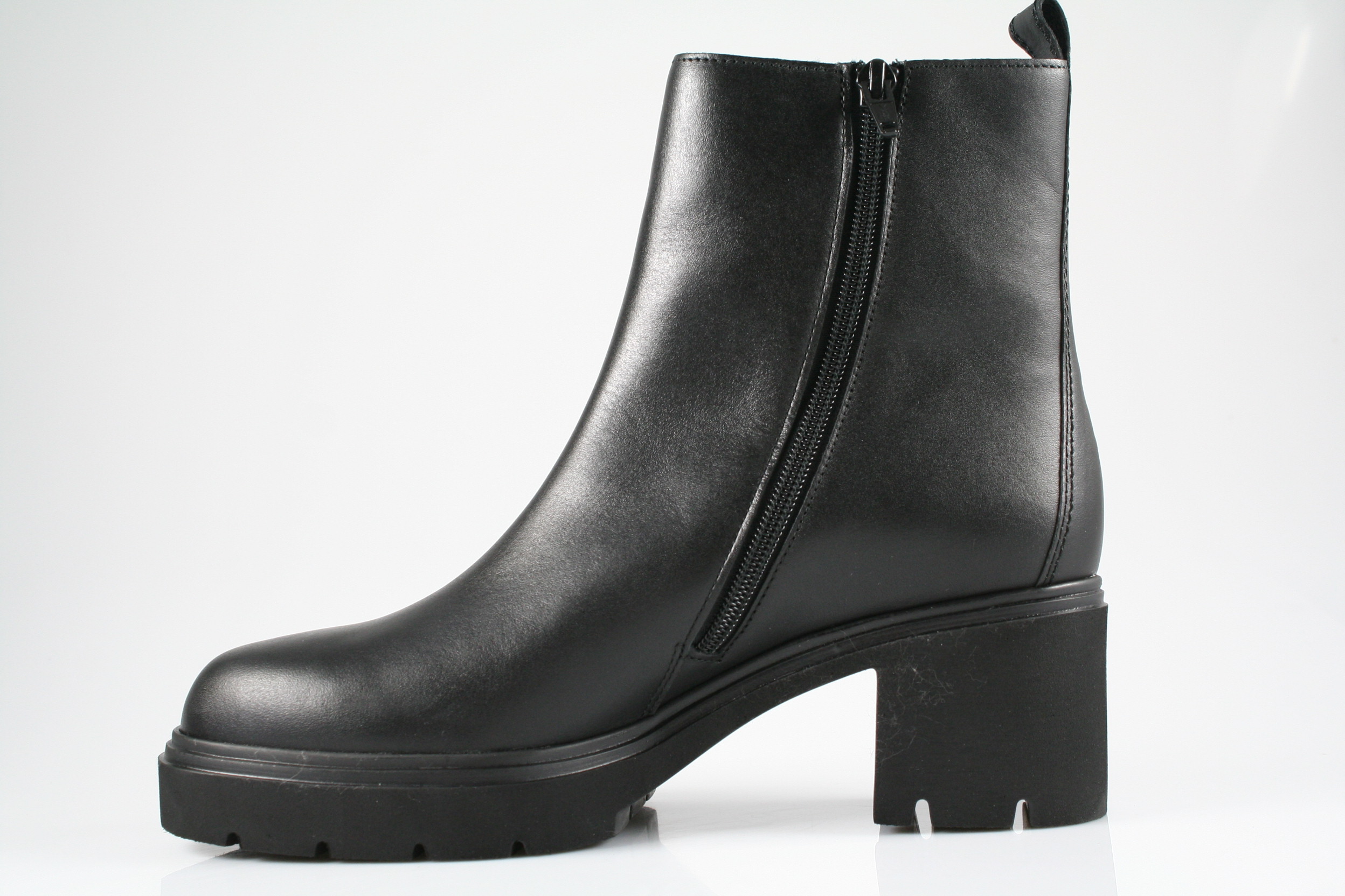 Typ: Stiefelette; Farbe "schwarz"; Ausstattung:; - Obermaterial: Glattleder; - angerautes Futter; - herausnehmbares Fußbett; - leichte Laufsohle; - 45mm Blockabsatz; - gepolsterter Schaftrand; - Reißverschluss an der Innenseite