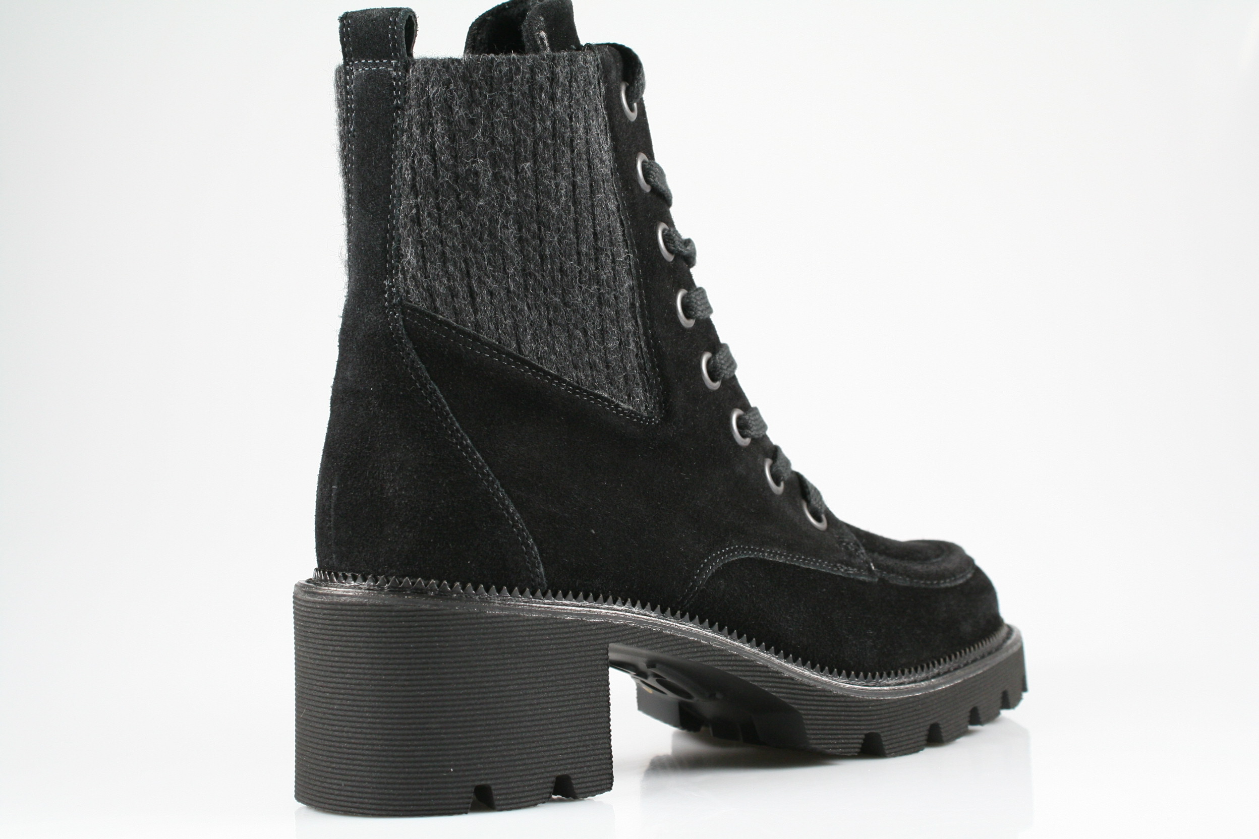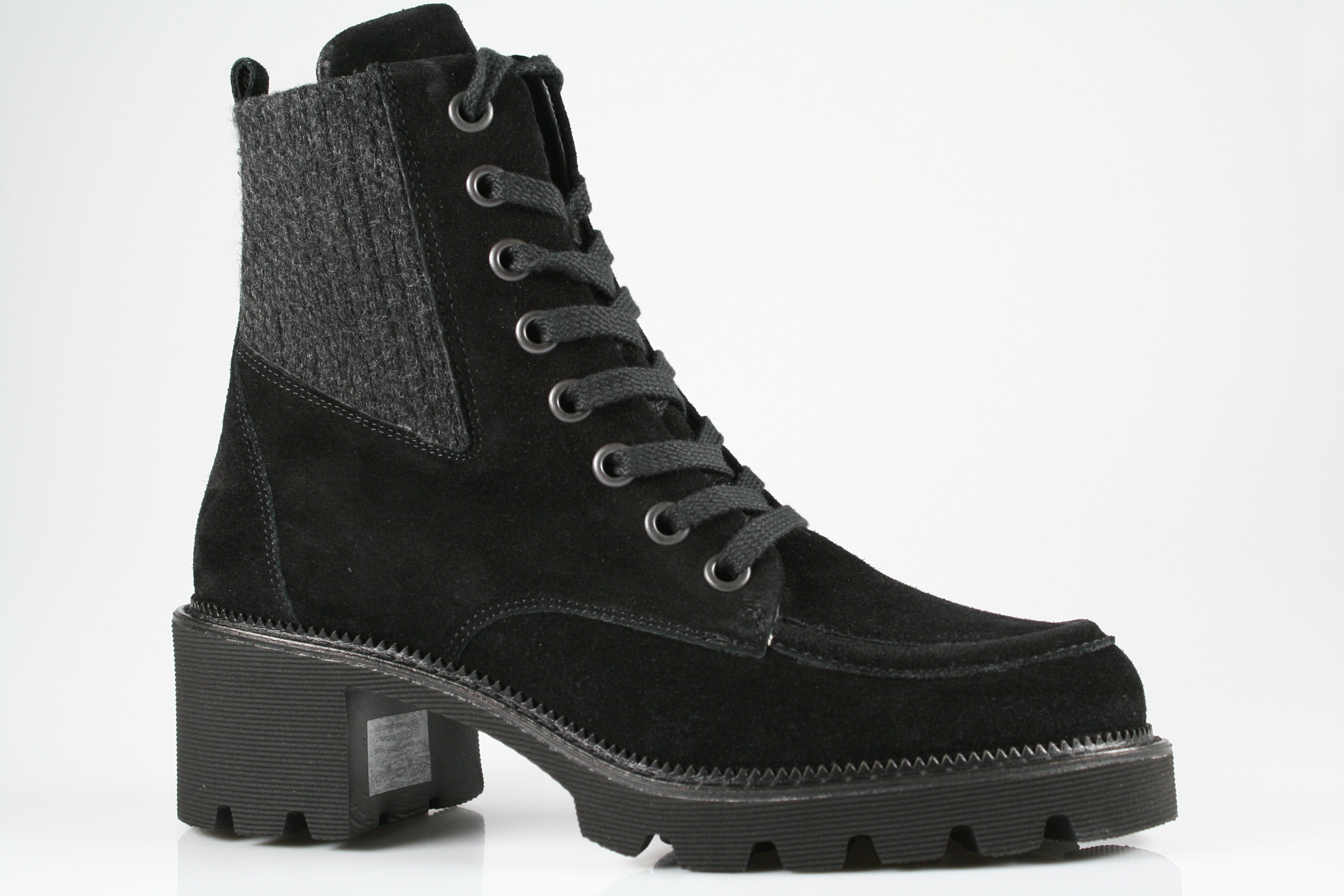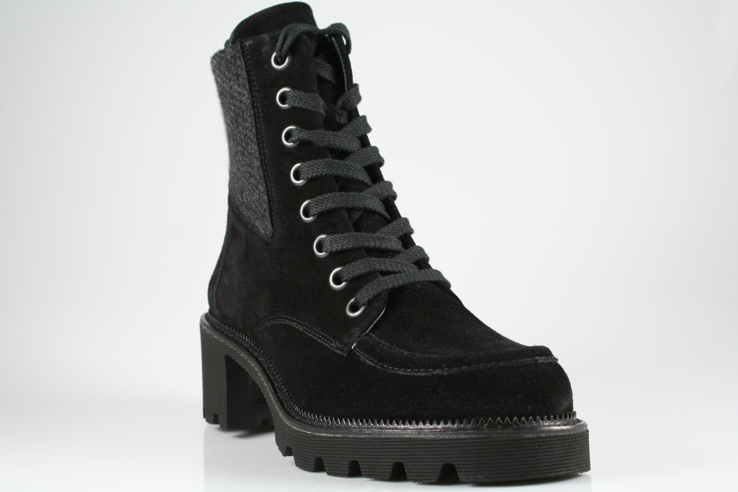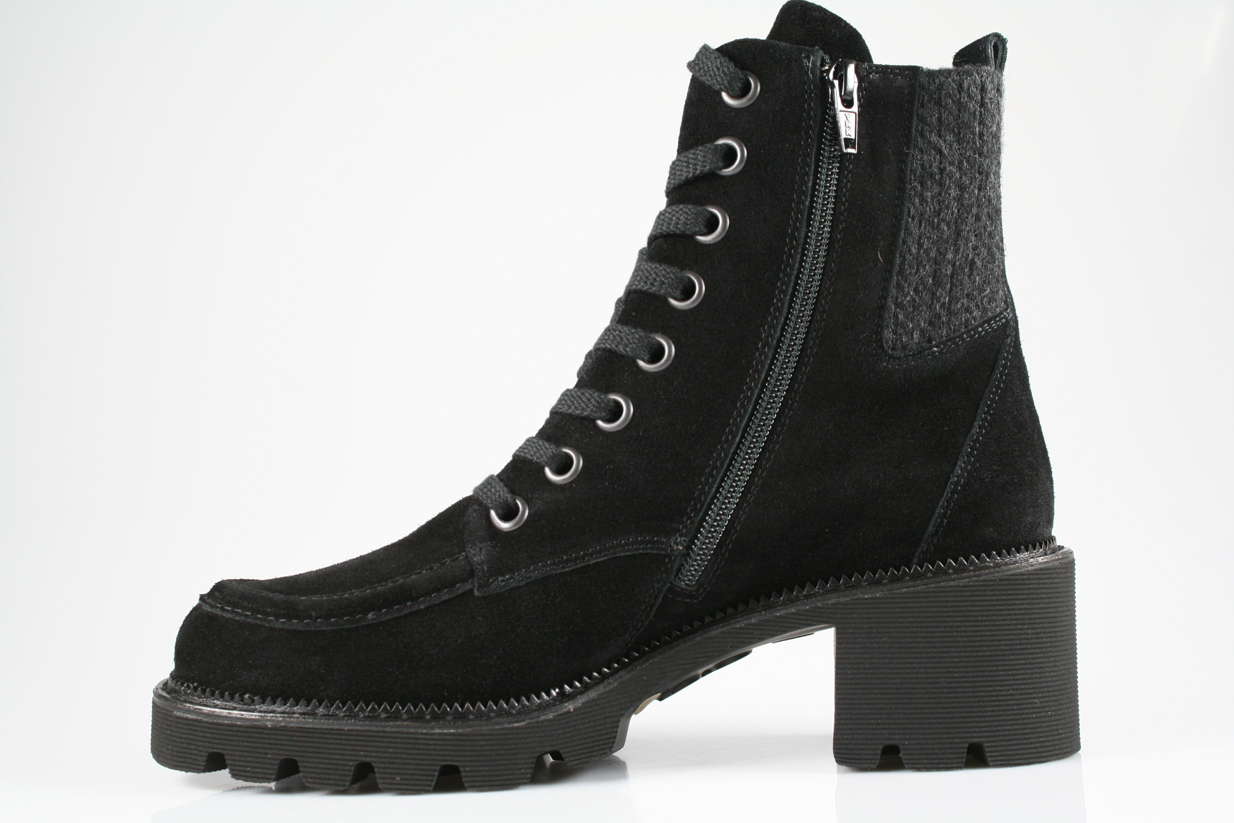 Typ: Boots; Farbe: "black"; Ausstattung:; - Obermaterial: Softvelour, kombiniert; - Futter: Merinowolle; - leichte Absatzsohle mit Profil; - Schnürung und Reißverschluss