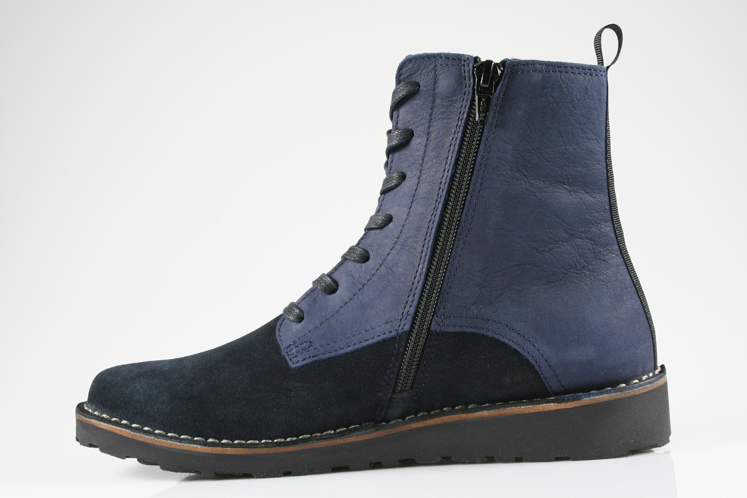 Typ: Boots; Farbe "blue"; Ausstattung:; - Obermaterial: Nubukleder; - herausnehmbares Fußbett; - flexible Laufsohle; - gepolsterter Schaftrand; - Schnürsenkel und Reißverschluss;
