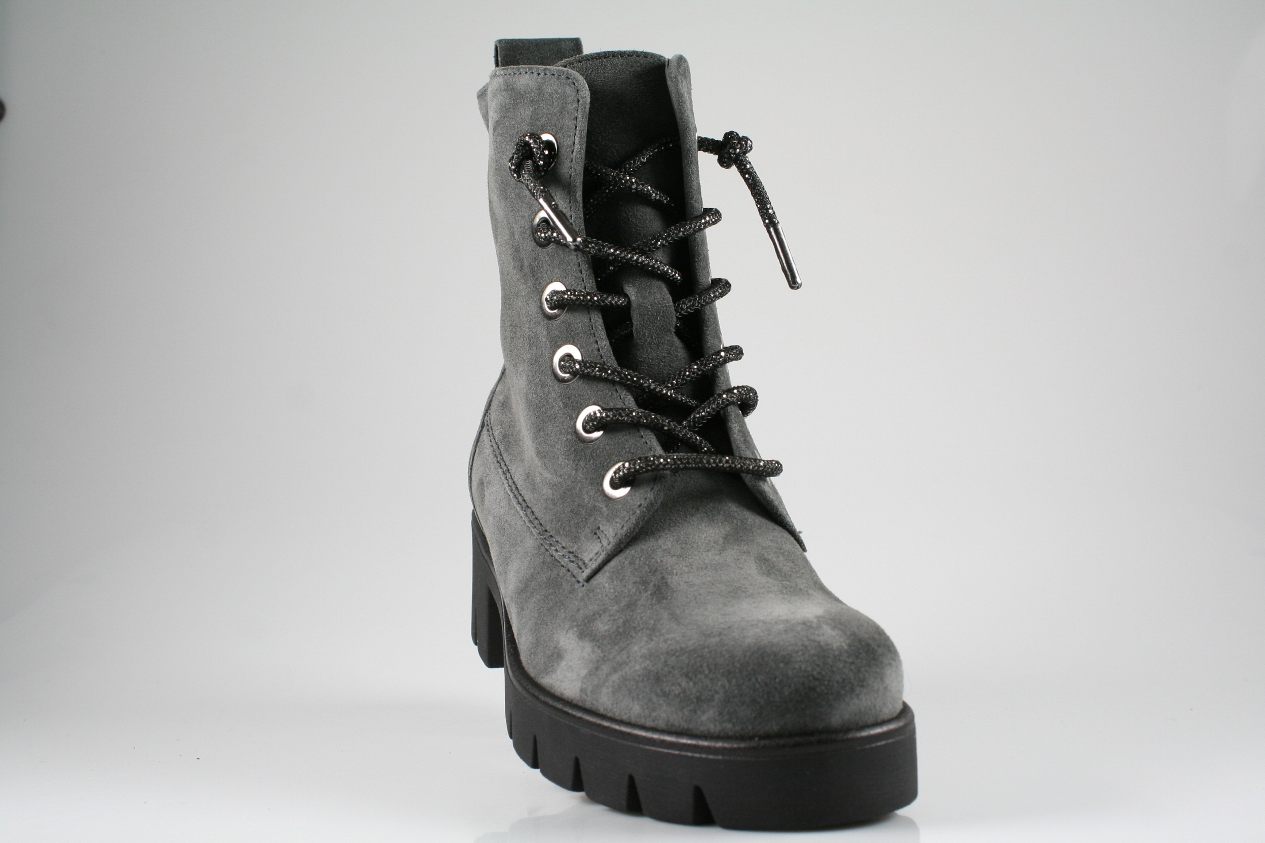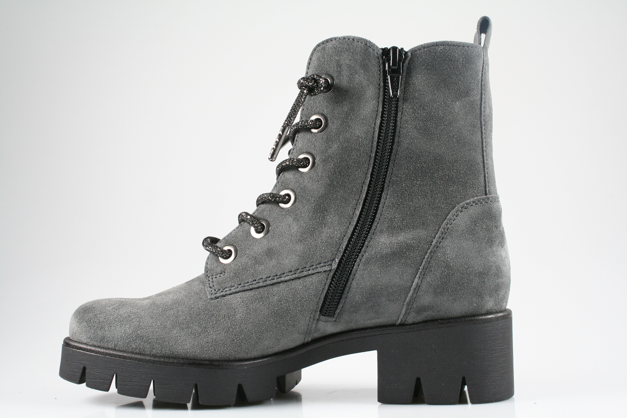Typ: Boots; Farbe "dark-grey"; Ausstattung:; - Obermaterial: Velourleder; - Warmfutter; - herausnehmbares Fußbett ; - flexible Laufsohle; - 30mm Absatz; - gepolsterter Schaftrand; - Gummizug und Reißverschluss zur Weitenregulierung;