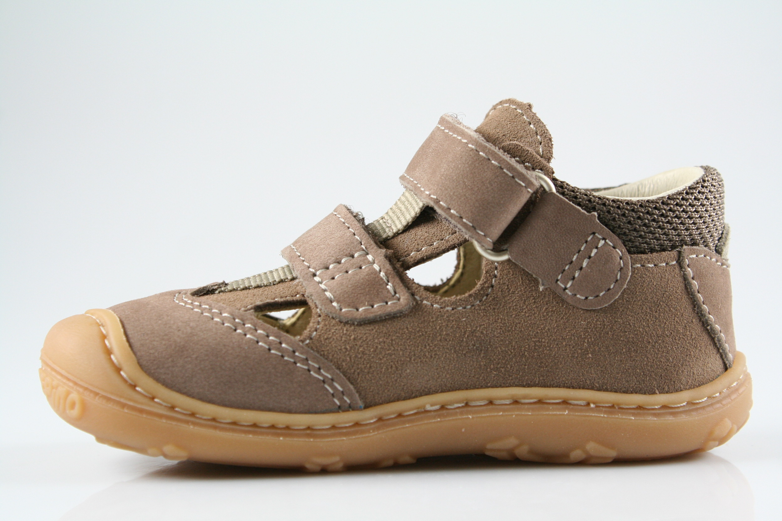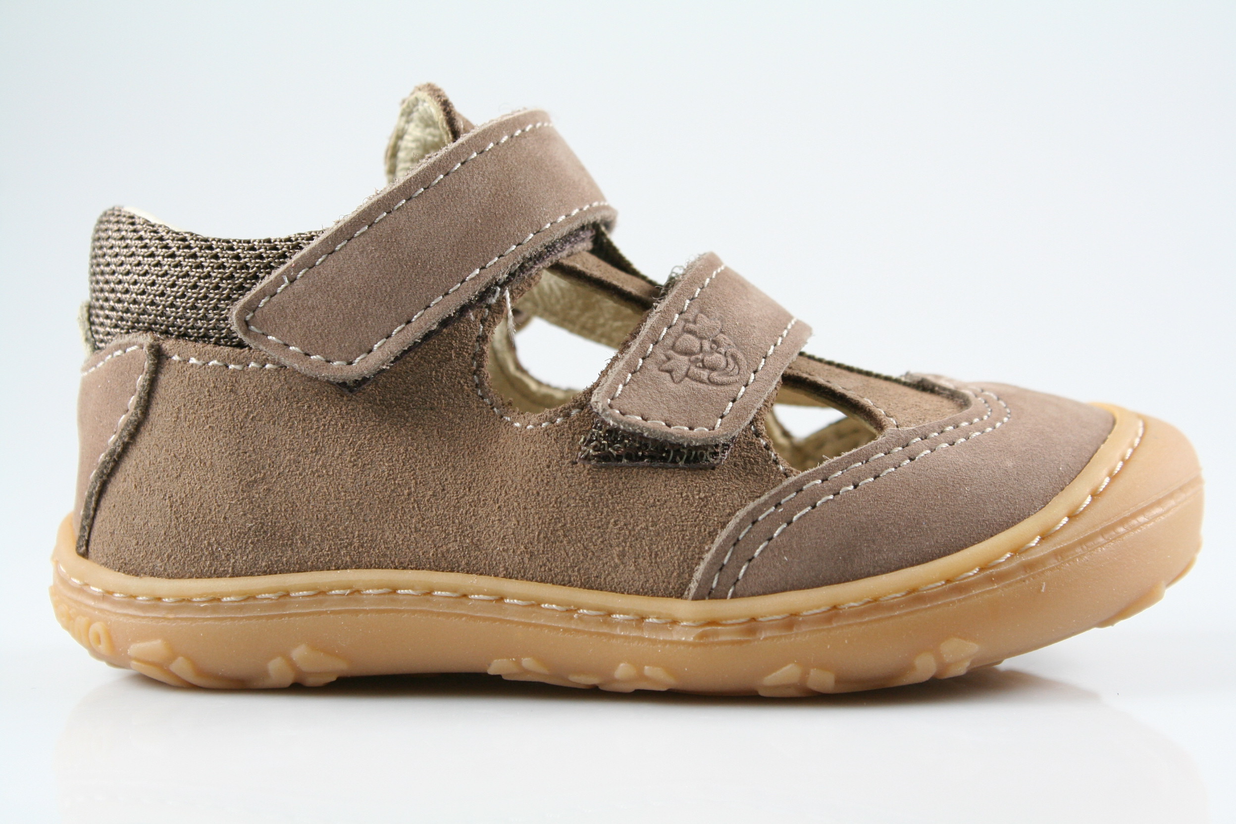 Typ: erste Schritte; Farbe: "schoko"; Ausstattung:; - Obermaterial Velour-/Nubukleder; - Lederfutter; - herausnehmbares Lederfußbett mit Grössenkontrolle; - gepolsterter Schaftrand; - flexible Gummisohle mit robuster Krabbelkappe; - Doppelklette; - Modell "EBI"; - Weite "M";