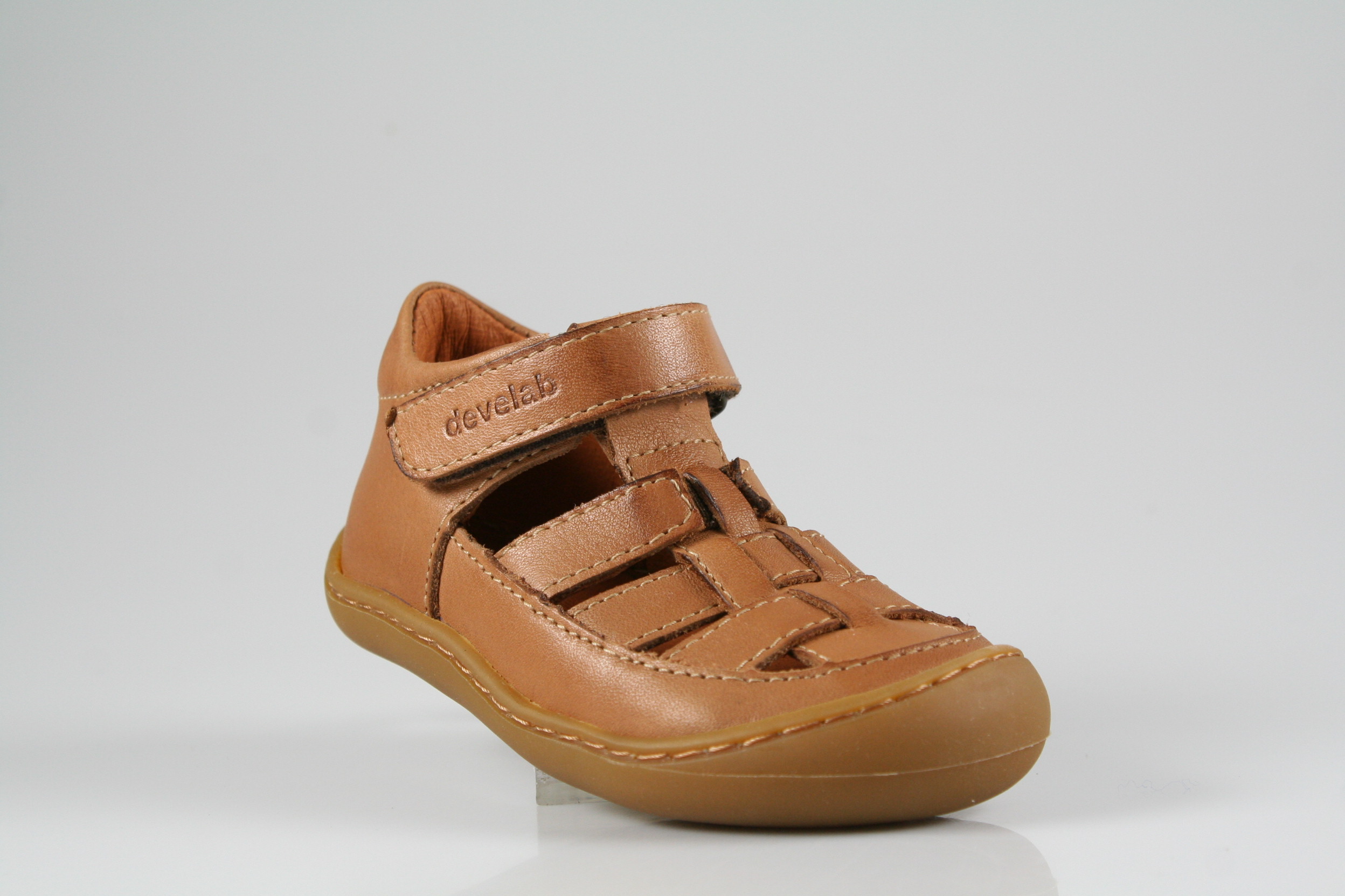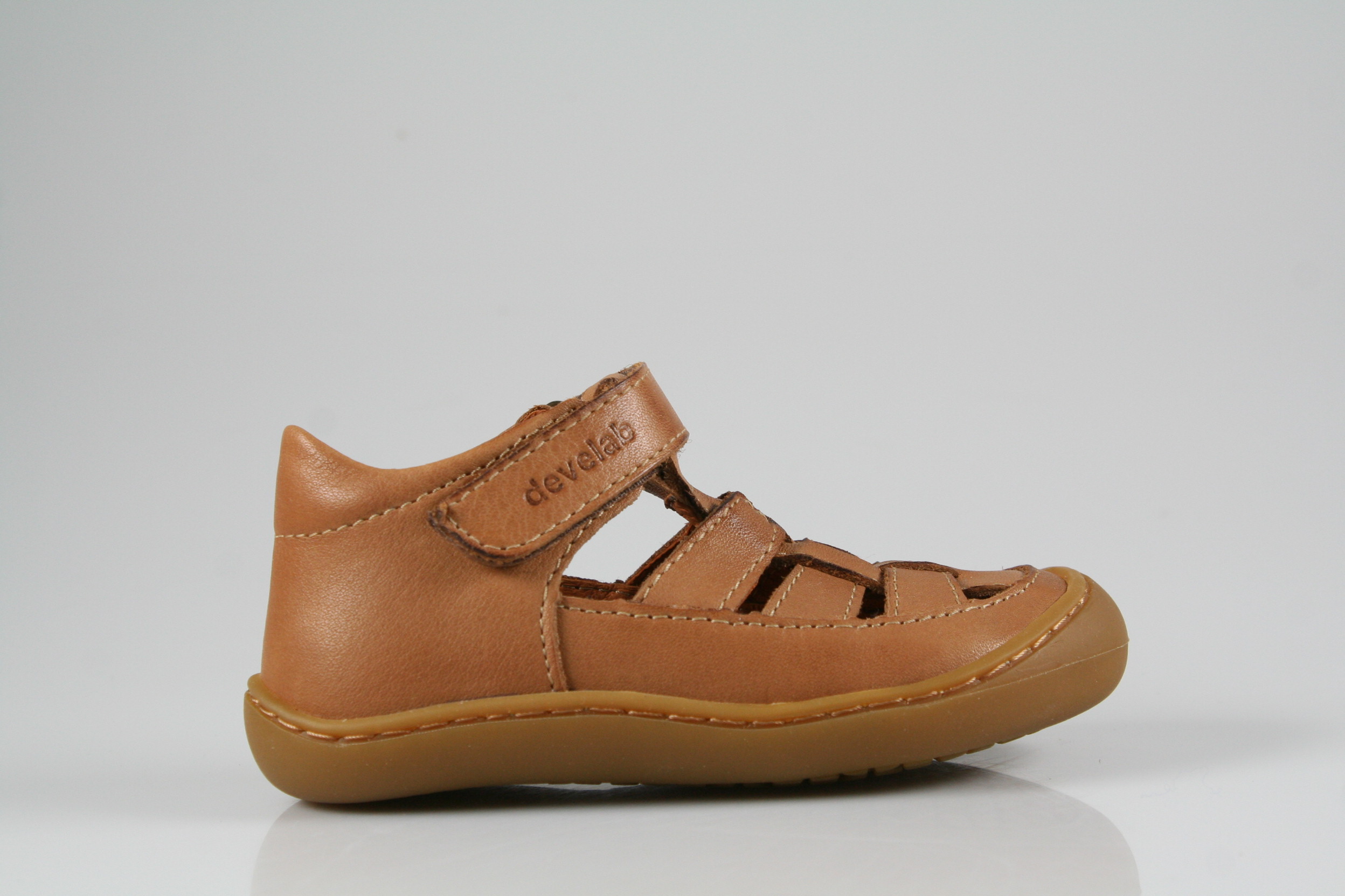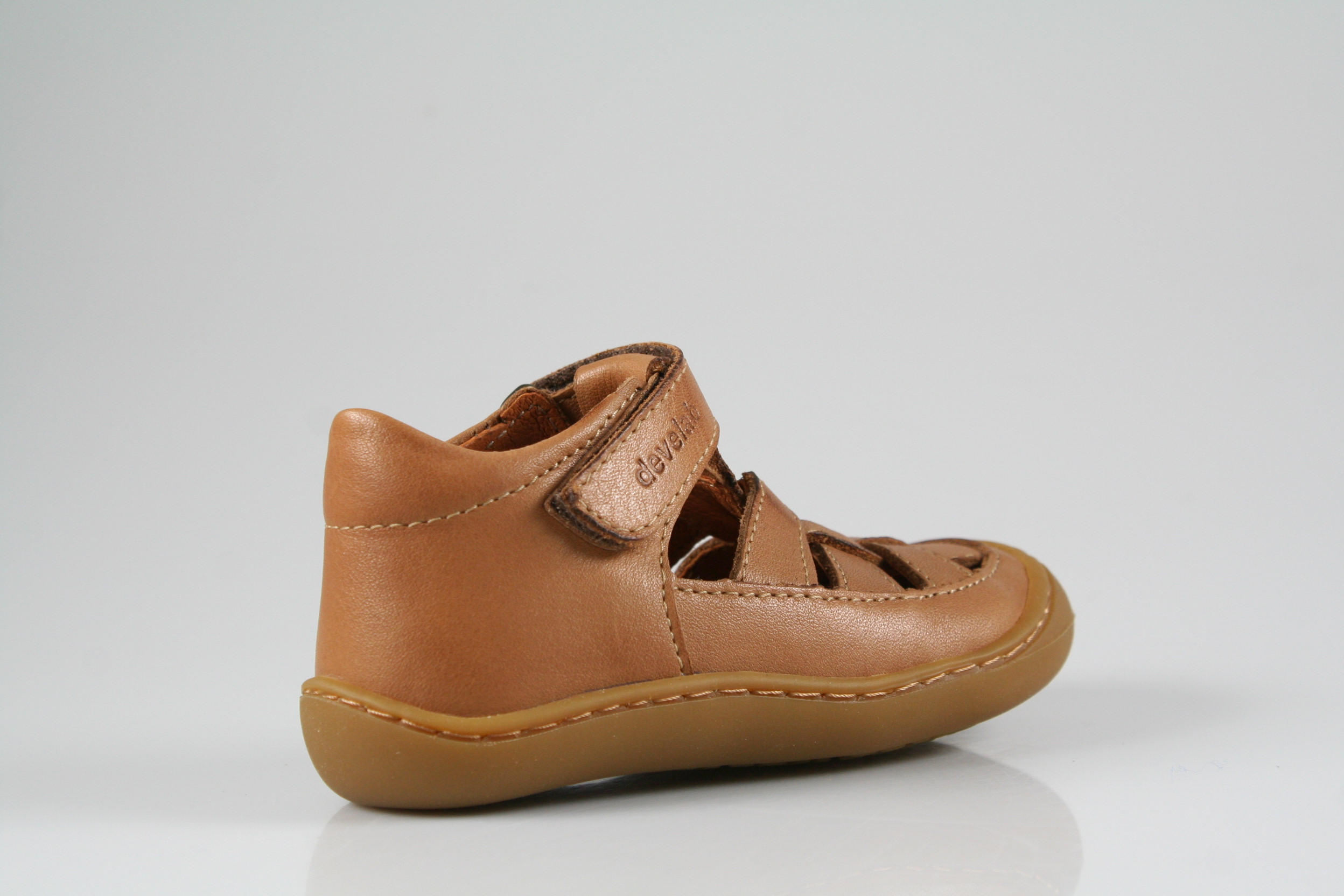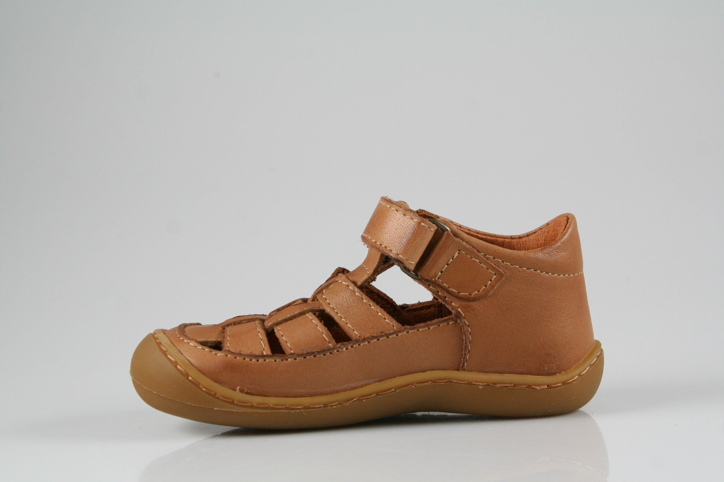 Typ: Lauflernsandale; Farbe: "cognac"; Ausstattung:; - Obermaterial: Nappaleder; - Lederfutter; - Lederdecksohle; - gepolsterter Schaftrand; - flexible Laufsohle mit Gummikappe; - Ríemchen mit Klettverschluss