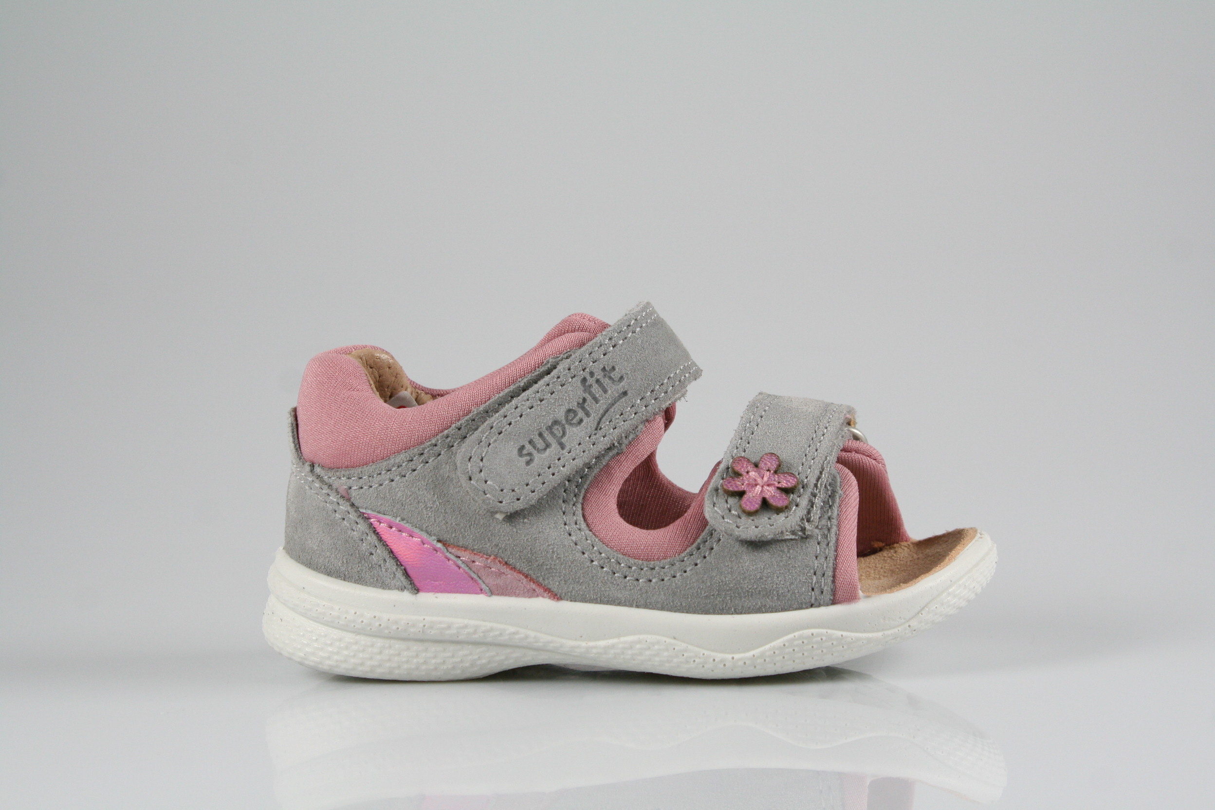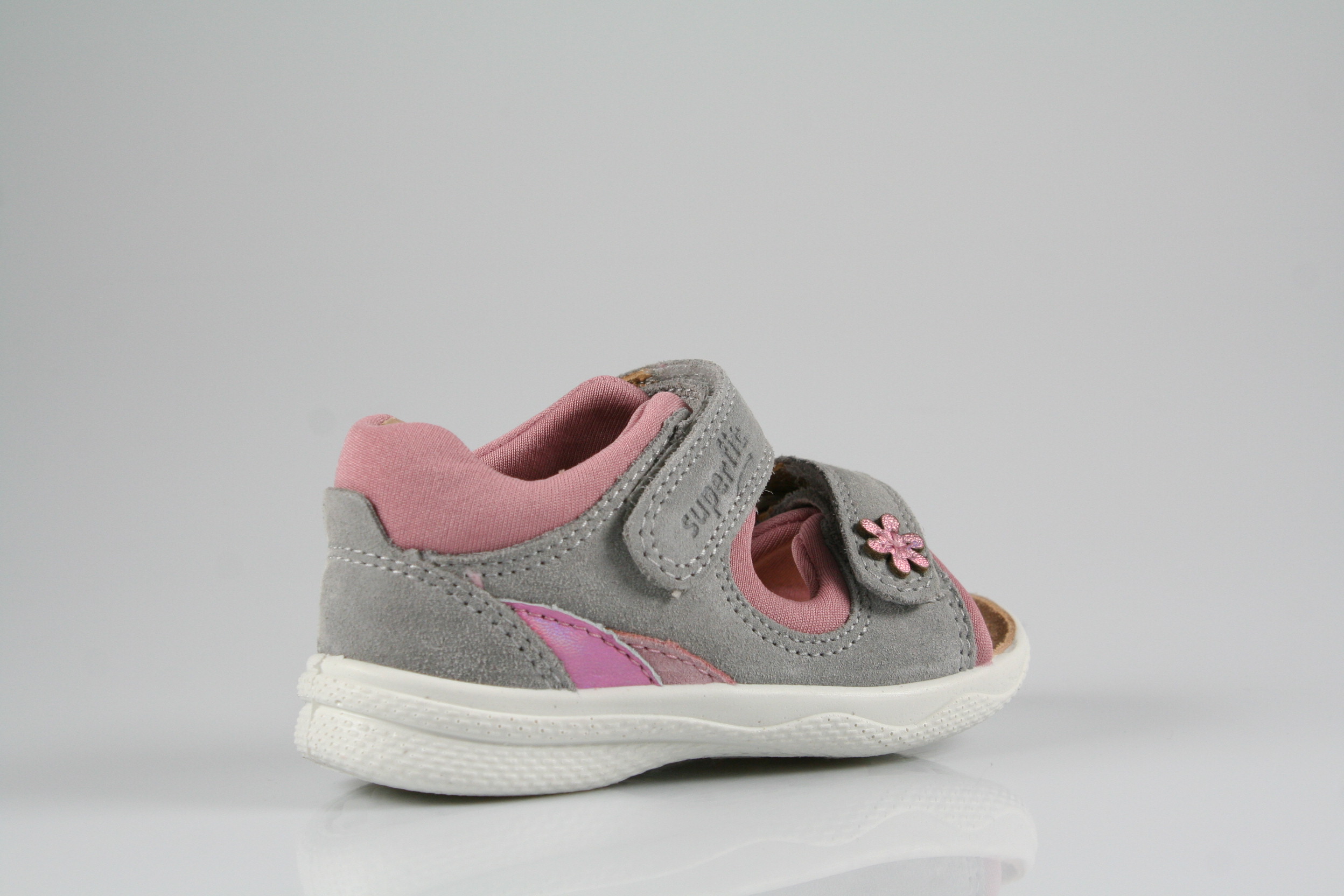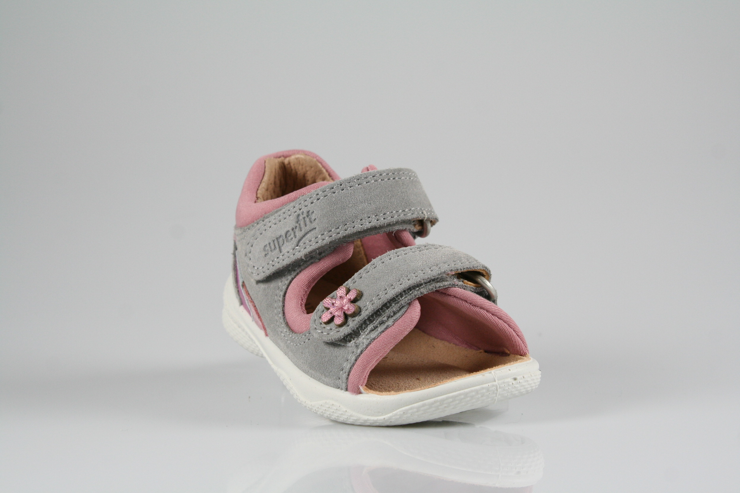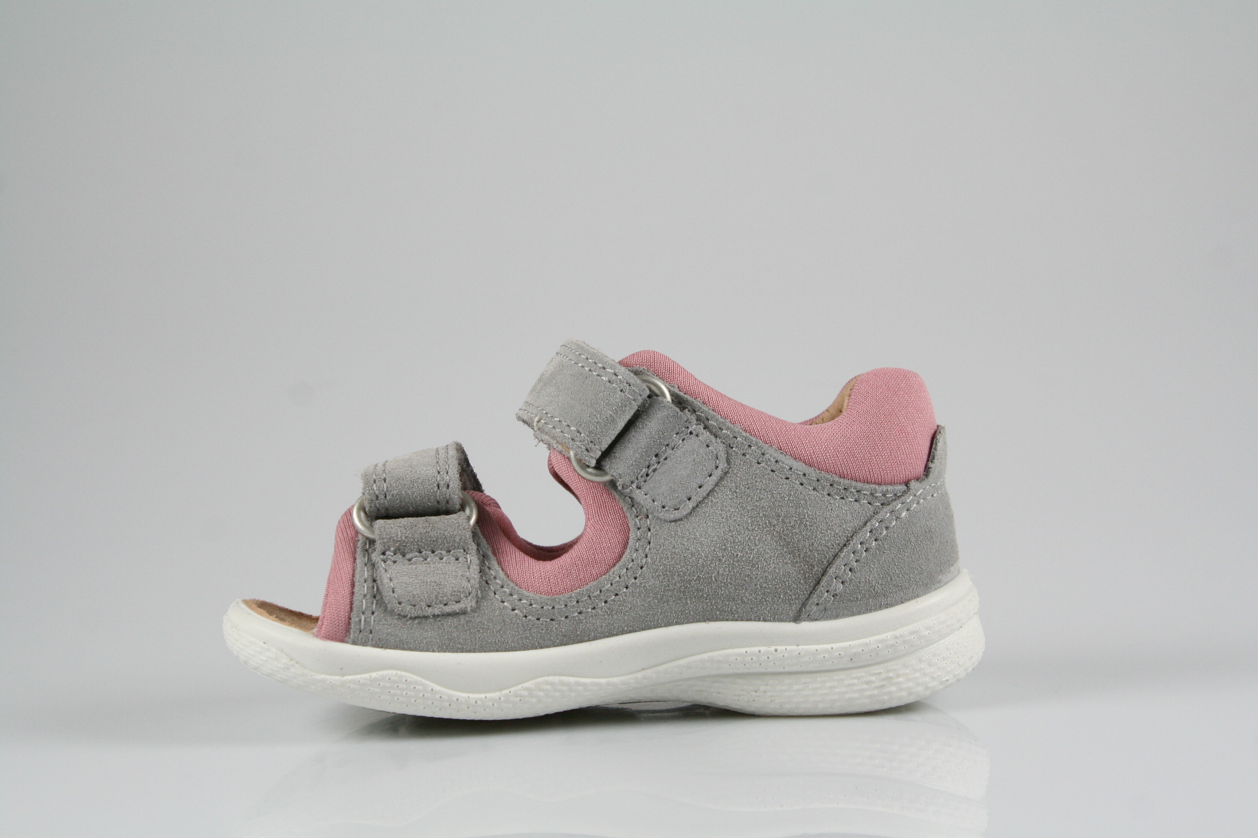 Typ: Erste-Schritte, Sandale; Farbe: "hellgrau/rosa"; Ausstattung:; - Obermaterial: Velour-/Effektleder kombiniert; - weiches Fußbett ; - atmungsaktives Futter; - superleichte und flexible Laufsohle; - Klettverschlüsse zur Weitenregulierung; - gepolsterter Schaftrand; - Weite M; - Modell "POLLY"