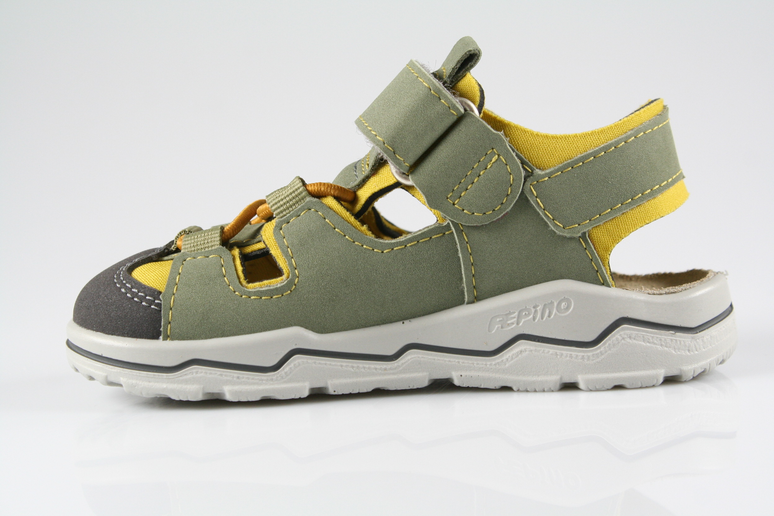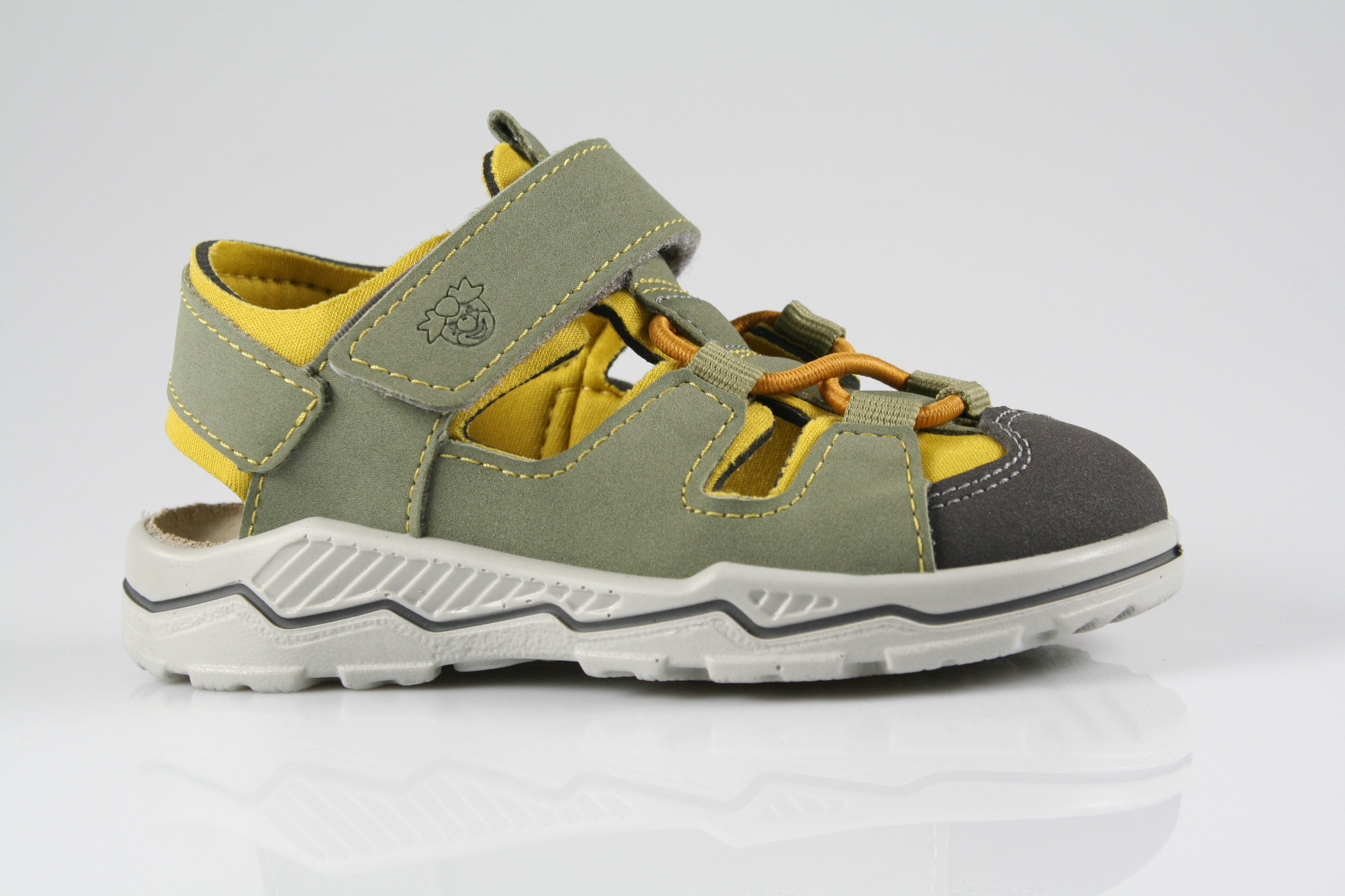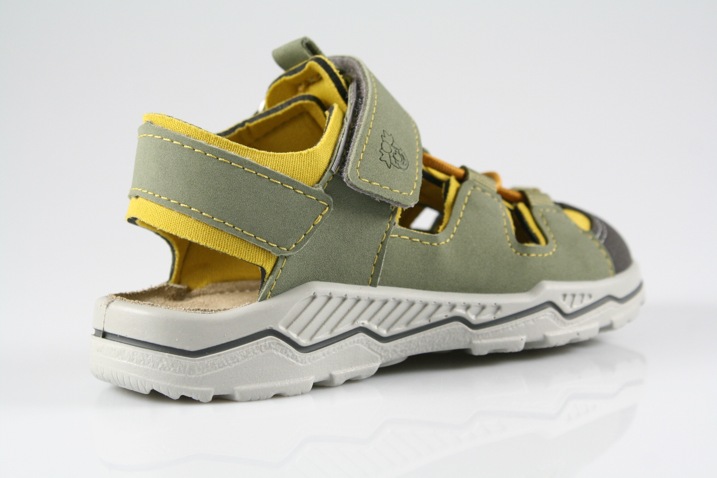 Typ: Lauflernsandale; Farbe: "eucalyptus/gelb"; Ausstattung:; - Obermaterial HighTech, kombiniert; - Neoprenfutter; - Lederdecksohle; - gepolsterter Schaftrand; - Gummizug und Klettverschluss; - flexible Gummisohle ; - Modell "Gery"; - Weite "M";
