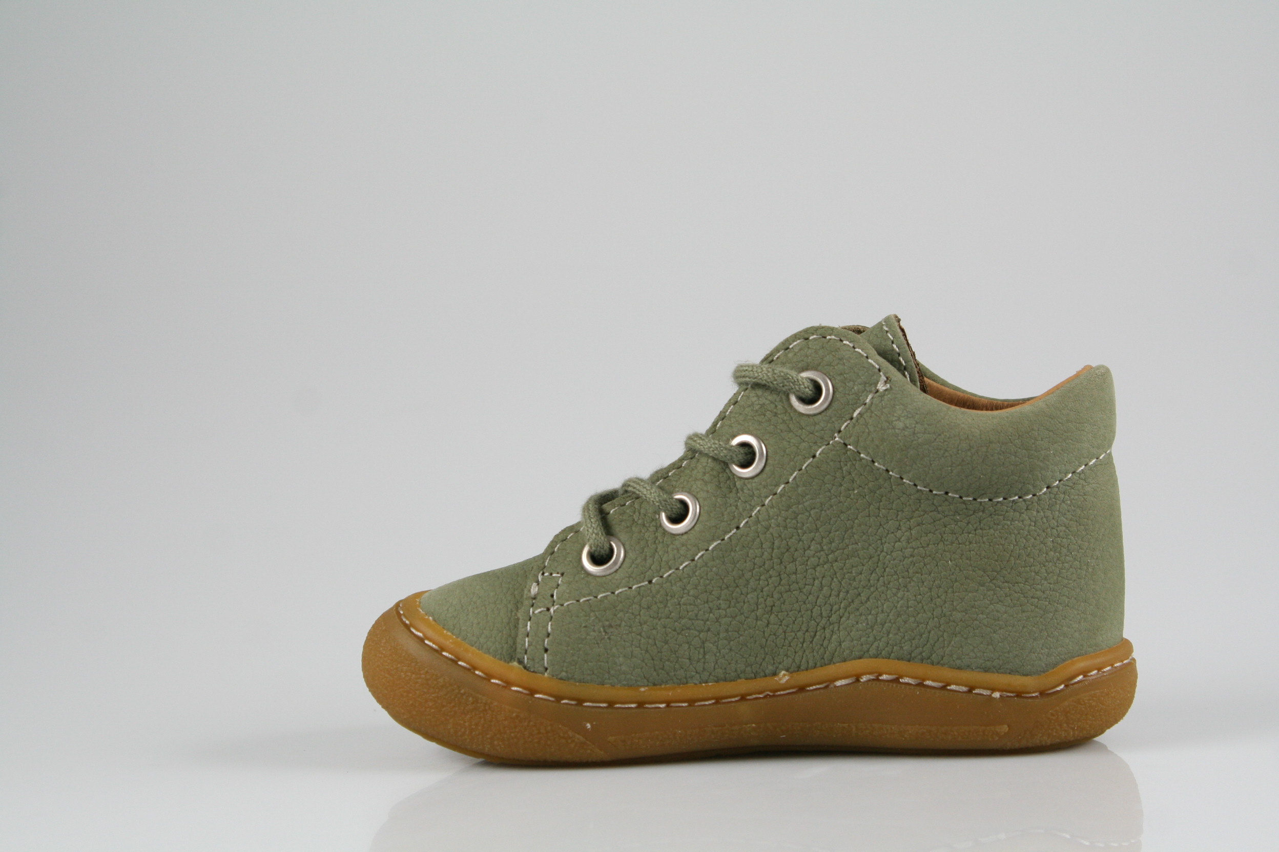 Typ: Erste-Schritte-Schuh; Farbe "eukalyptus"; Ausstattung:; - Obermaterial: Leder; - herausnehmbares Fußbett mit Größenkontrolle; - flexible Gummilaufsohle; - gepolsterter Schaftrand; - Schnürsenkel zur Weitenregulierung;
