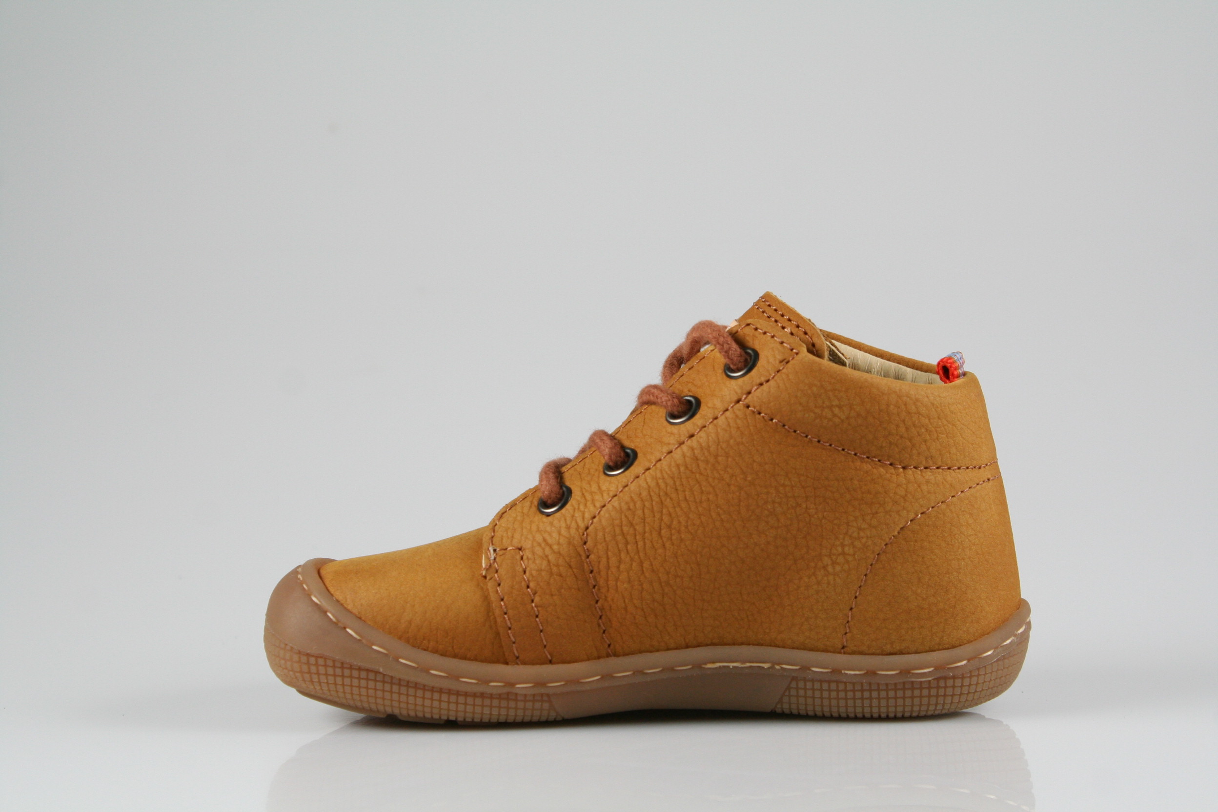 Typ: Lauflernschuh; Farbe "cognac"; Ausstattung:; - Obermaterial: Nubukleder; - herausnehmbares Fußbett; - flexible Gummilaufsohle; - gepolsterter Schaftrand; - Schnürsenkel zur Weitenregulierung