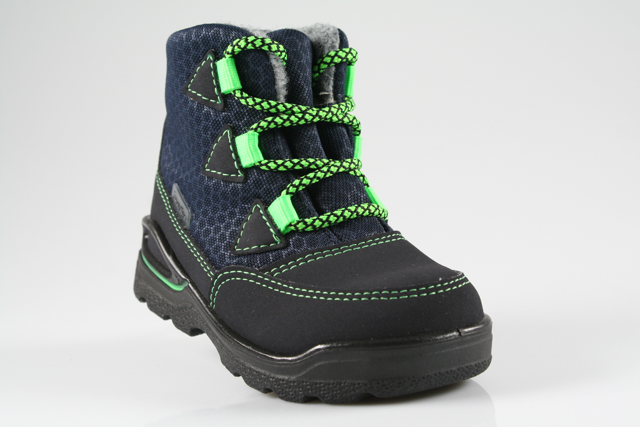 Typ: Winterboots; Farbe: "see/ozean"; Ausstattung:; - Obermaterial: HighTech; - Futter: Lammwolle; - herausnehmbares Fußbett; - superleichte Laufsohle; - gepolsterter Schaftrand; - Schnürsenkel zur Weitenregulierung; - wasserfest durch "SympaTex"-Membrane; - Weite "weit"; - Modell "Emil"