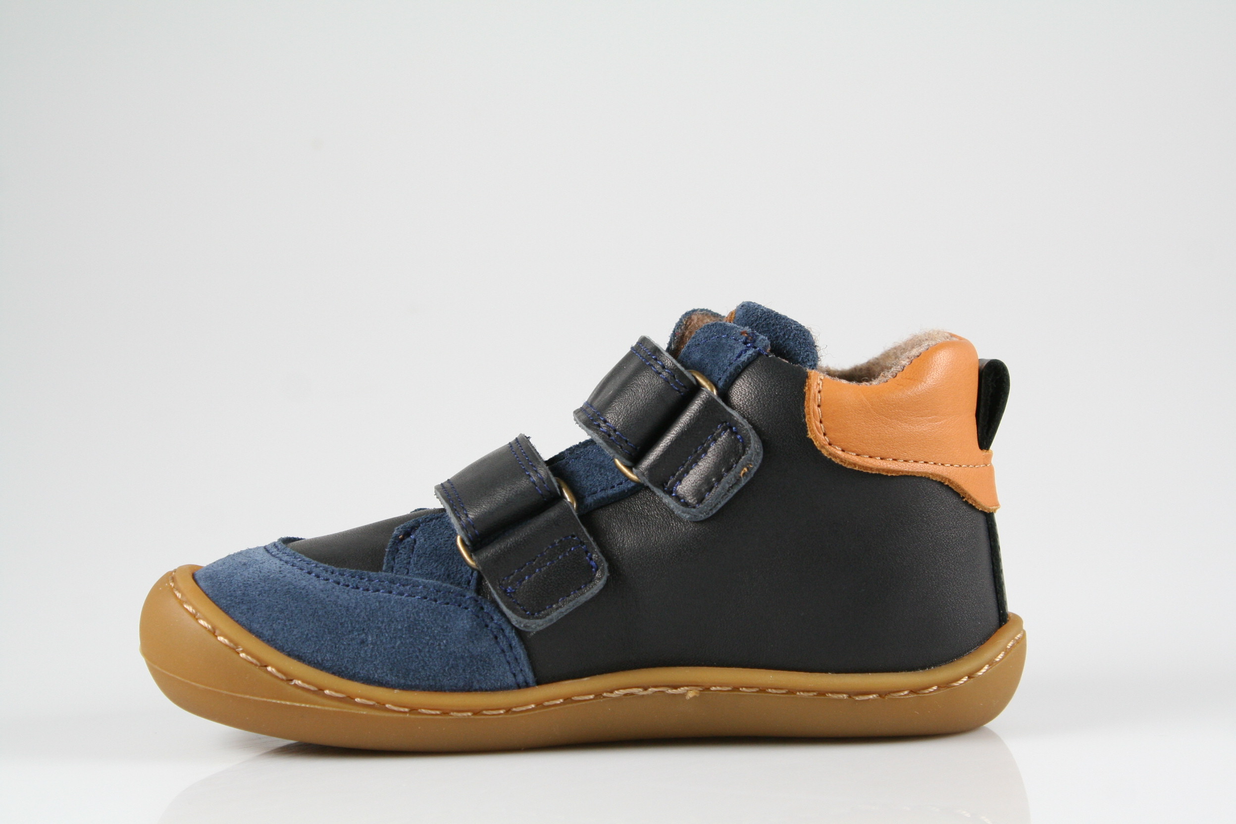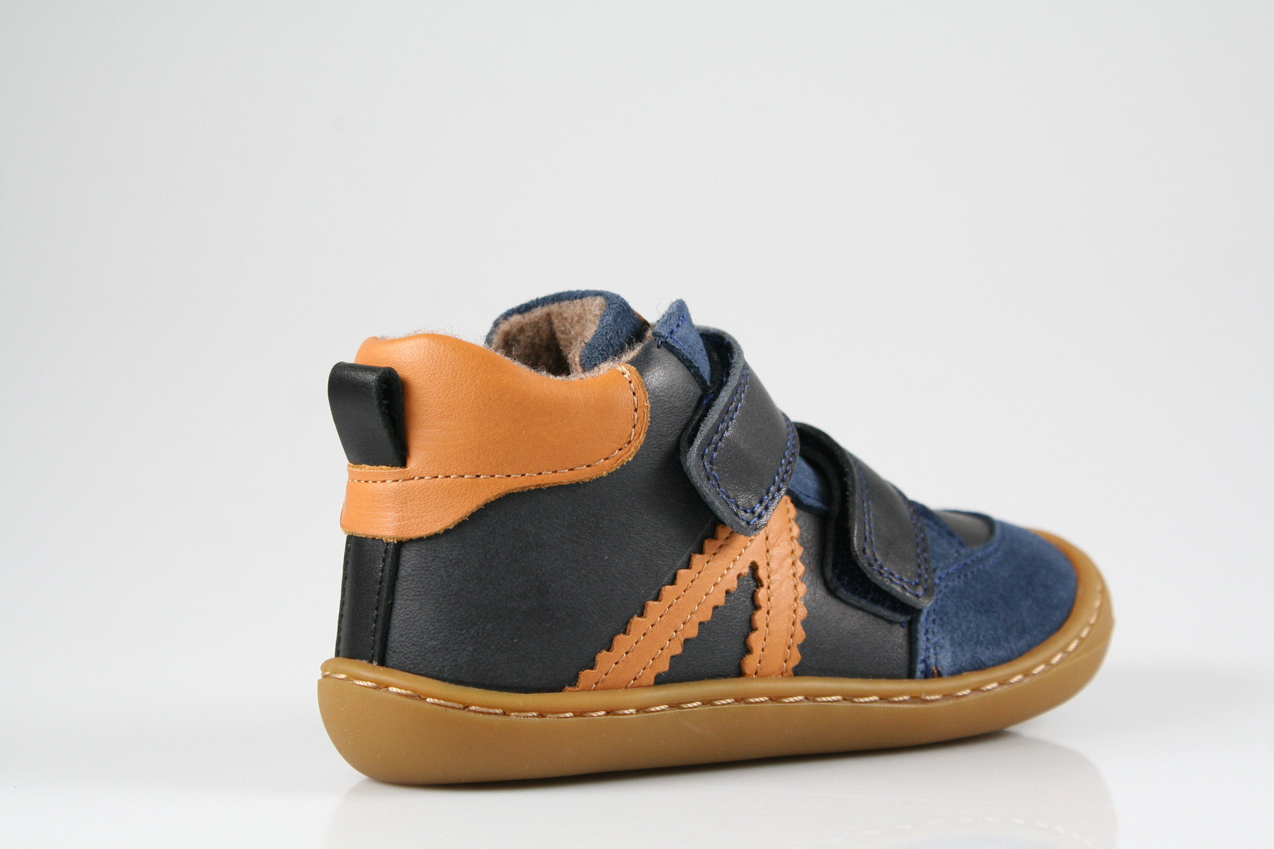 Typ: Barfußschuh; Farbe "navy"; Ausstattung:; - Obermaterial: Leder kombiniert; - Warmfutter; - herausnehmbare Decksohle; - flexible Laufsohle; - gepolsterter Schaftrand; - Klettverschluss zur Weitenregulierung;