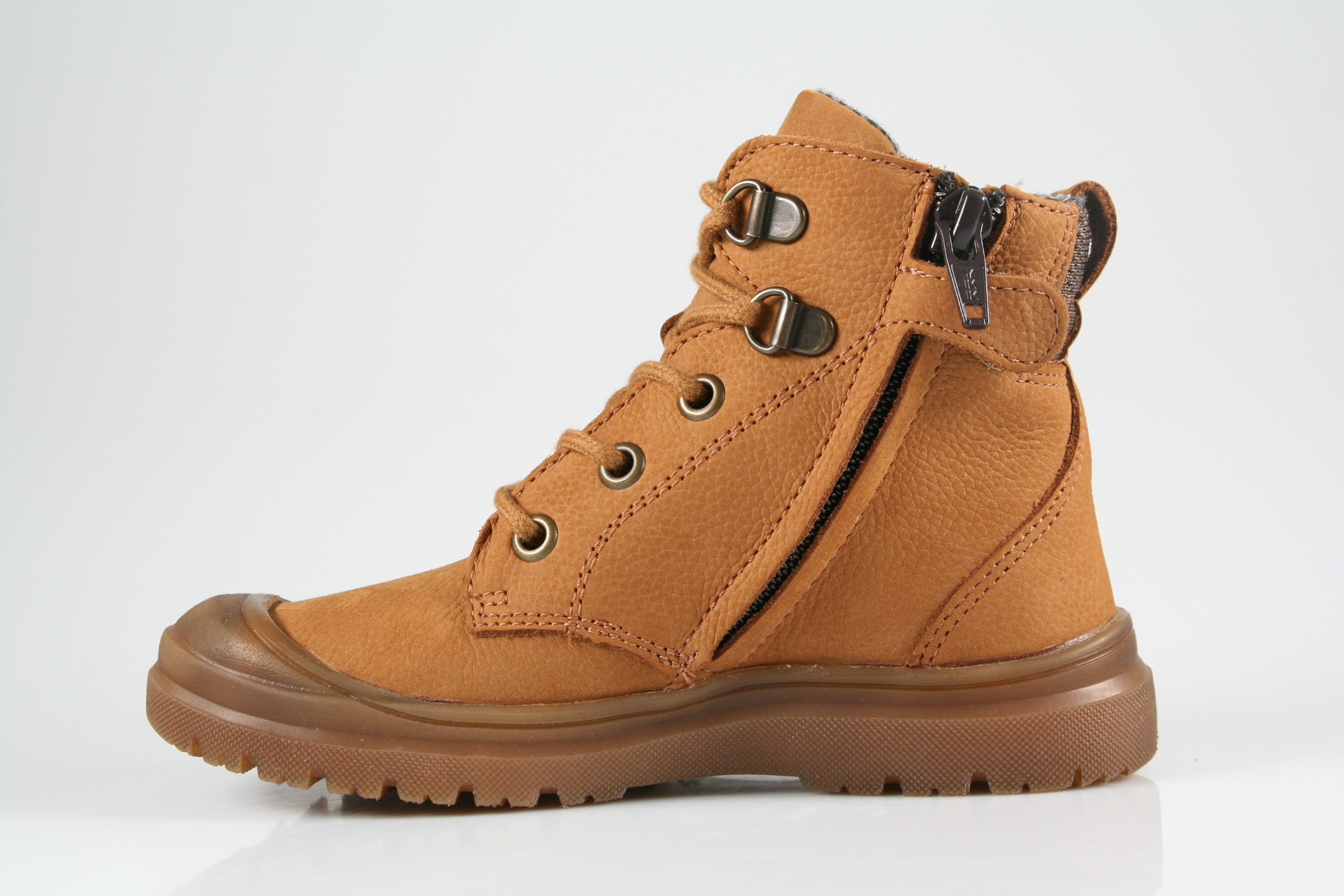 Typ: Boots; Farbe: "cognac"; Ausstattung:; - Obermaterial: Nubukleder; - wasserfeste Membrane; - angerautes Futter; - herausnehmbares Fußbett; - robuste Gummilaufsohle; - gepolsterter Schaftrand; - Schnürung und Reißverschluss