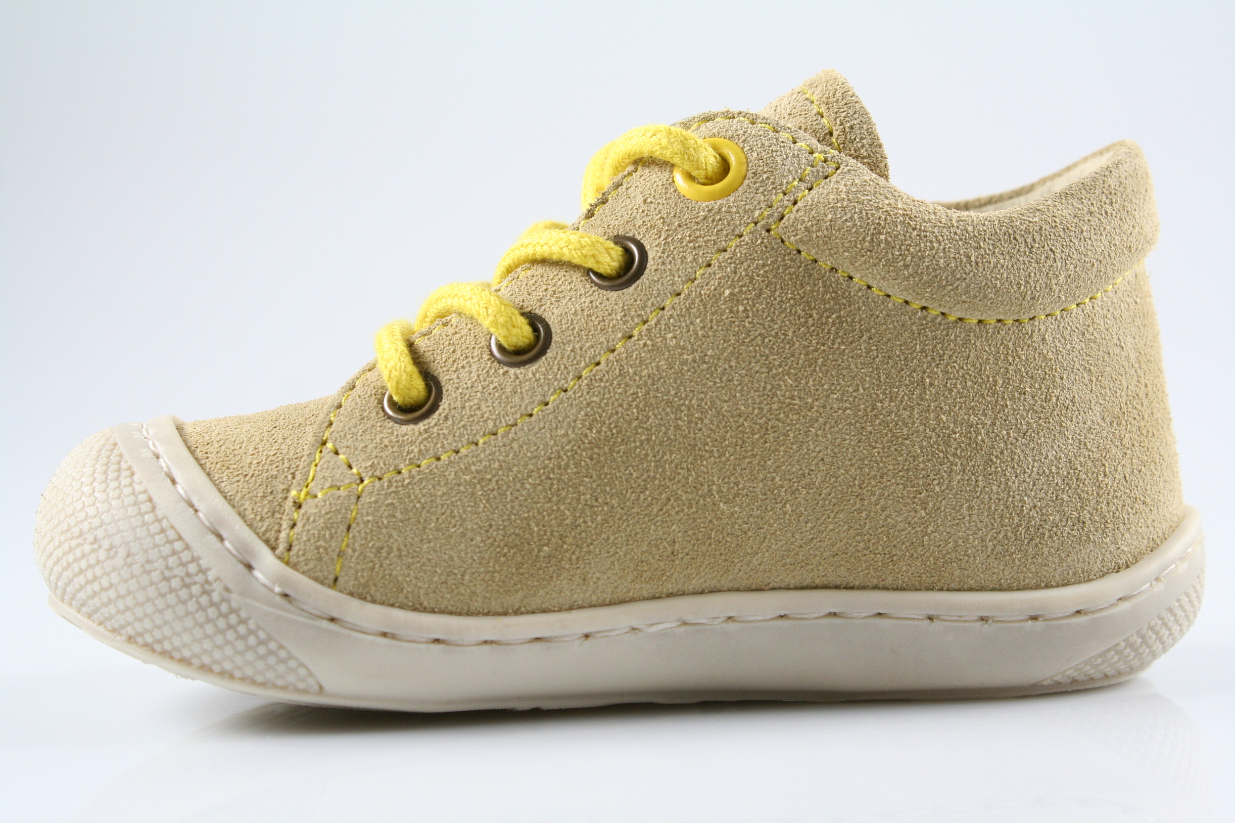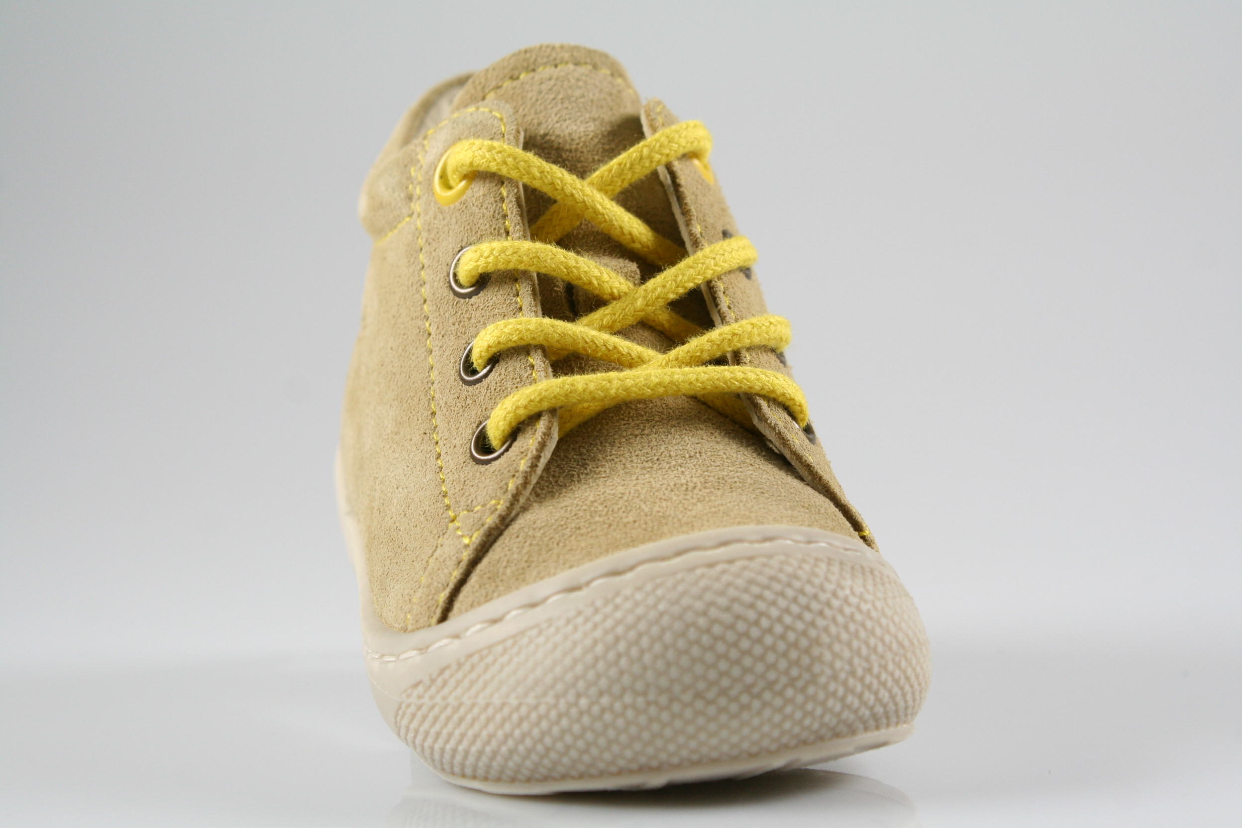 Typ: Erste Schritte; Farbe: "sand-yellow"; Ausstattung:; - Obermaterial: Velourleder; - Lederfutter; - herausnehmbares Lederfußbett; - flexible Laufsohle mit robuster Vorderkappe; - gepolsterter Schaftrand; - Schnürsenkel zur Weitenregulierung