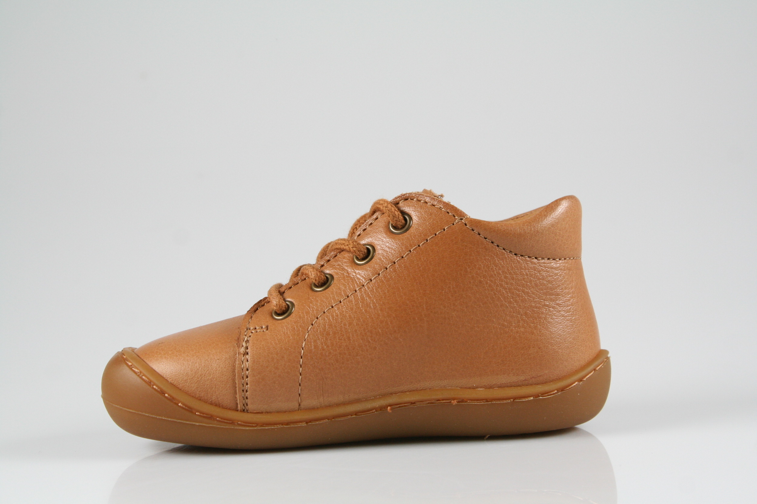Typ: Lauflernschuh; Farbe "cognac"; Ausstattung:; - Obermaterial: Nappaleder; - weiches Fußbett; - flexible Gummilaufsohle; - gepolsterter Schaftrand; - Schnürsenkel zur Weitenregulierung