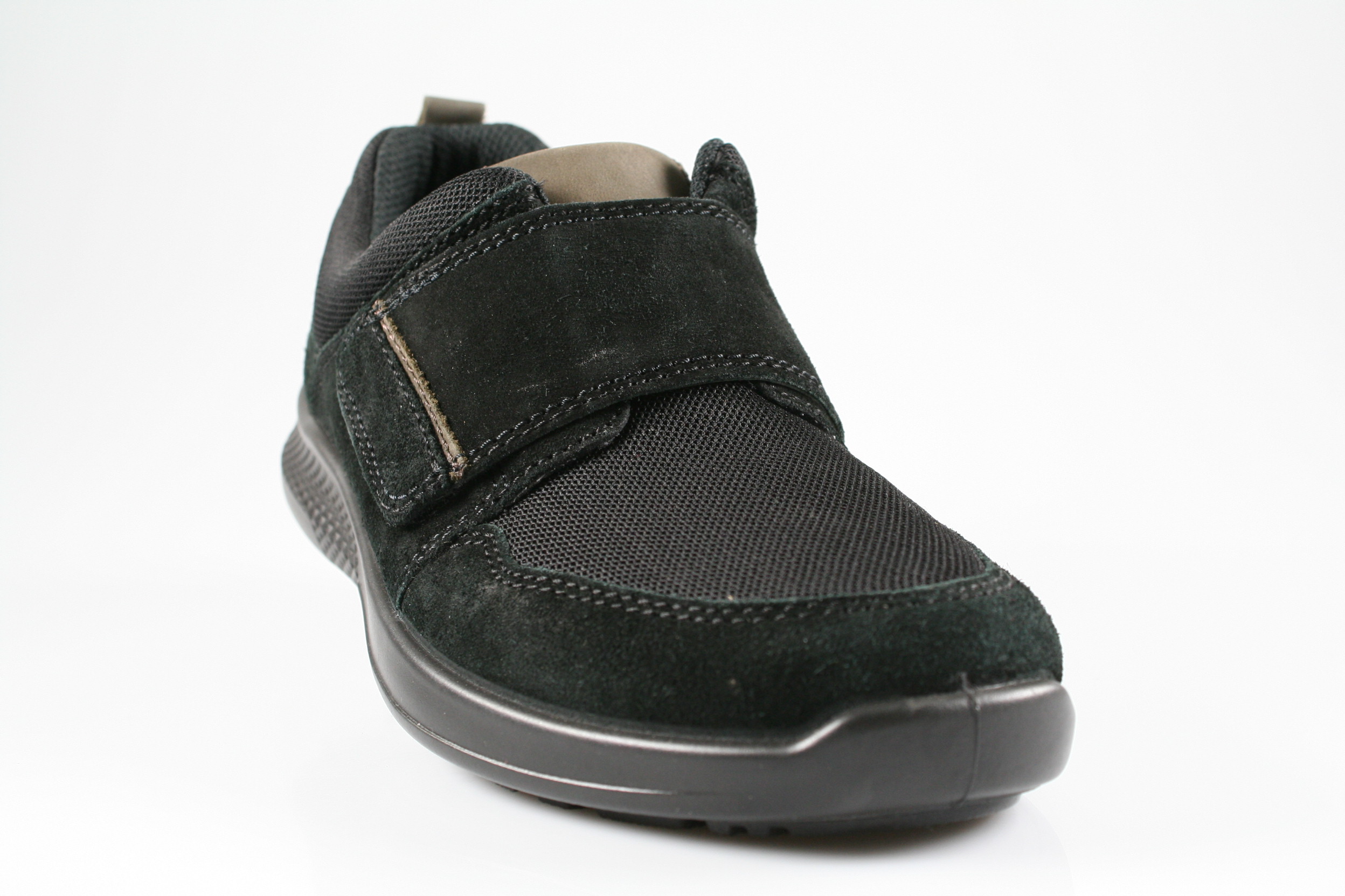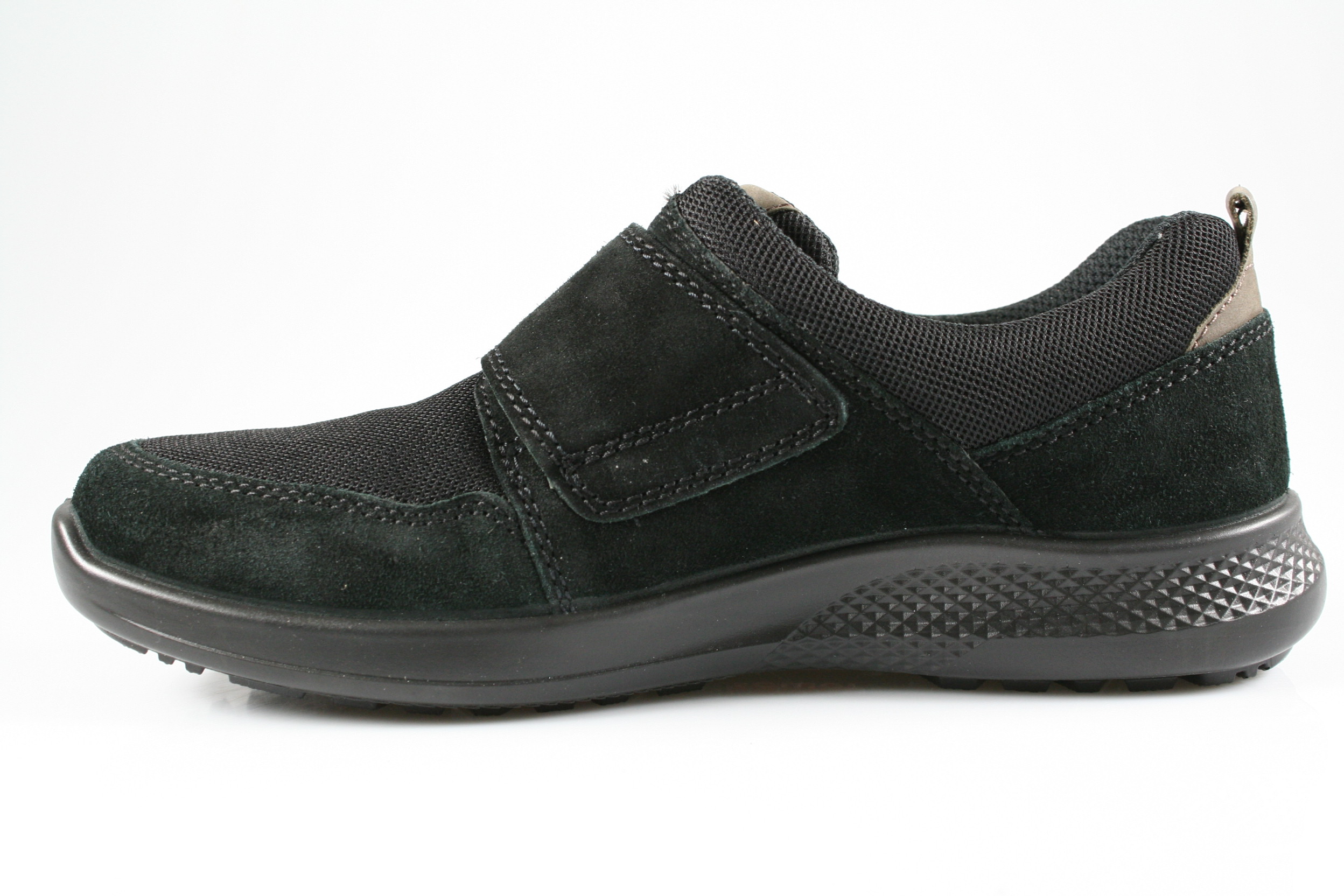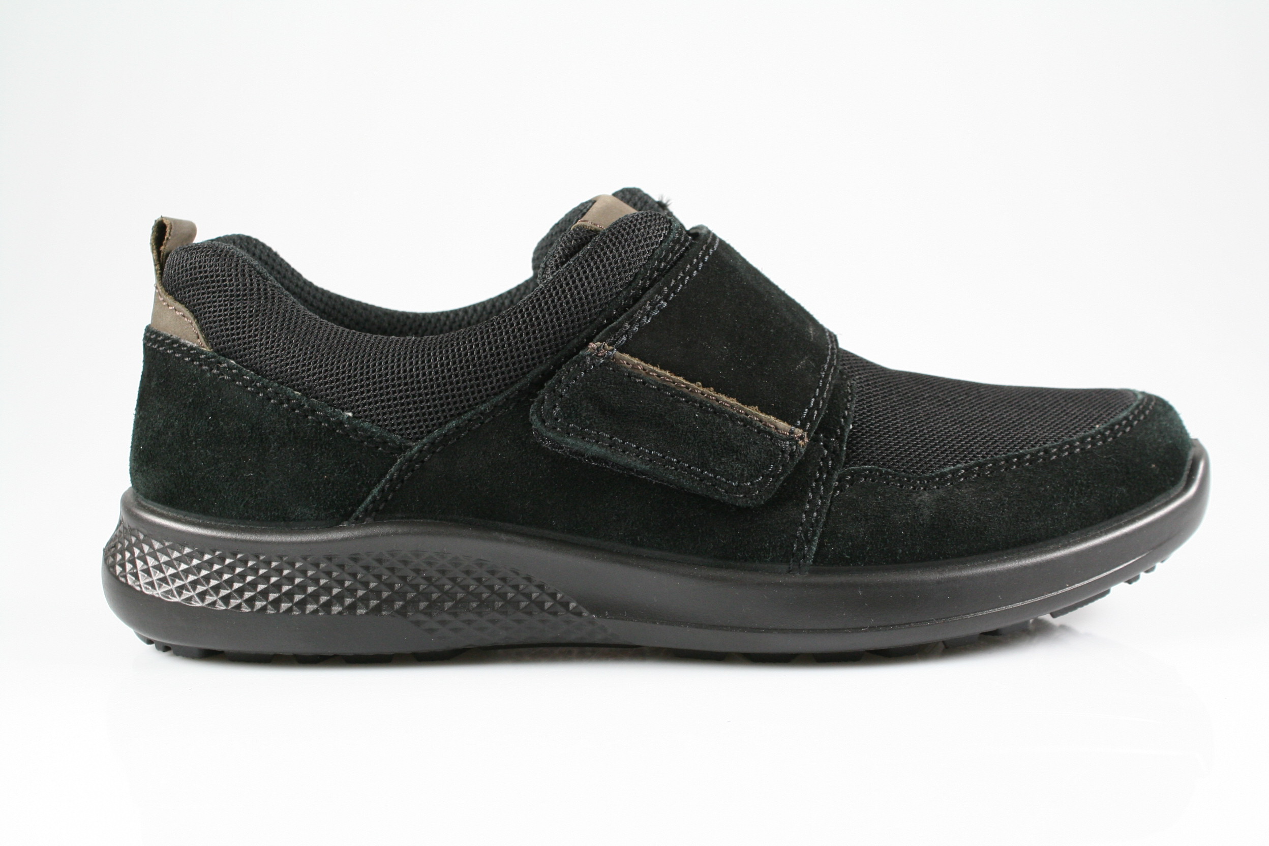 Typ: Halbschuh; Farbe "schwarz"; Ausstattung:; - Obermaterial: Velourleder, Mesh; - herausnehmbares Fußbett; - leichte Laufsohle; - gepolsterter Schaftrand; - Klettverschluss zur Weitenregulierung