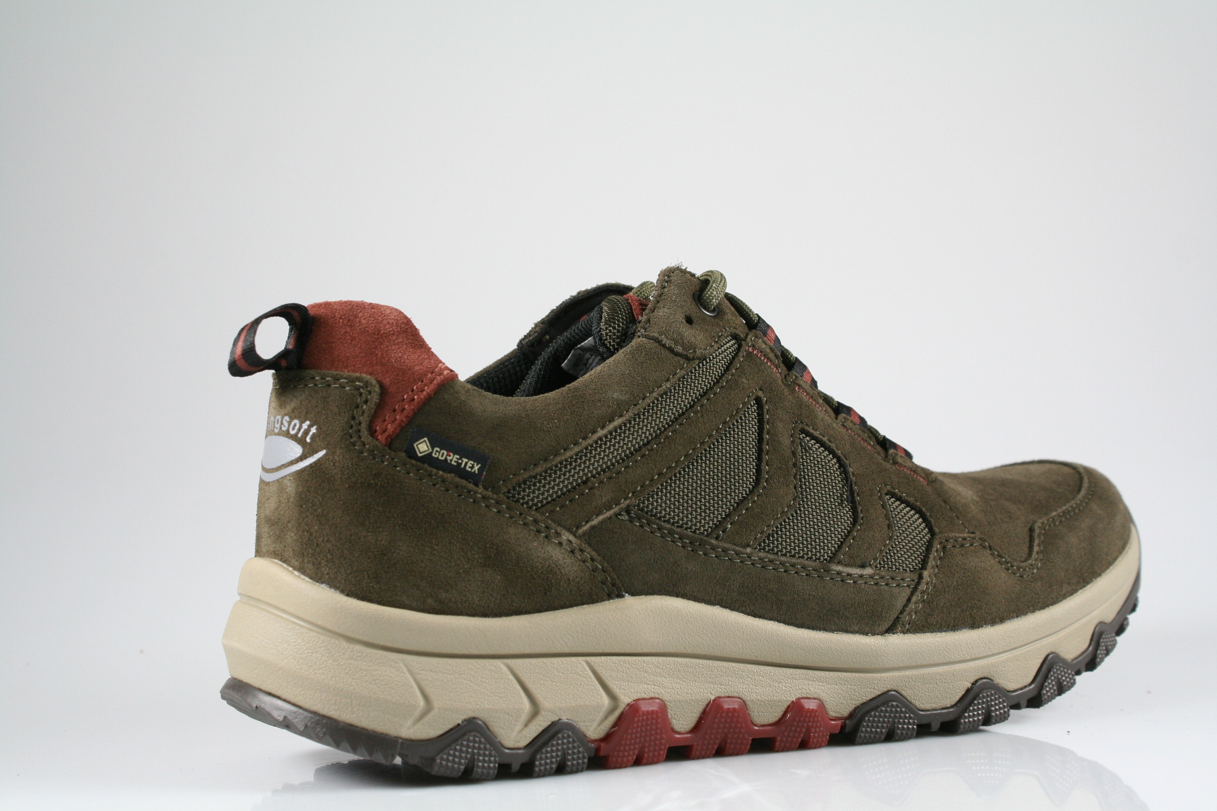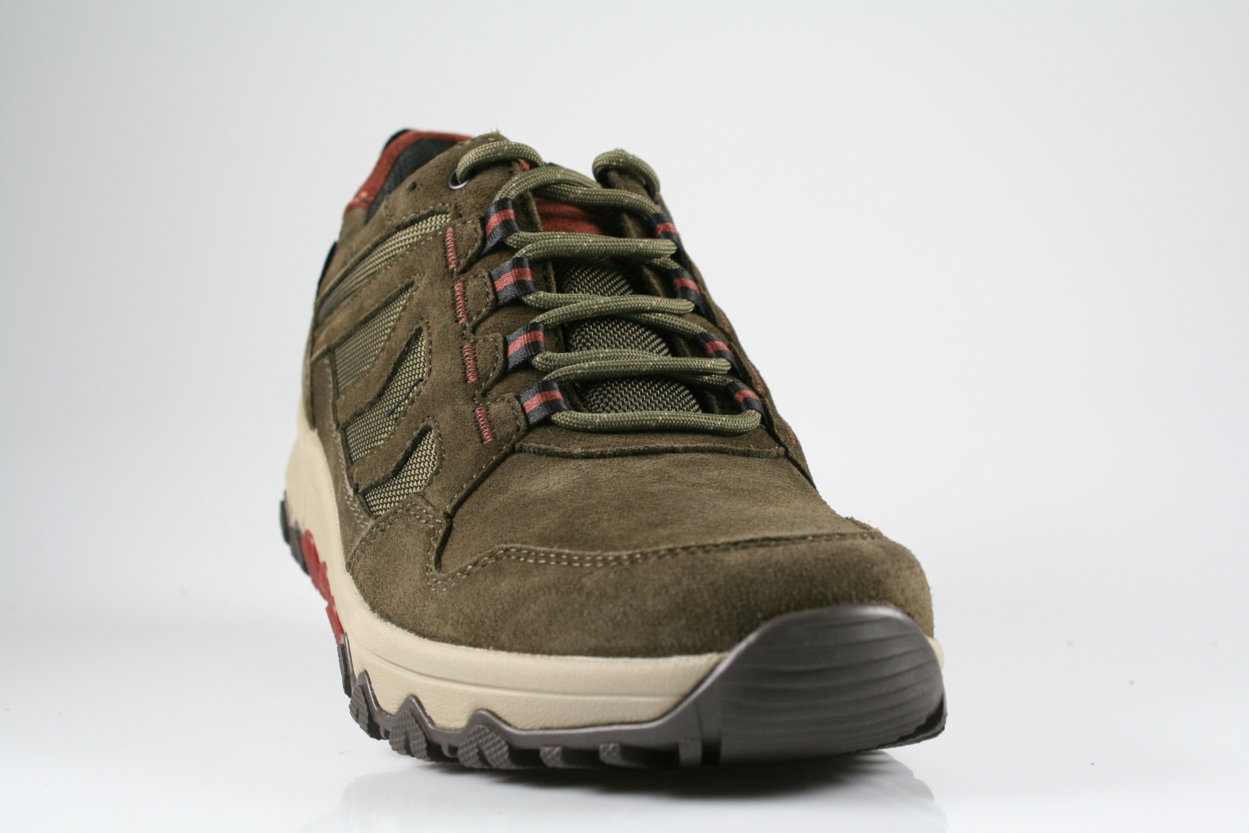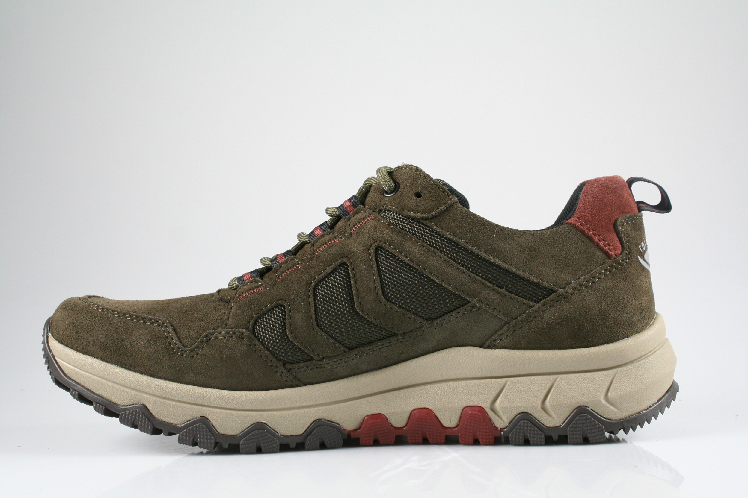 Typ: Halbschuh; Farbe "forest"; Ausstattung:; - Obermaterial: Velourleder, Mesh; - herausnehmbares Fußbett; - leichte Laufsohle; - gepolsterter Schaftrand; - Schnürsenkel zur Weitenregulierung; - "GoreTex"-Membrane