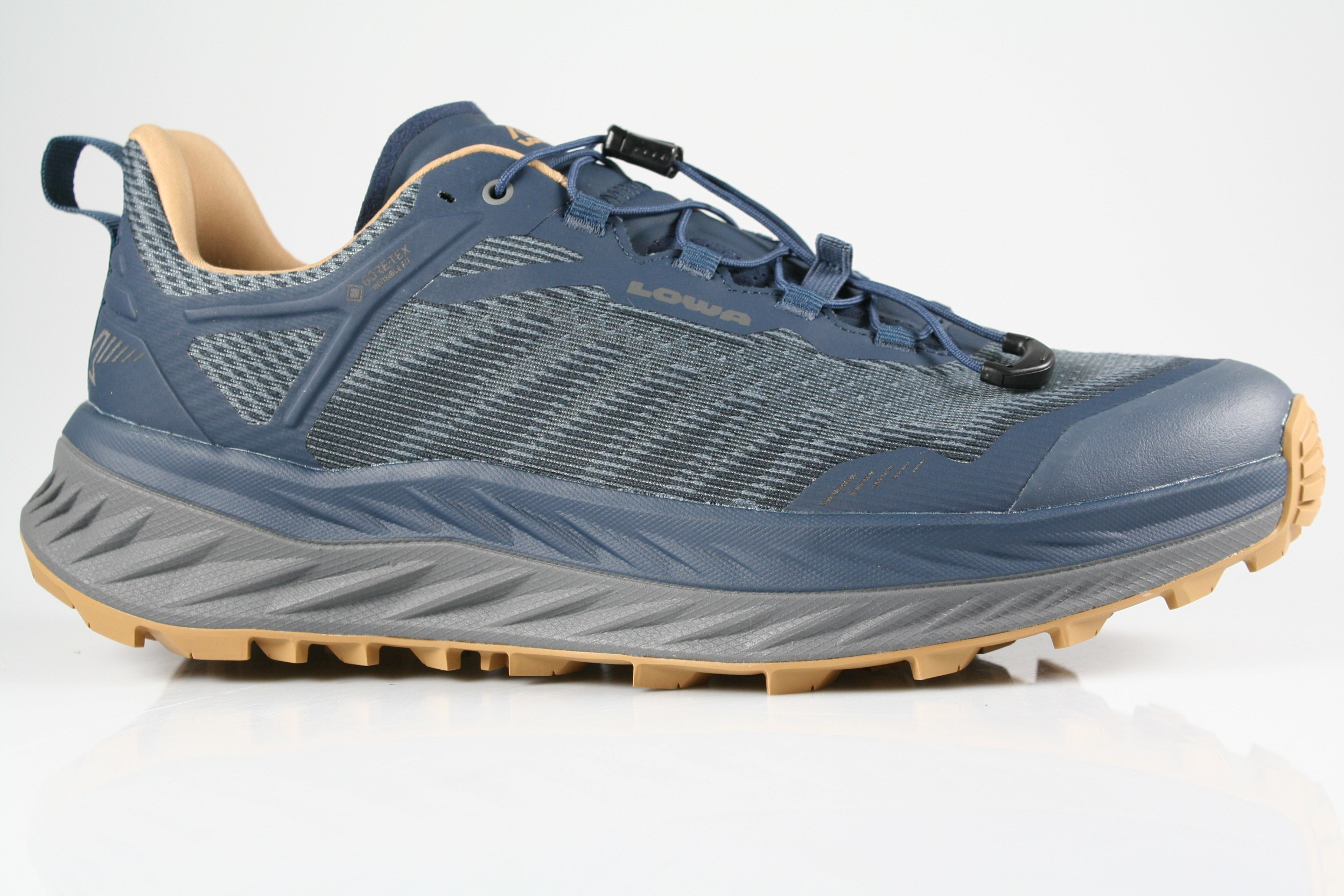 Typ: Outdoor Laufschuh; Farbe: "navy/dune"; Ausstattung:; - Obermaterial: HighTech, kombiniert; - wasserdicht durch Gore-Tex; - atmungsaktives Futter; - herausnehmbares Fußbett; - robuste Laufsohle; - gepolsterter Schaftrand; - Gummisenkel mit Stopper; - Modell "FORTUX GTX"