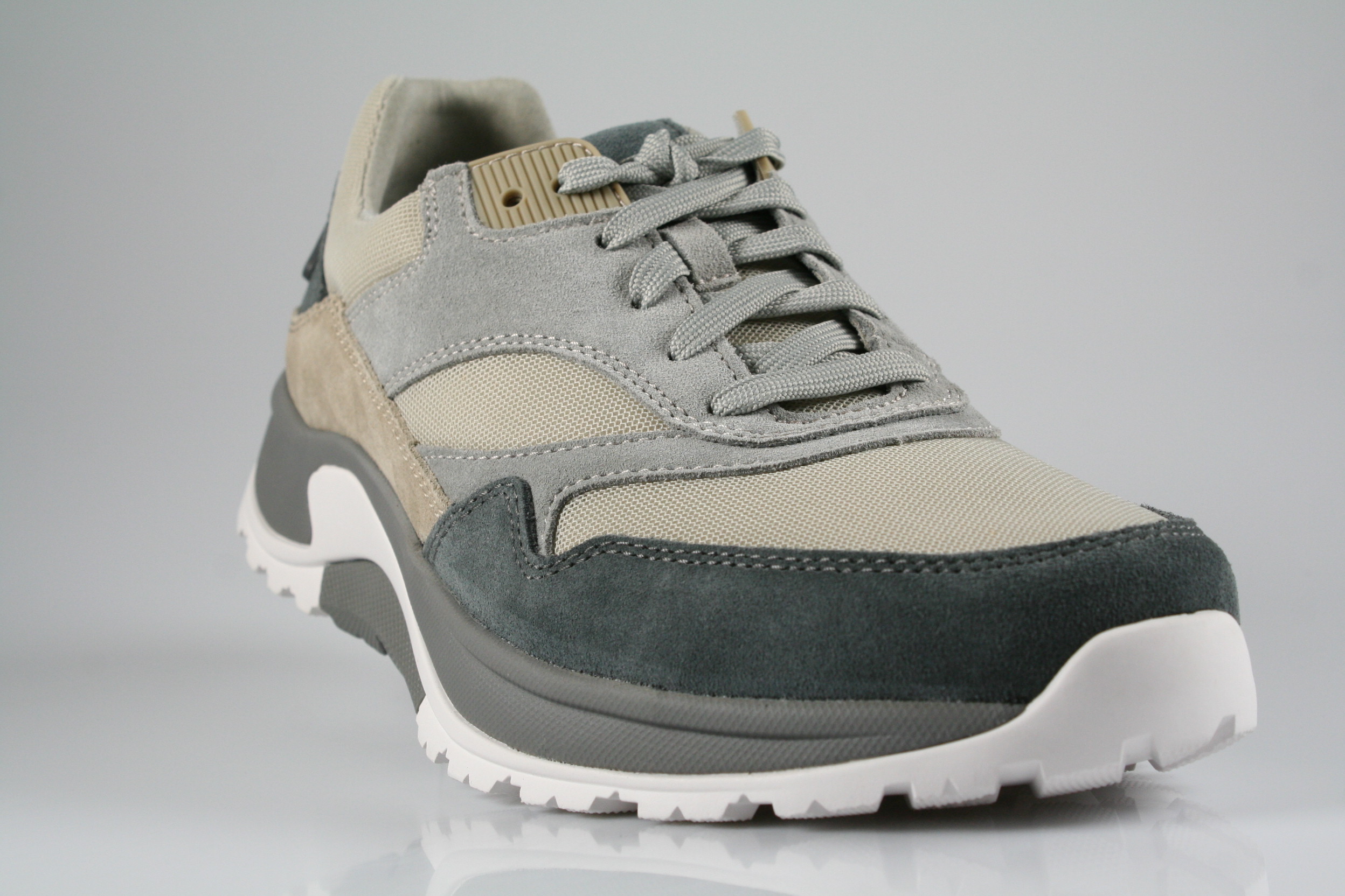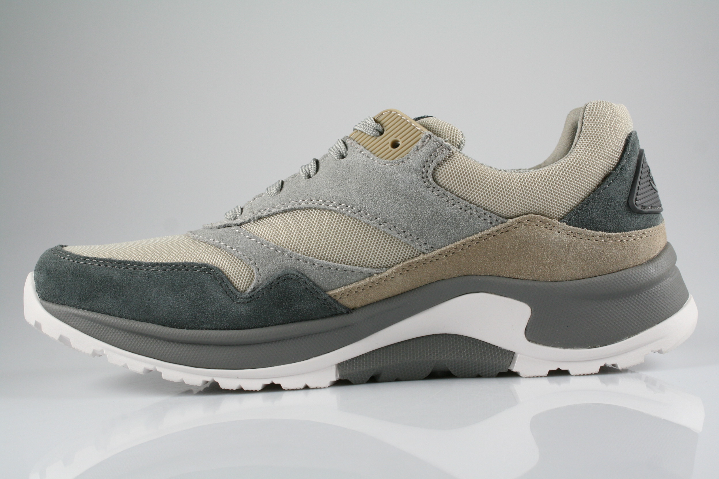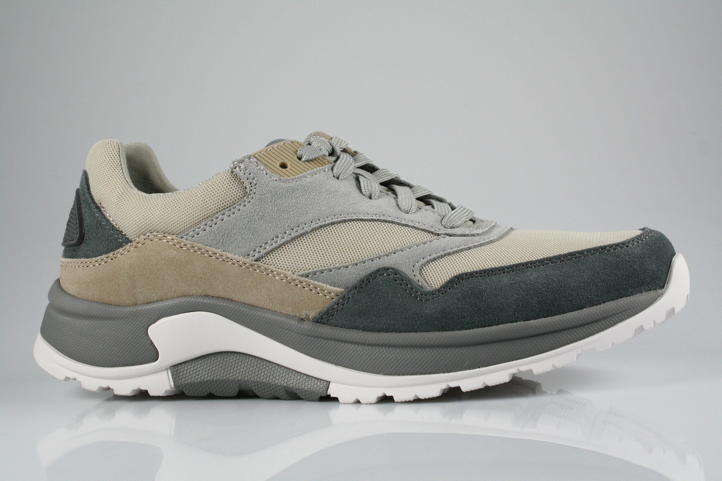 Typ: Halbschuh; Farbe: "iron/sand kombi."; Ausstattung:; - Obermaterial: Velourleder/Mesh, kombiniert; - atmungsaktives Futter; - herausnehmbares Fußbett; - leichte Abrollsohle; - gepolsterter Schaftrand;