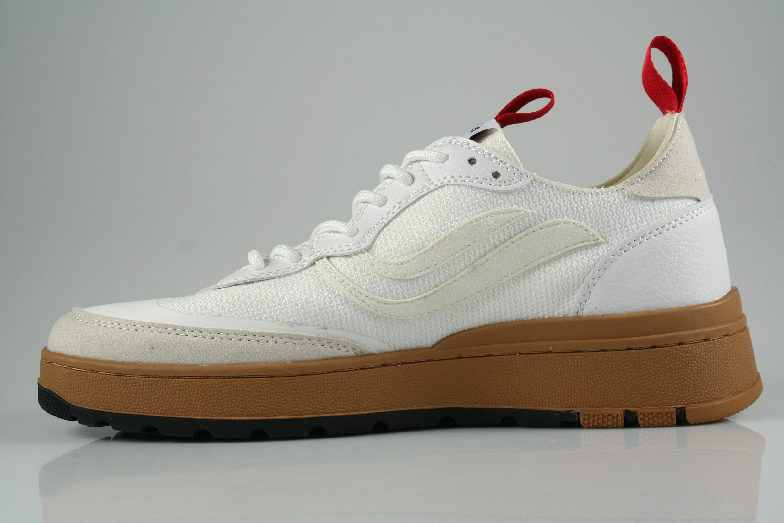 Typ: Sneaker; Farbe "white/gum"; Ausstattung:; - Obermaterial aus recycelten Materialien; - herausnehmbares Fußbett; - leichte Laufsohle; - gepolsterter Schaftrand; - Schnürsenkel zur Weitenregulierung