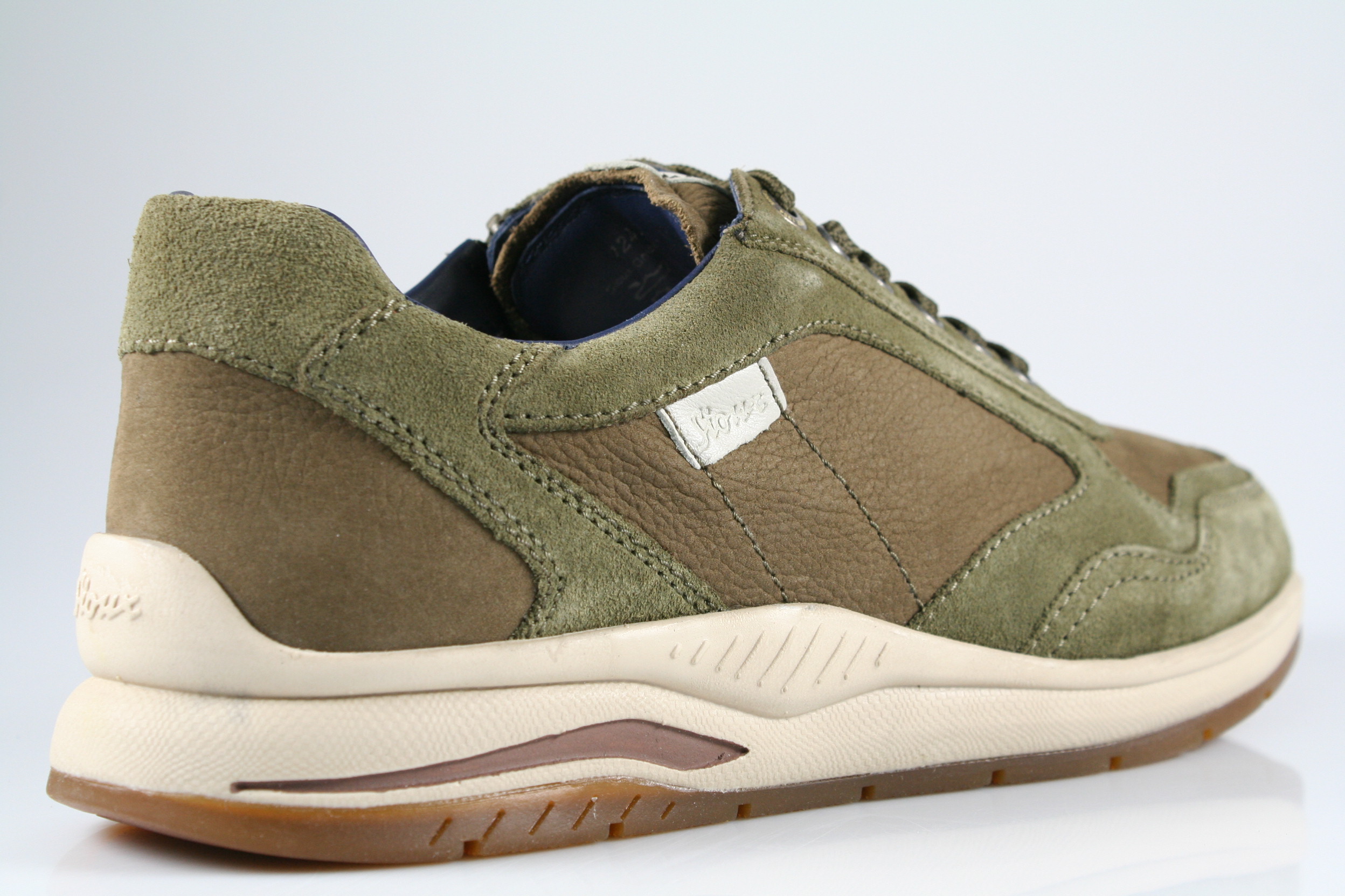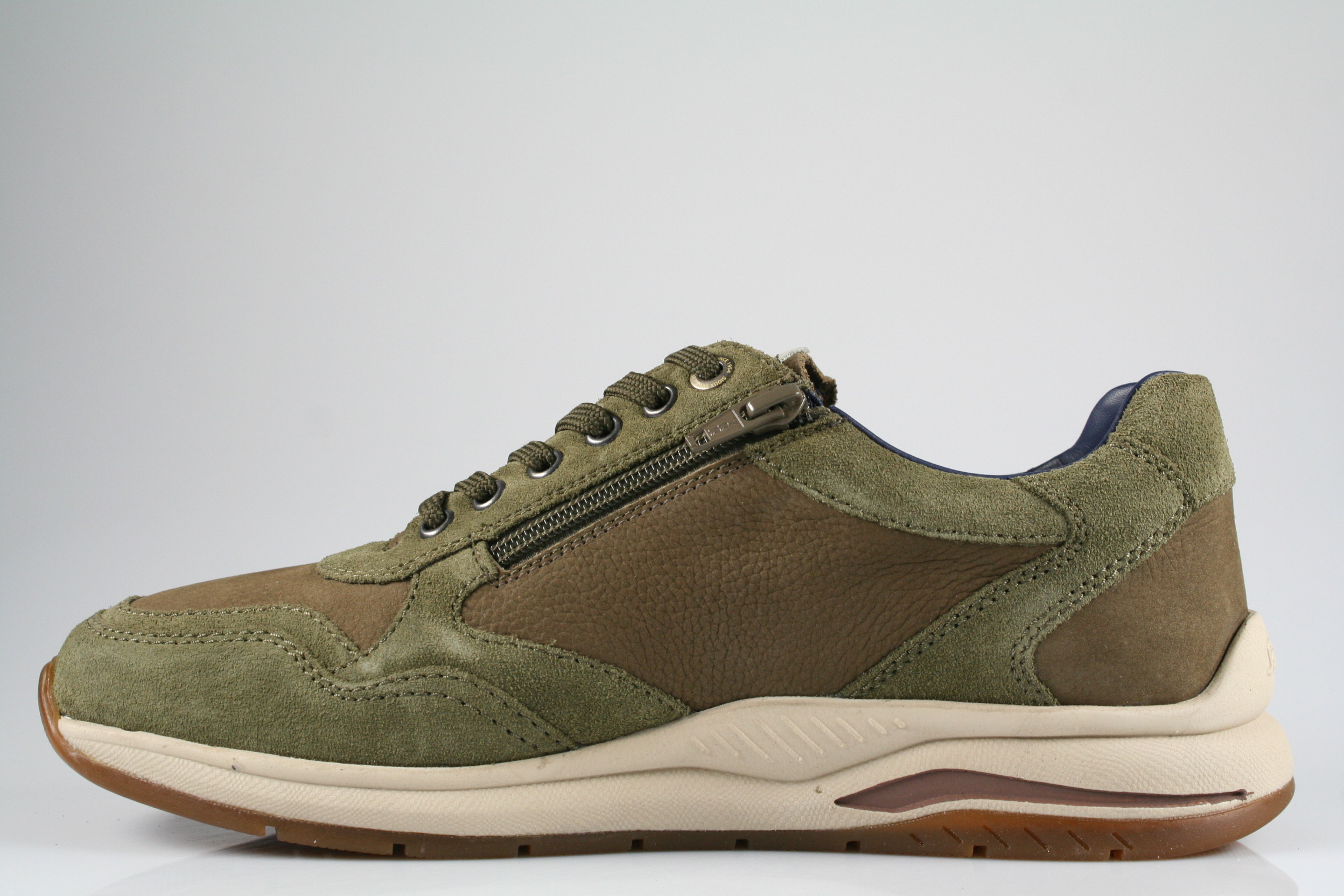 - Obermaterial: Velour-/Nubukleder, kombiniert