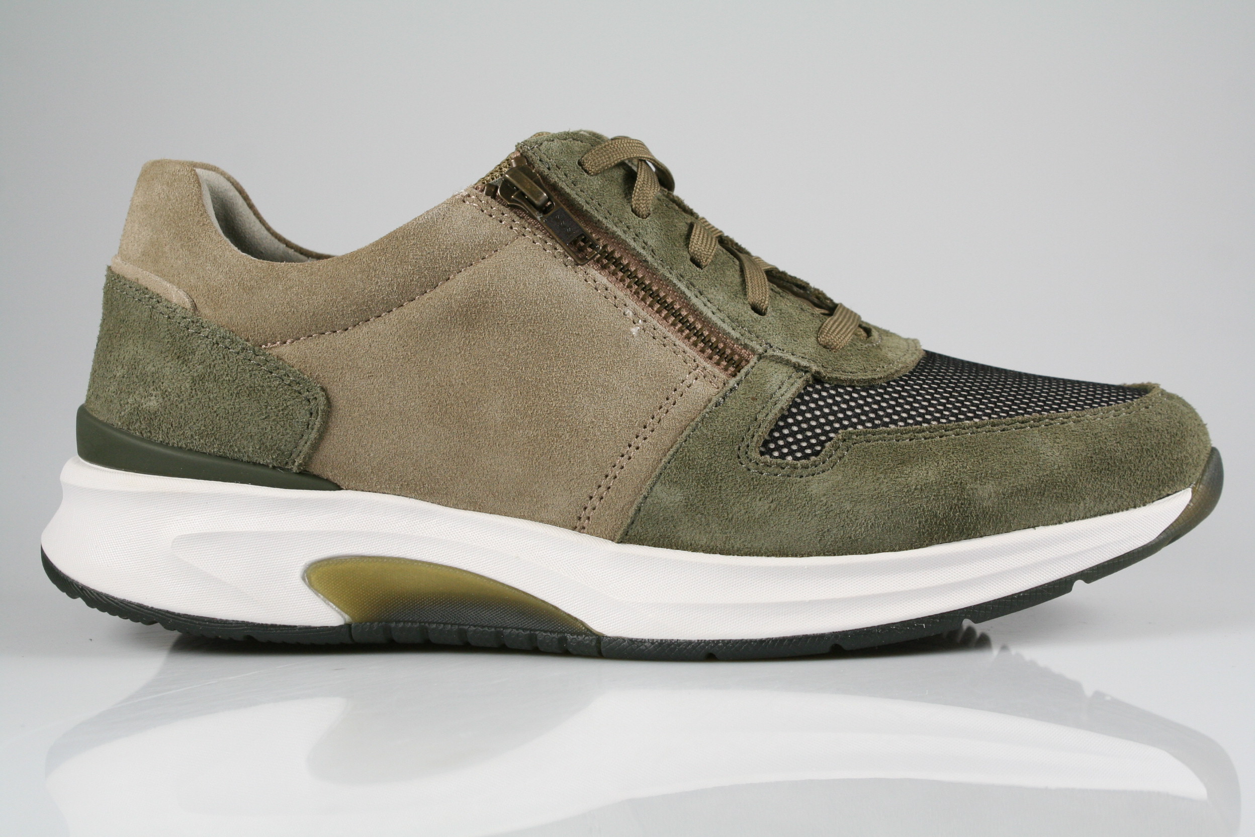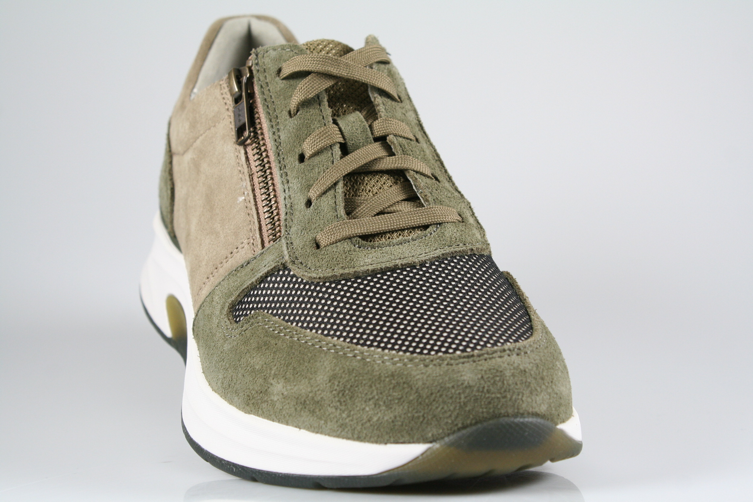 Typ: Halbschuh; Farbe: "tundra/sesamo"; Ausstattung:; - Obermaterial: Velourleder/Mesh, kombiniert; - atmungsaktives Futter; - herausnehmbares Fußbett; - leichte Abrollsohle; - Schnürsenkel und Reißverschluss; - gepolsterter Schaftrand;