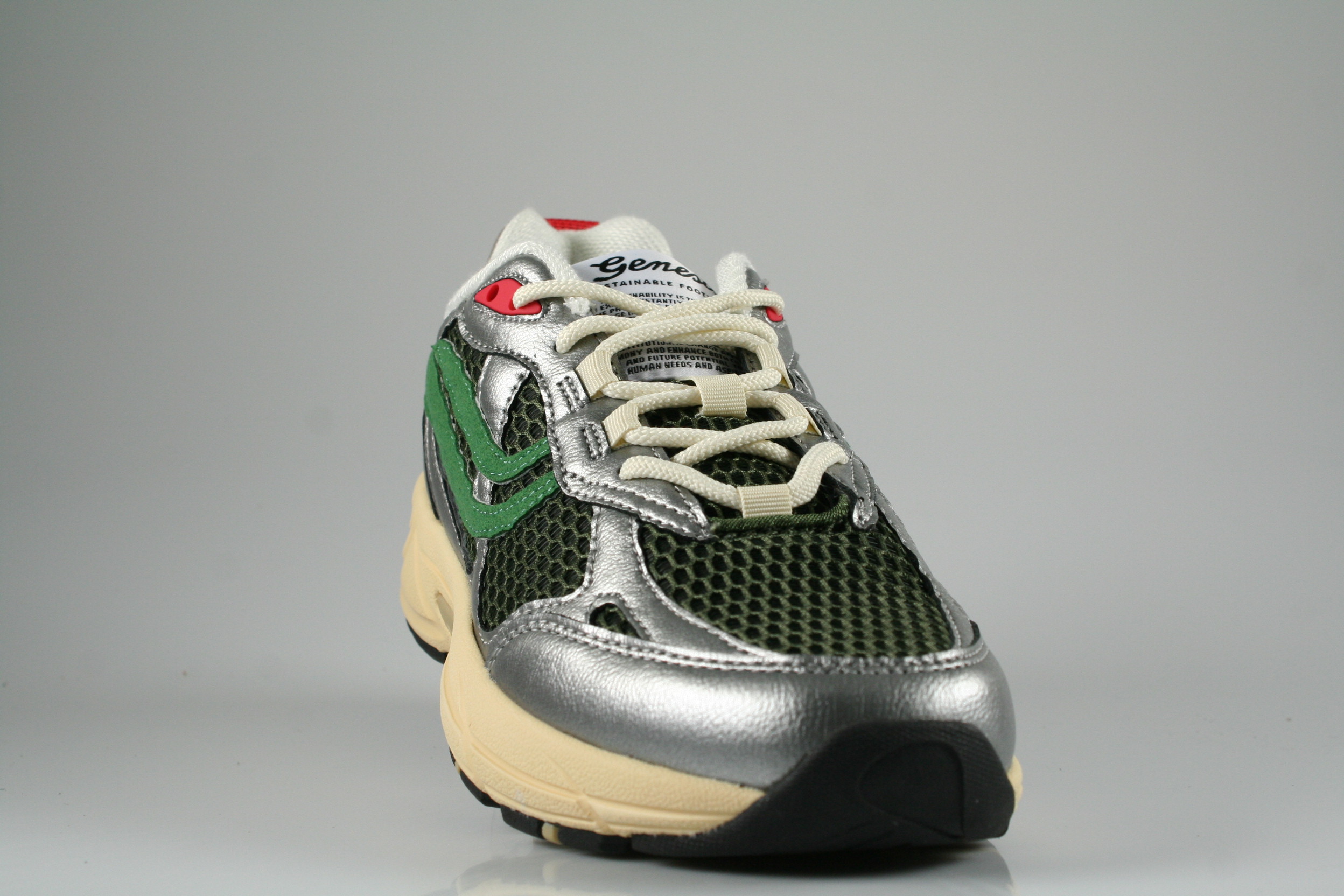 Typ: Sneaker; Farbe "silver/olive"; Ausstattung:; - Obermaterial aus recycelten Materialien; - herausnehmbares Fußbett; - leichte Laufsohle; - gepolsterter Schaftrand; - Schnürsenkel zur Weitenregulierung; - vegan;