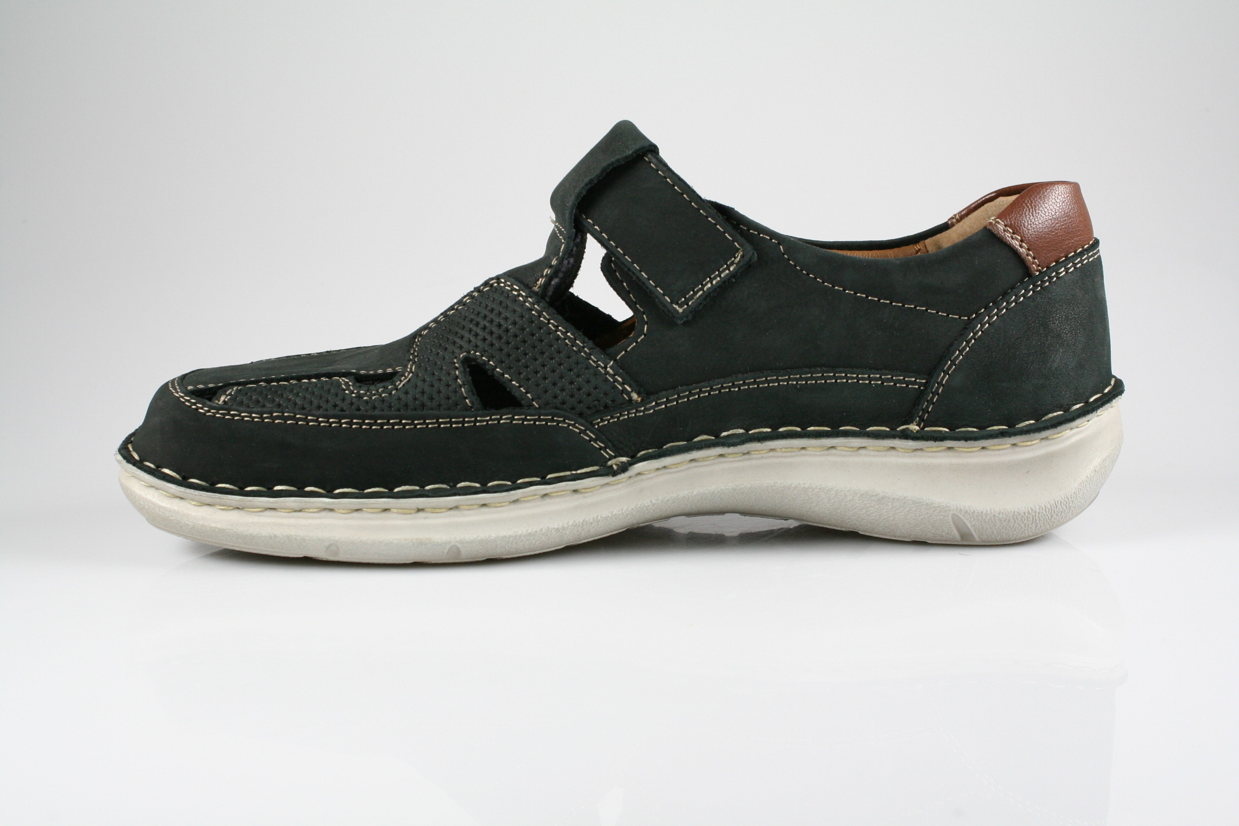 Typ: Halbschuh; Farbe "dunkelblau"; Ausstattung:; - Obermaterial: Leder; - herausnehmbares Fußbett; - flexible Laufsohle; - gepolsterter Schaftrand; - Klettverschluss zur Weitenregulierung