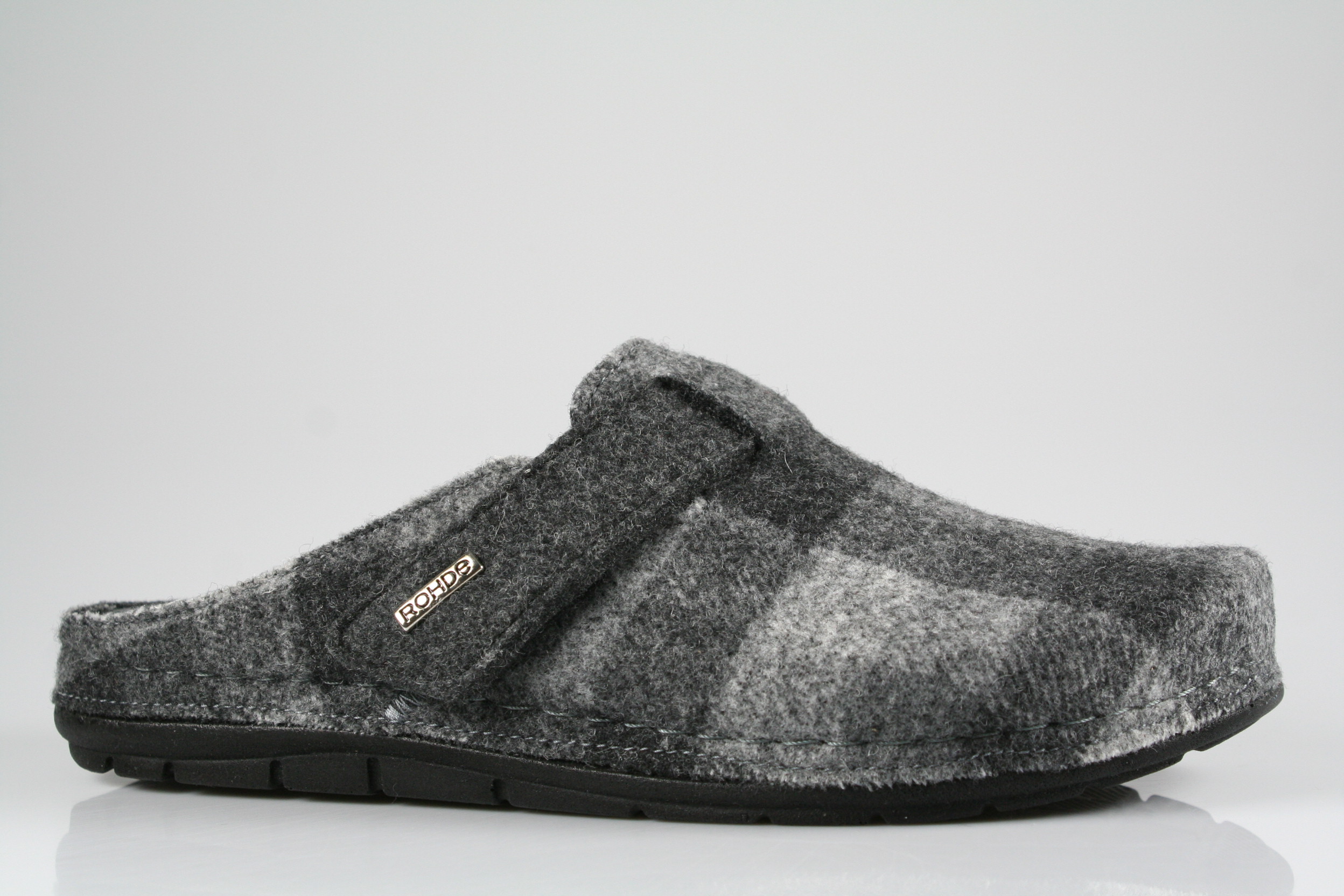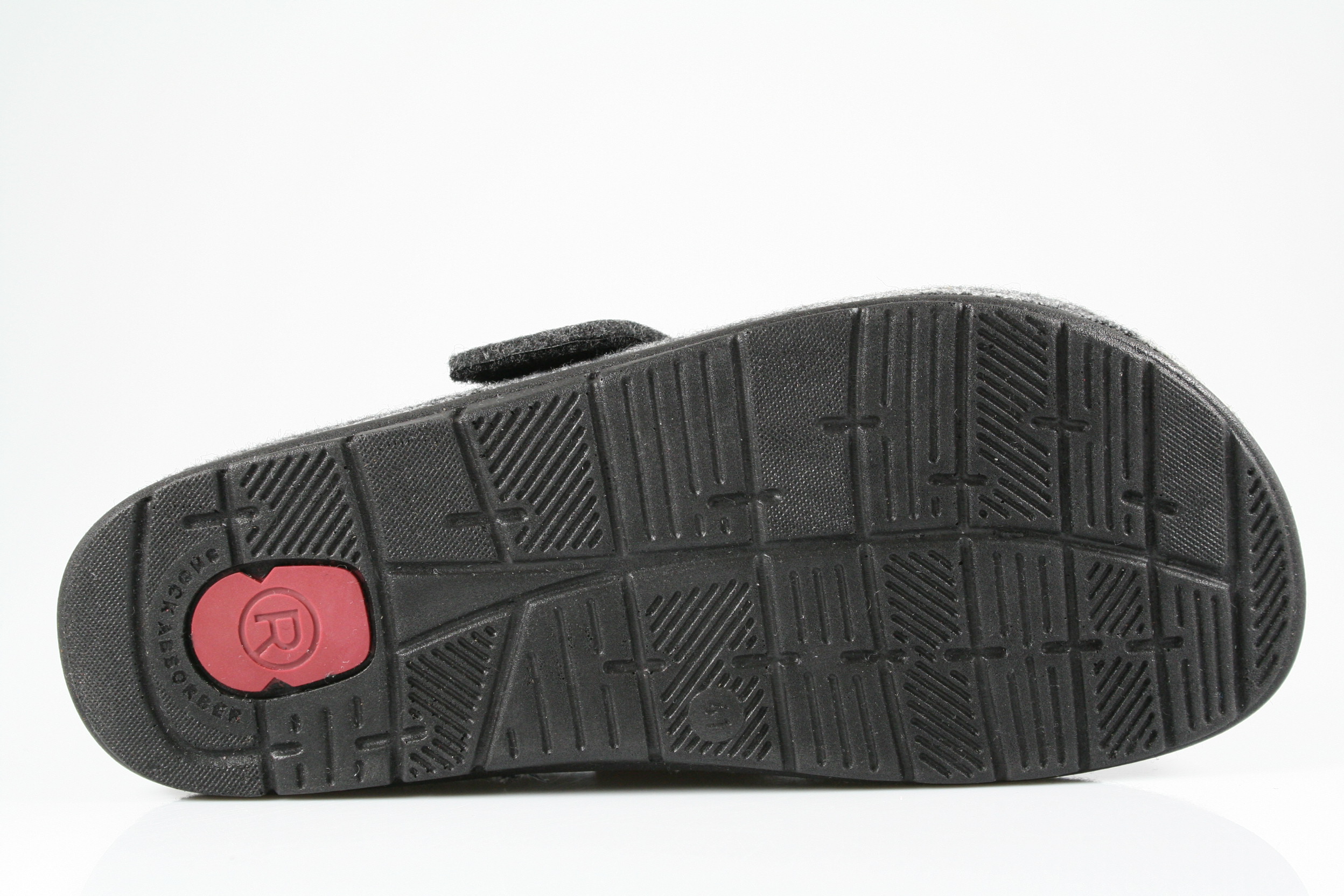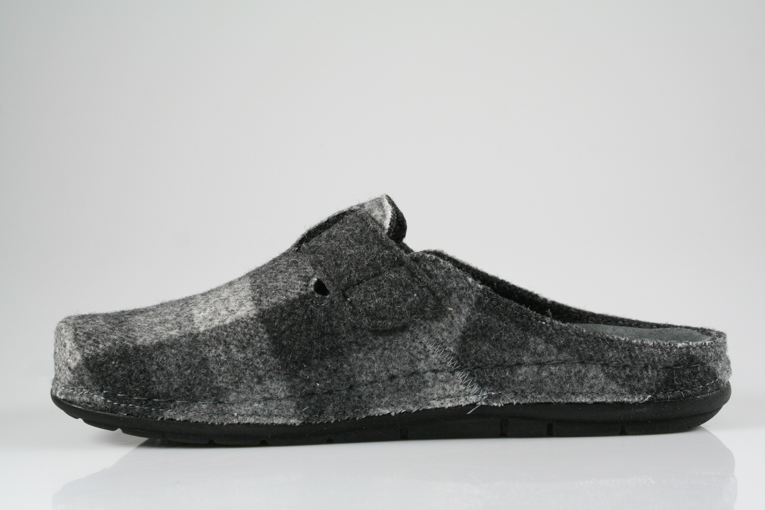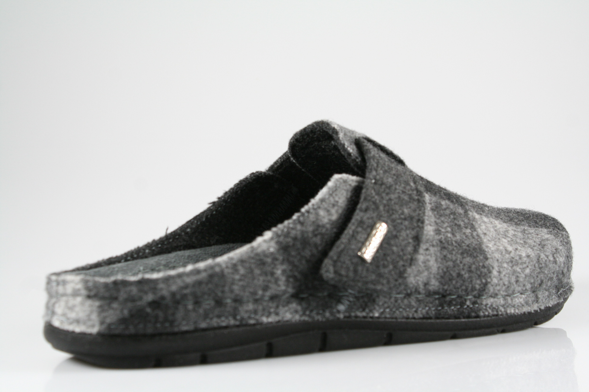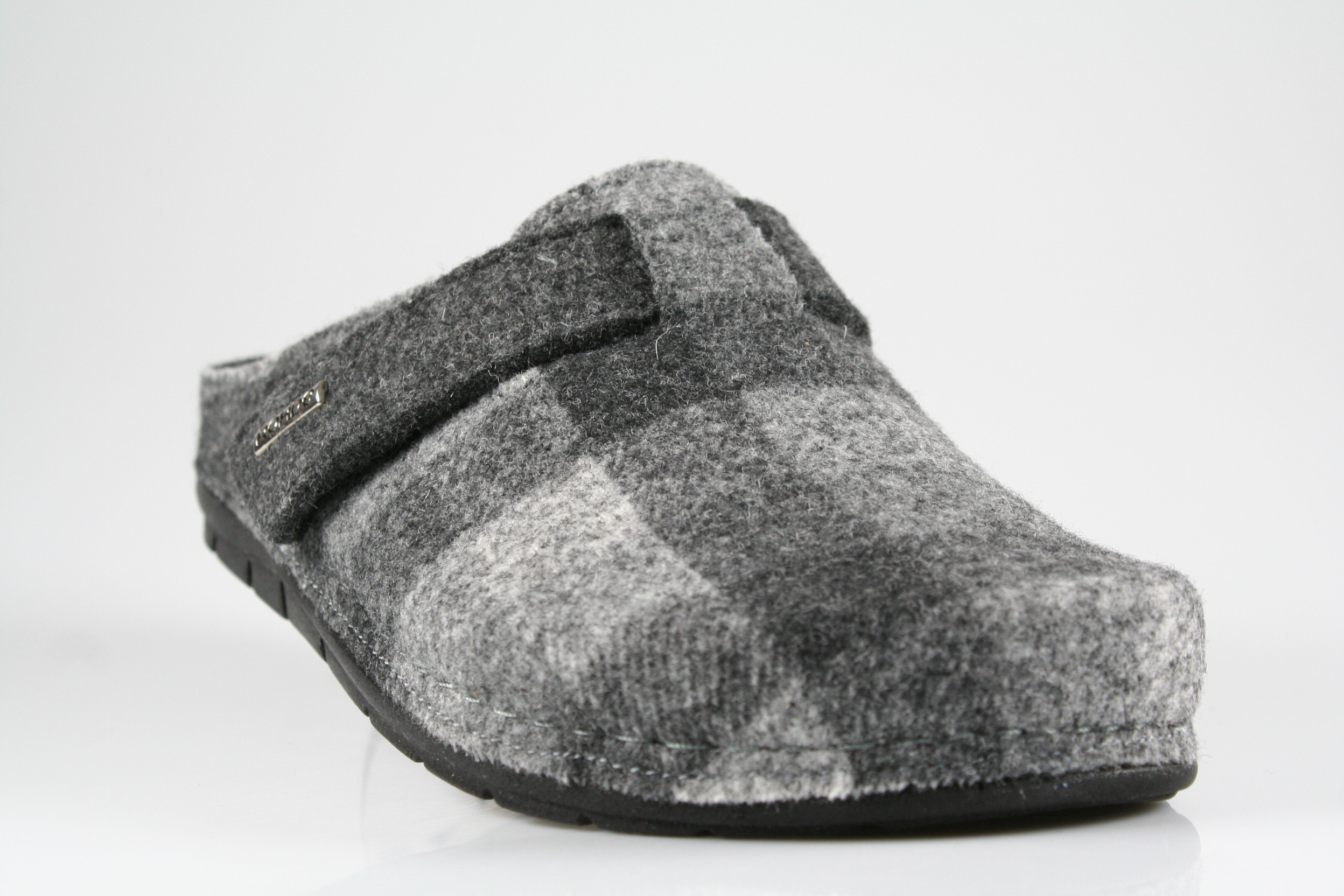 Typ: Hausschuh; Farbe "anthrazit"; Ausstattung:; - weiches Obermaterial; - weiches Fußbett; - leichte Laufsohle; - Riemchen zur Weitenregulierung