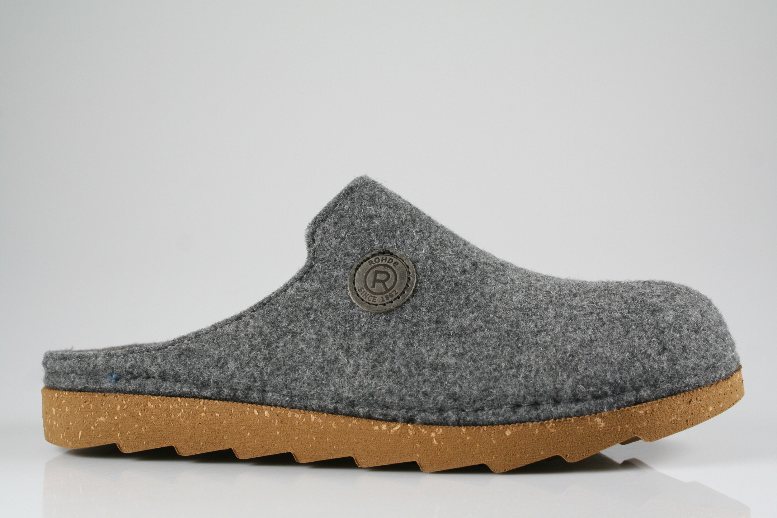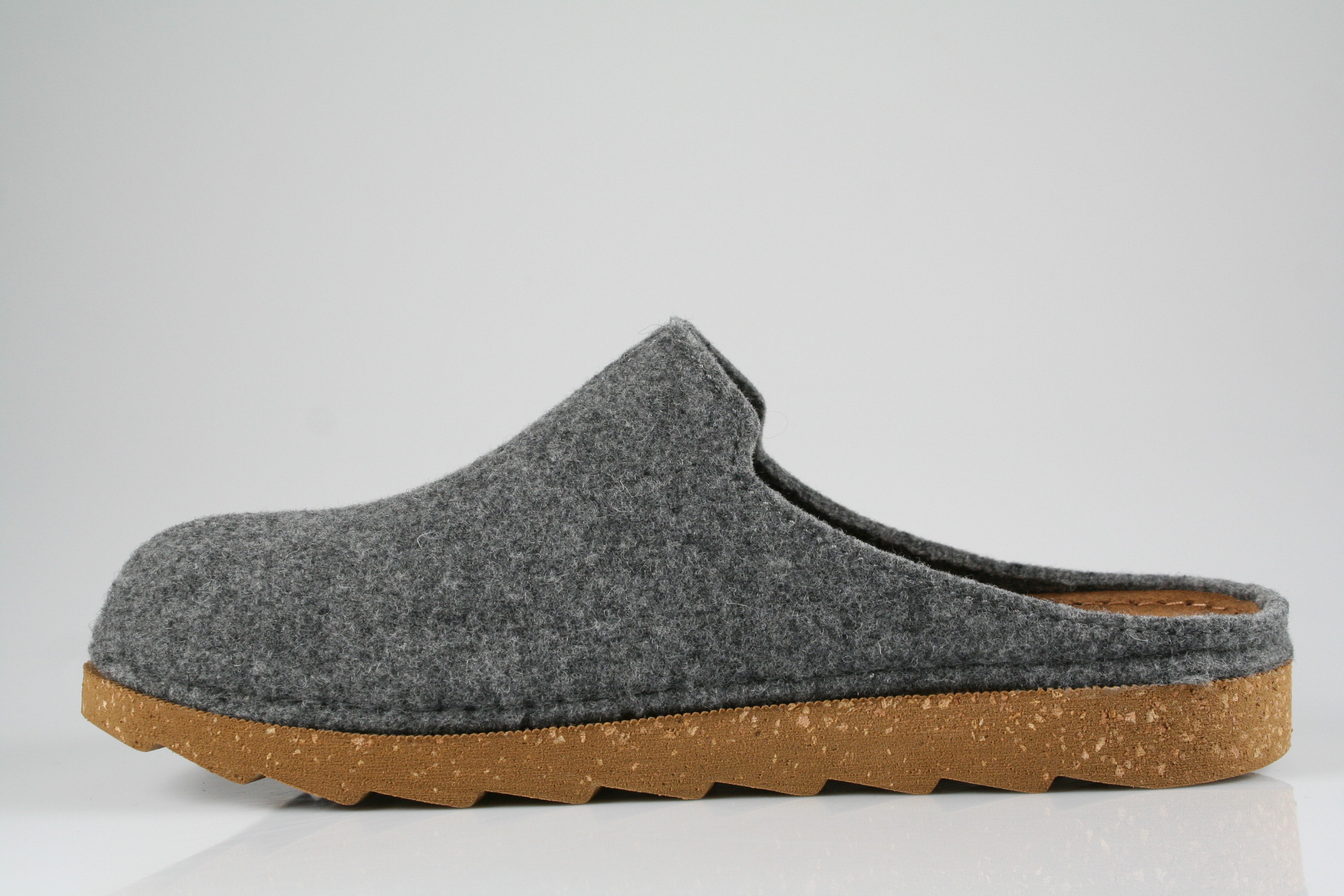 Typ: Hausschuh; Farbe "grau"; Ausstattung:; - Obermaterial: Filz; - weiches Fußbett; - leichte Laufsohle;