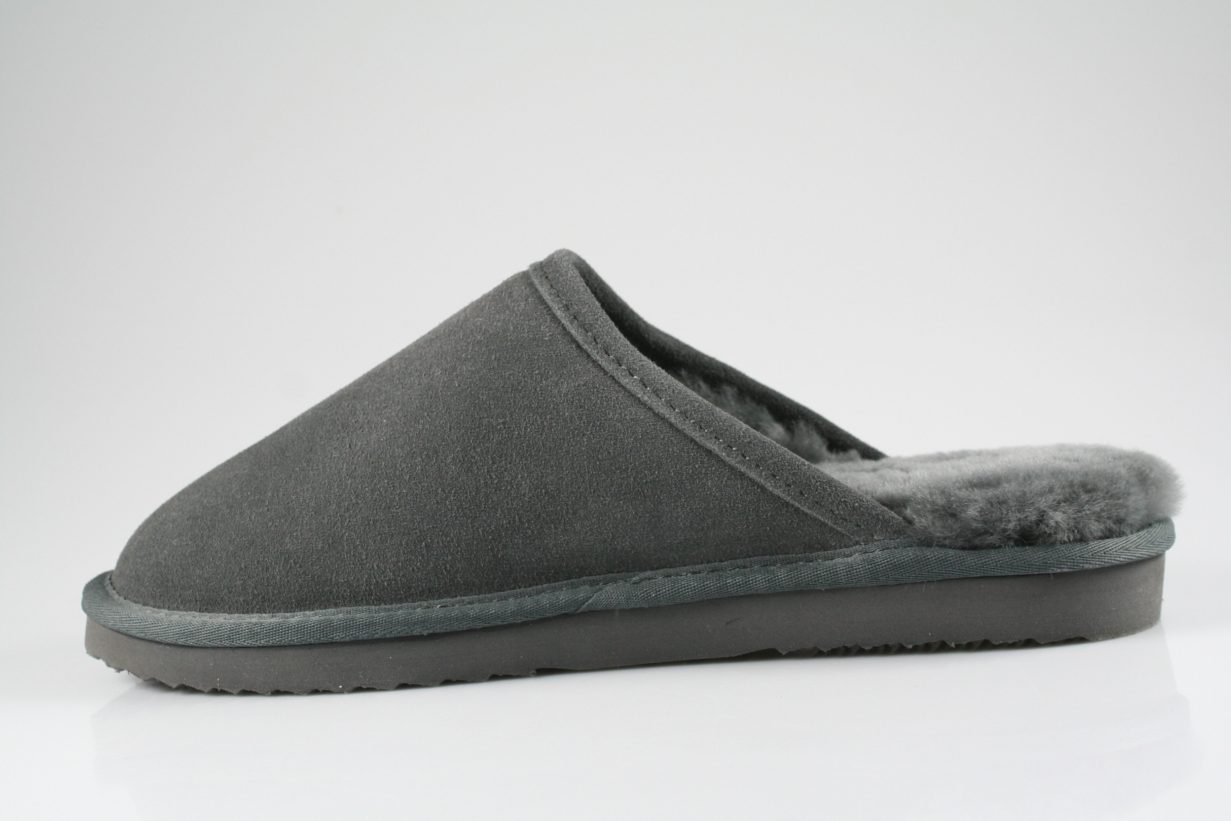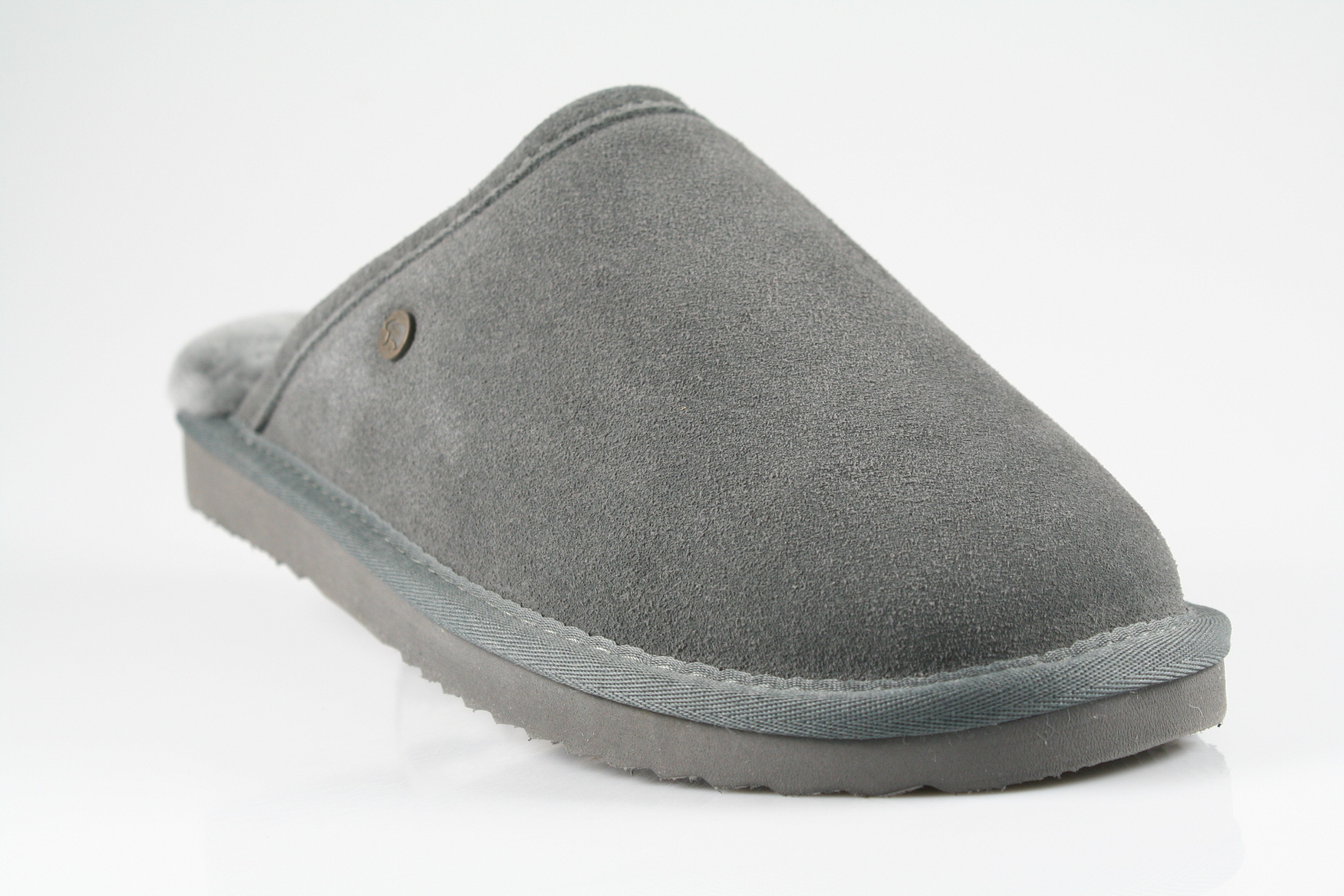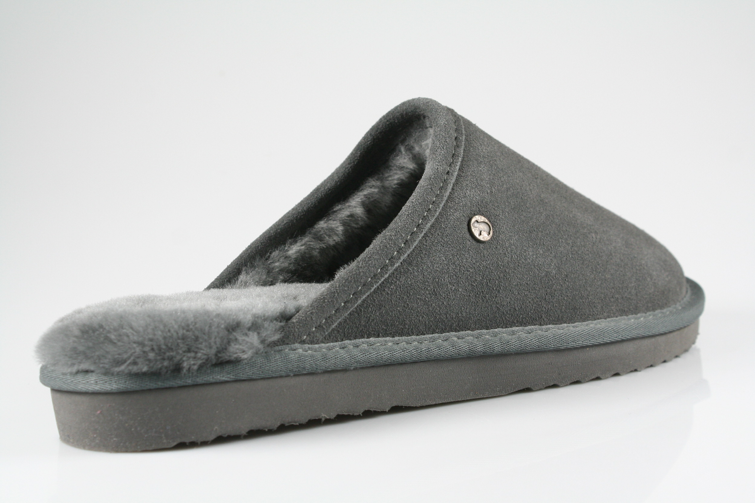Typ: Hausschuh; Farbe "dark grey"; Ausstattung:; - Obermaterial: Velourleder; - Warmfutter; - leichte Laufsohle