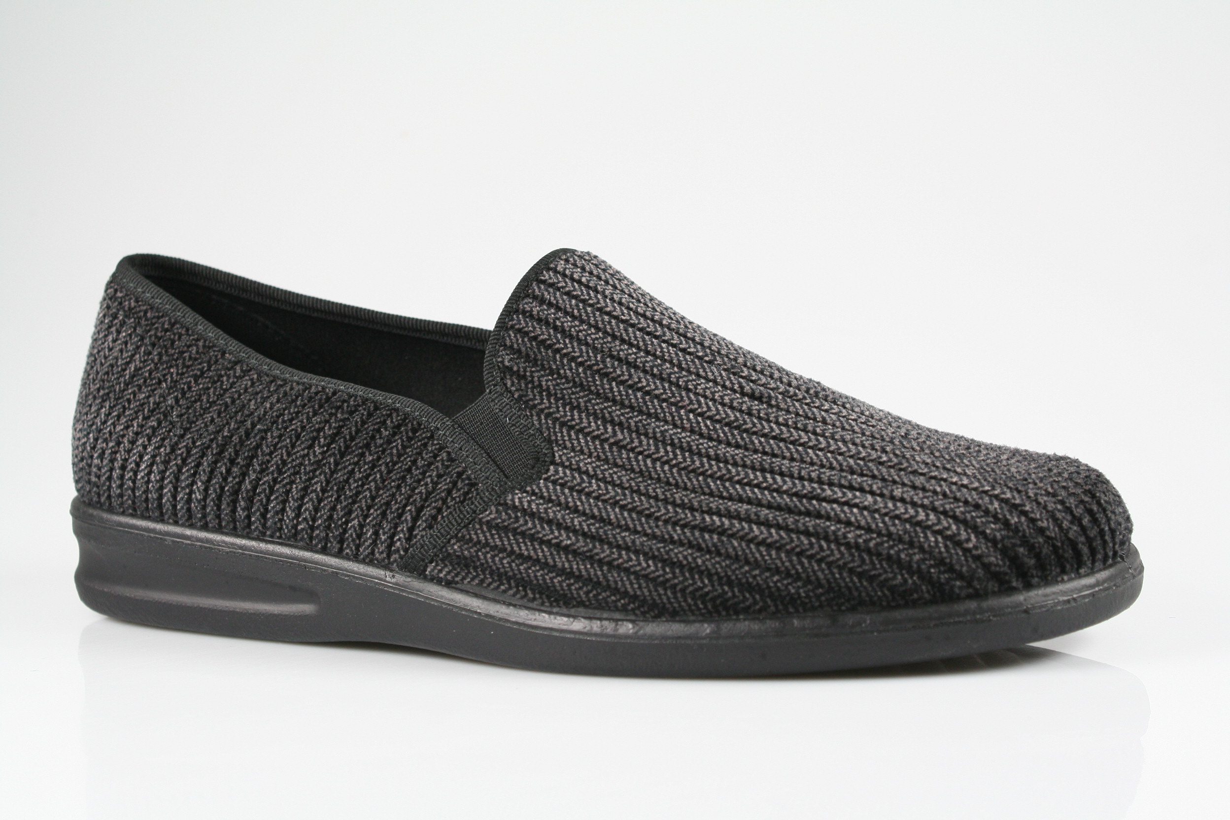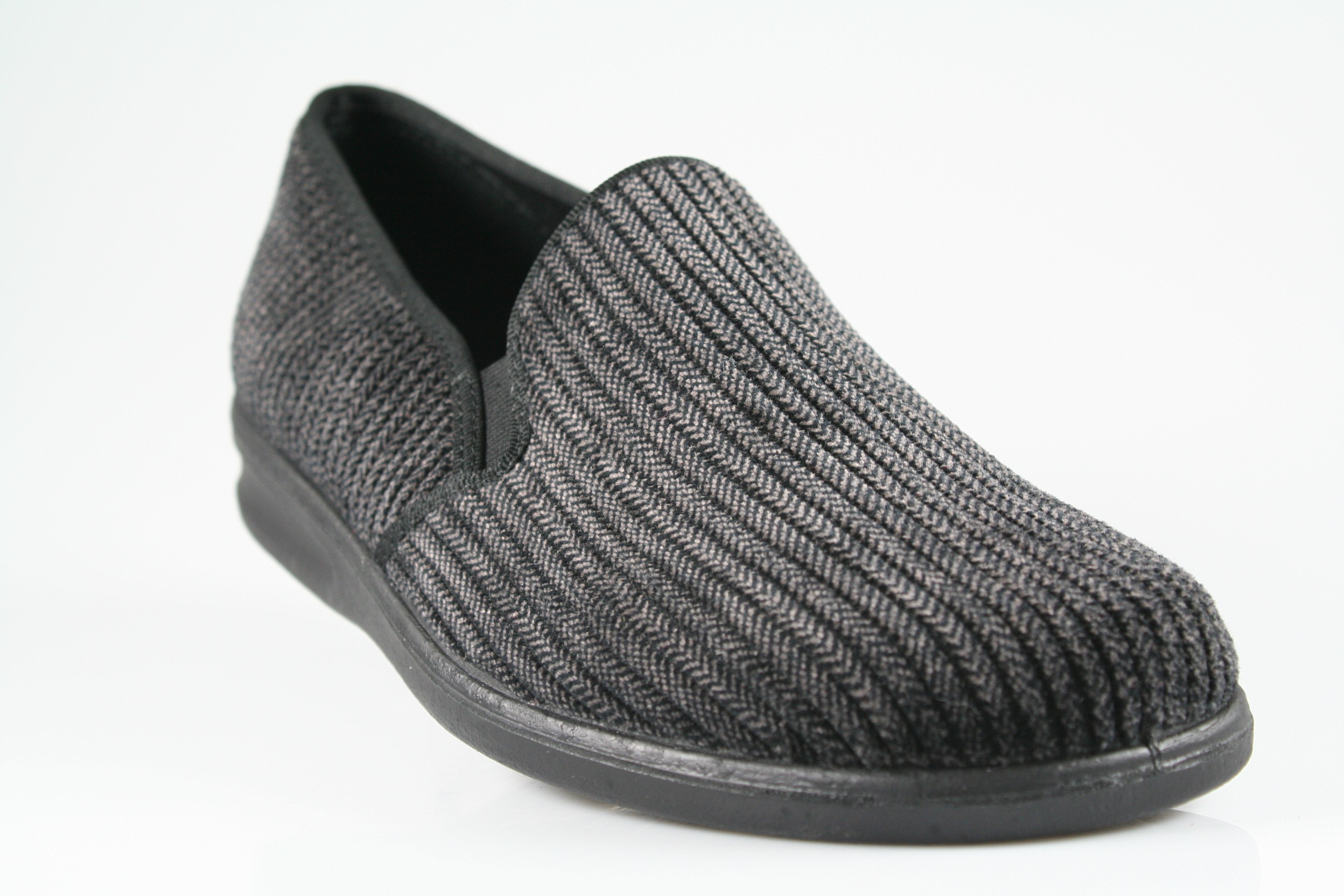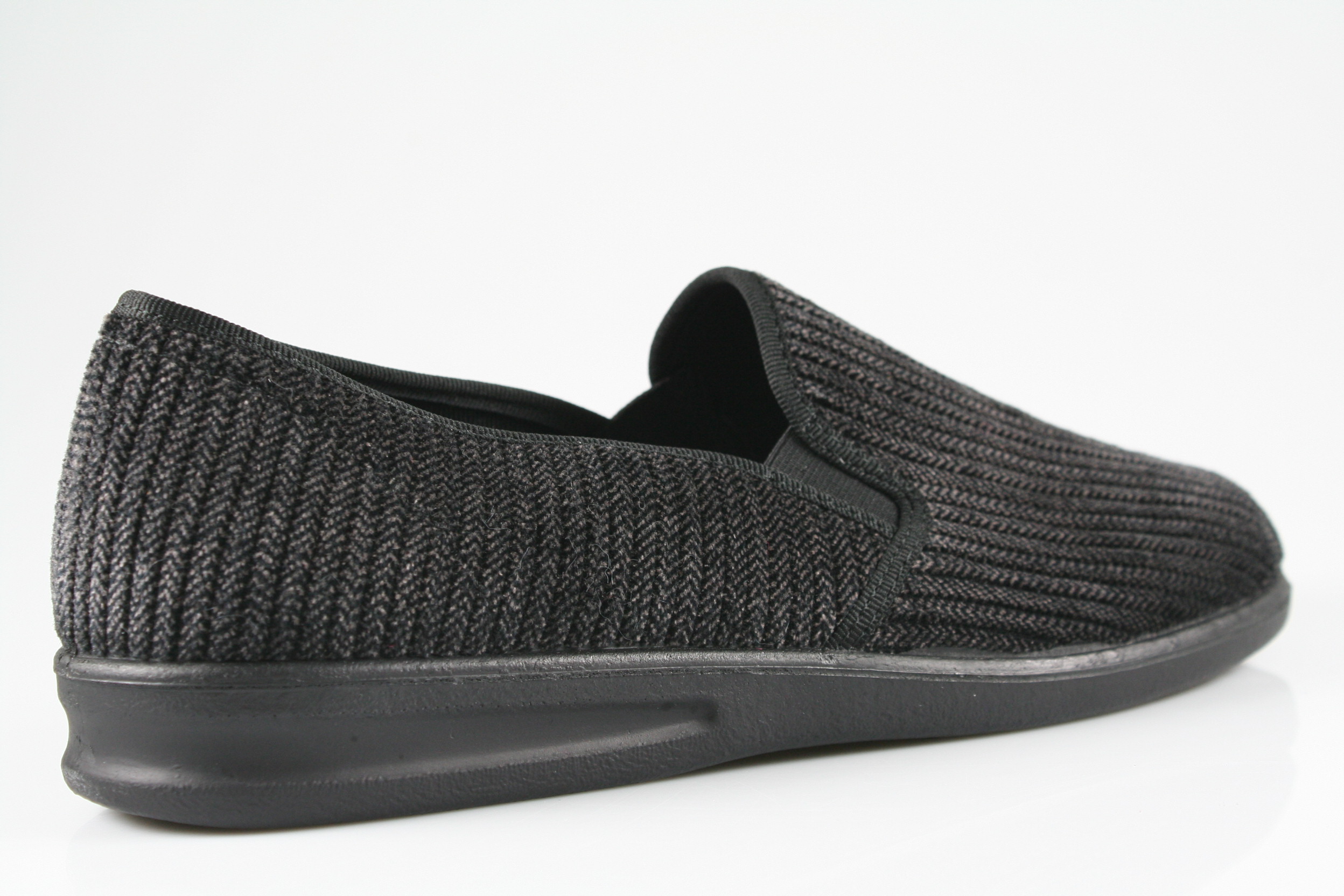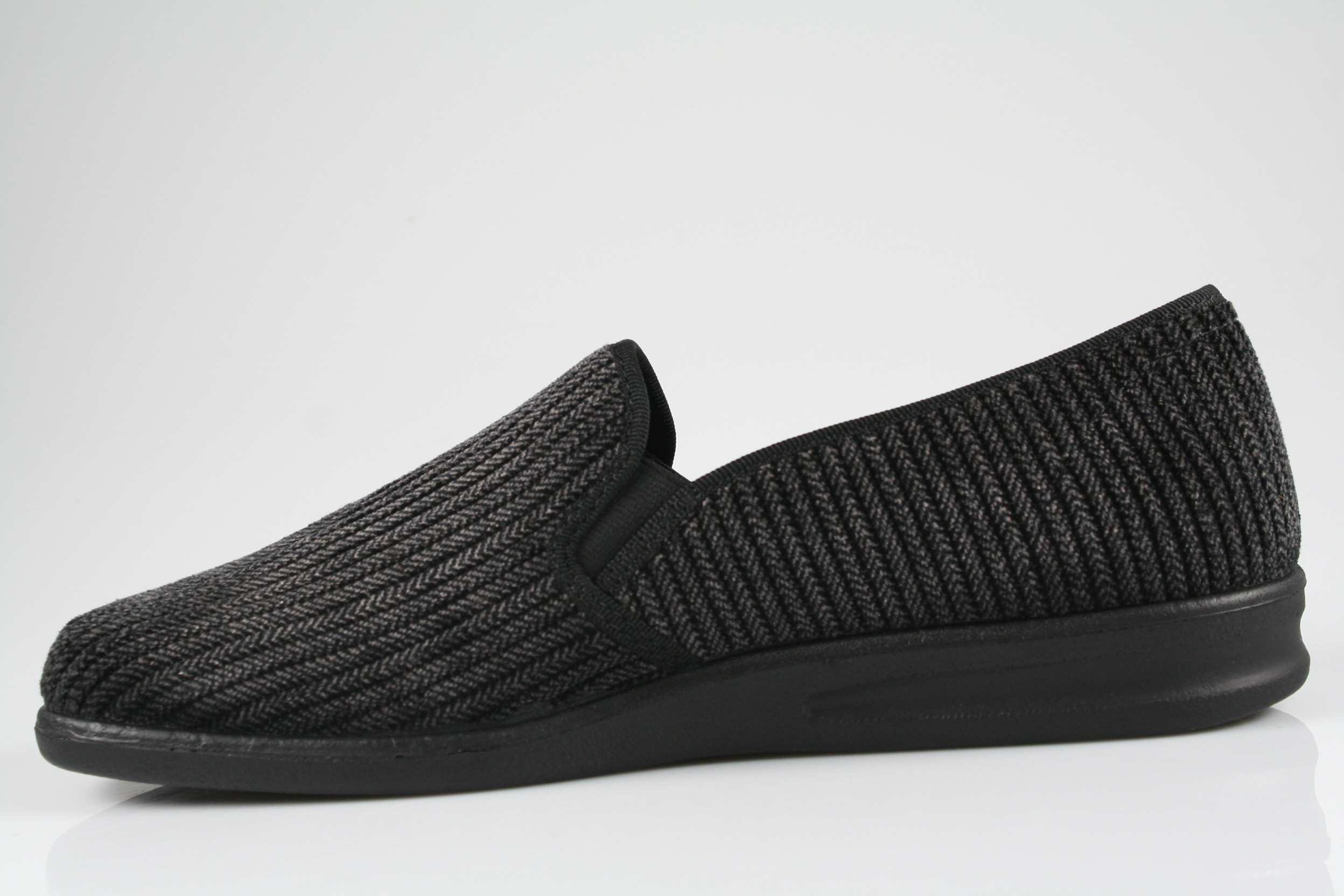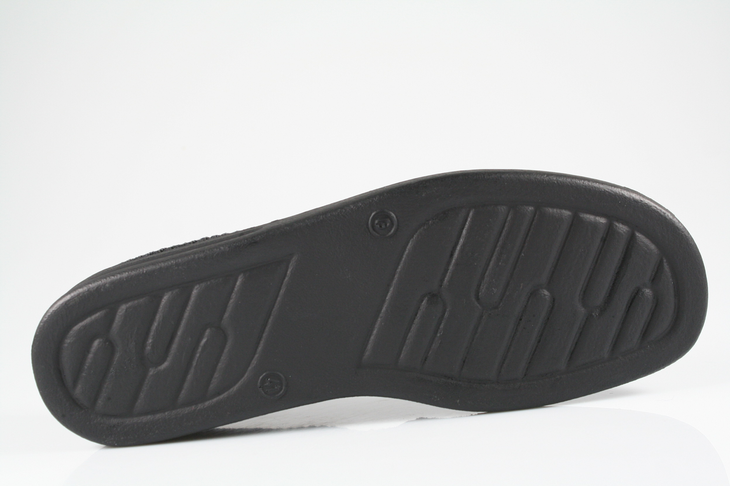 Typ: Hausschuh; Farbe: schwarz; Ausstattung:; - Obermaterial: Synthetik; - Kaltfutter; - flexible PU-Laufsohle; - dehnbarer Schaftrand