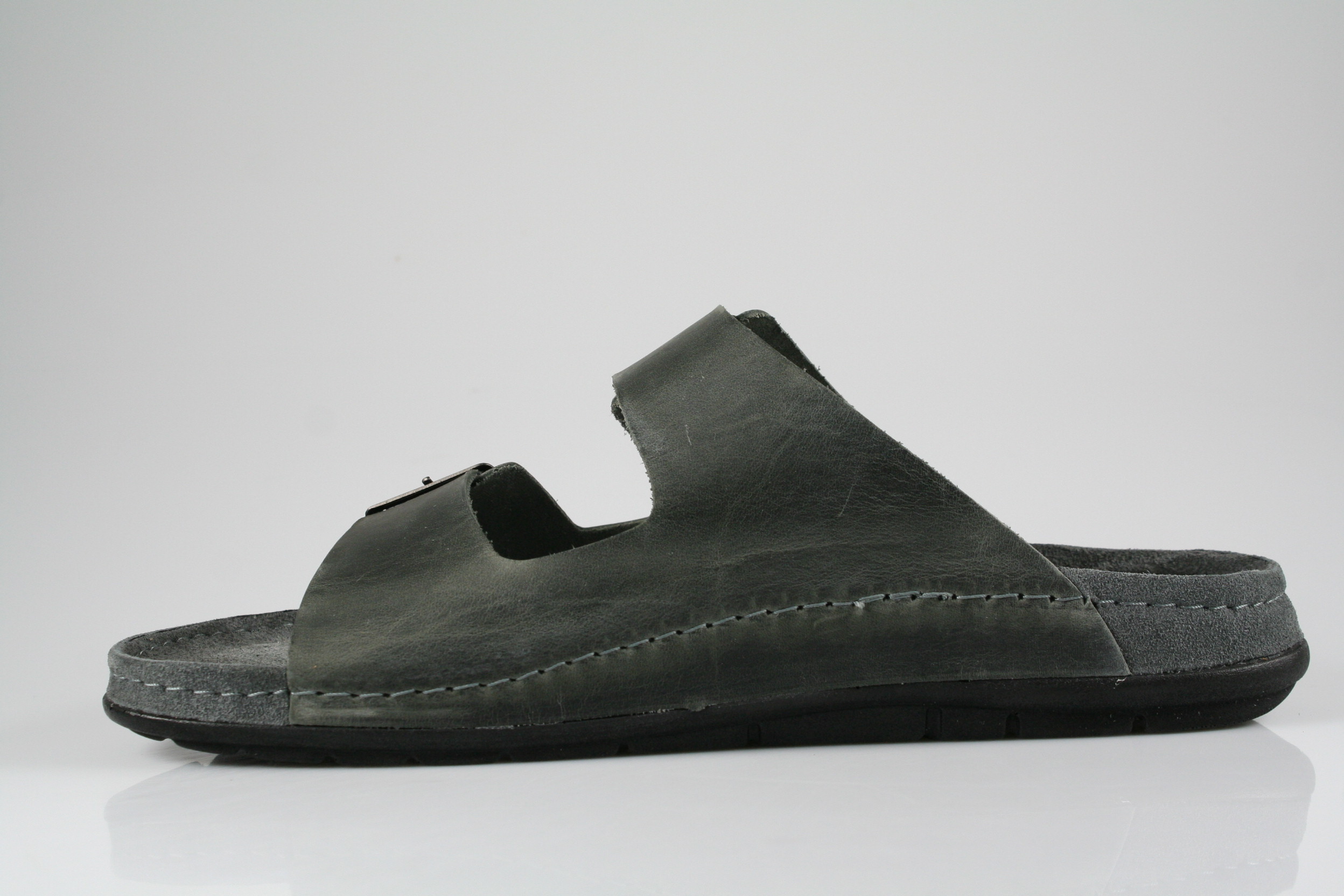 Typ: Pantolette; Farbe "anthrazit"; Ausstattung:; - Obermaterial: Brushleder ; - weiches Fußbett; - leichte Laufsohle; - Riemchen zur Weitenregulierung