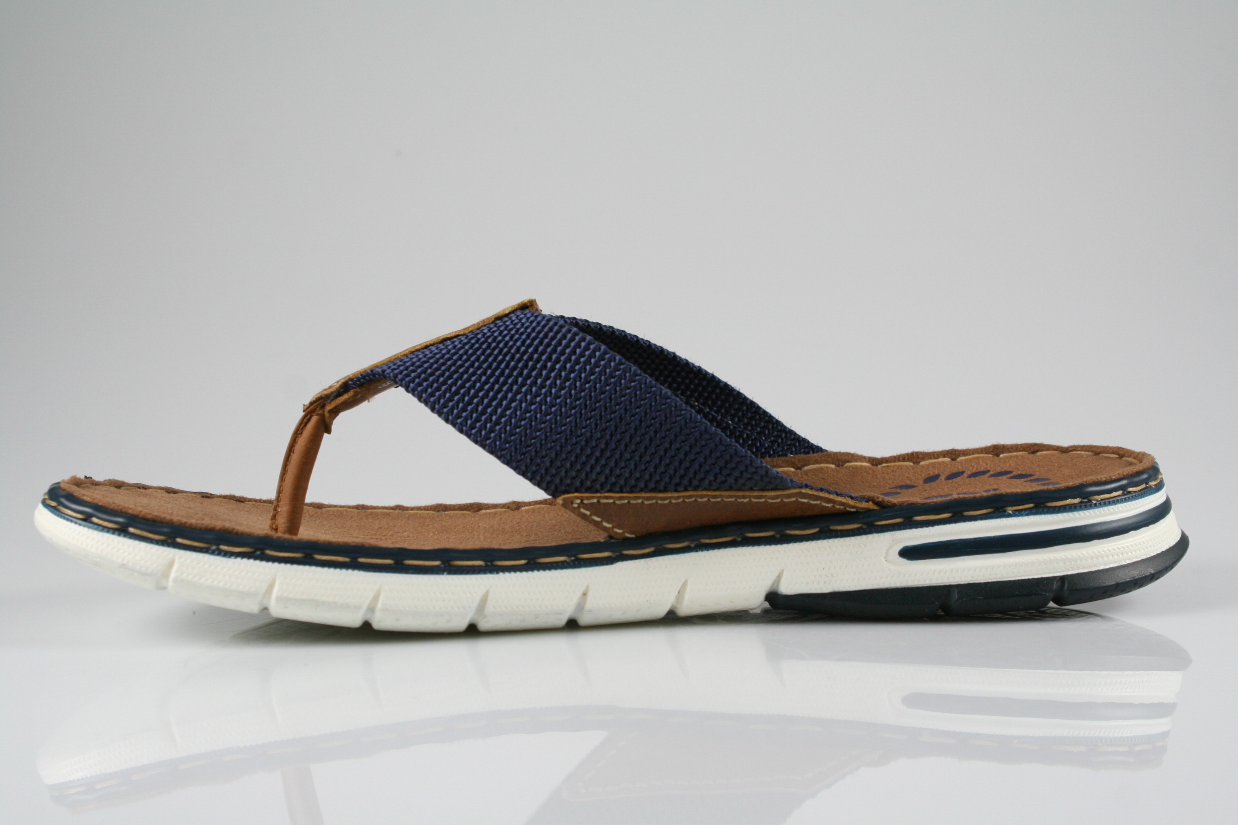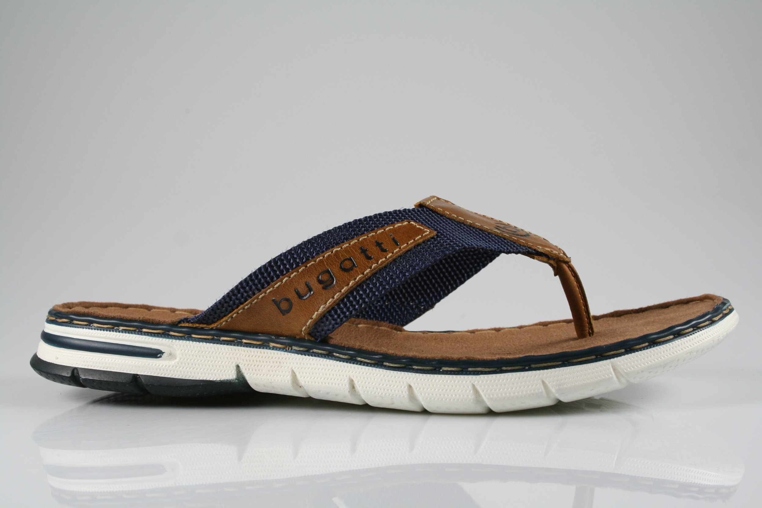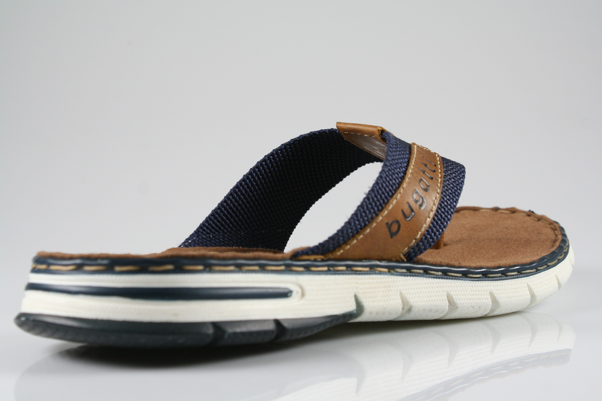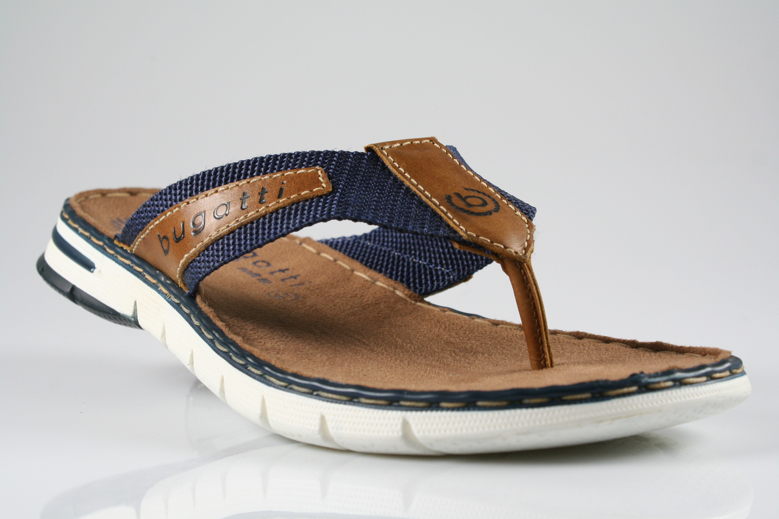 Typ: Pantolette; Farbe "dark blue/cognac"; Ausstattung:; - Obermaterial: Synthetik; - Lederfußbett; - flexible Laufsohle