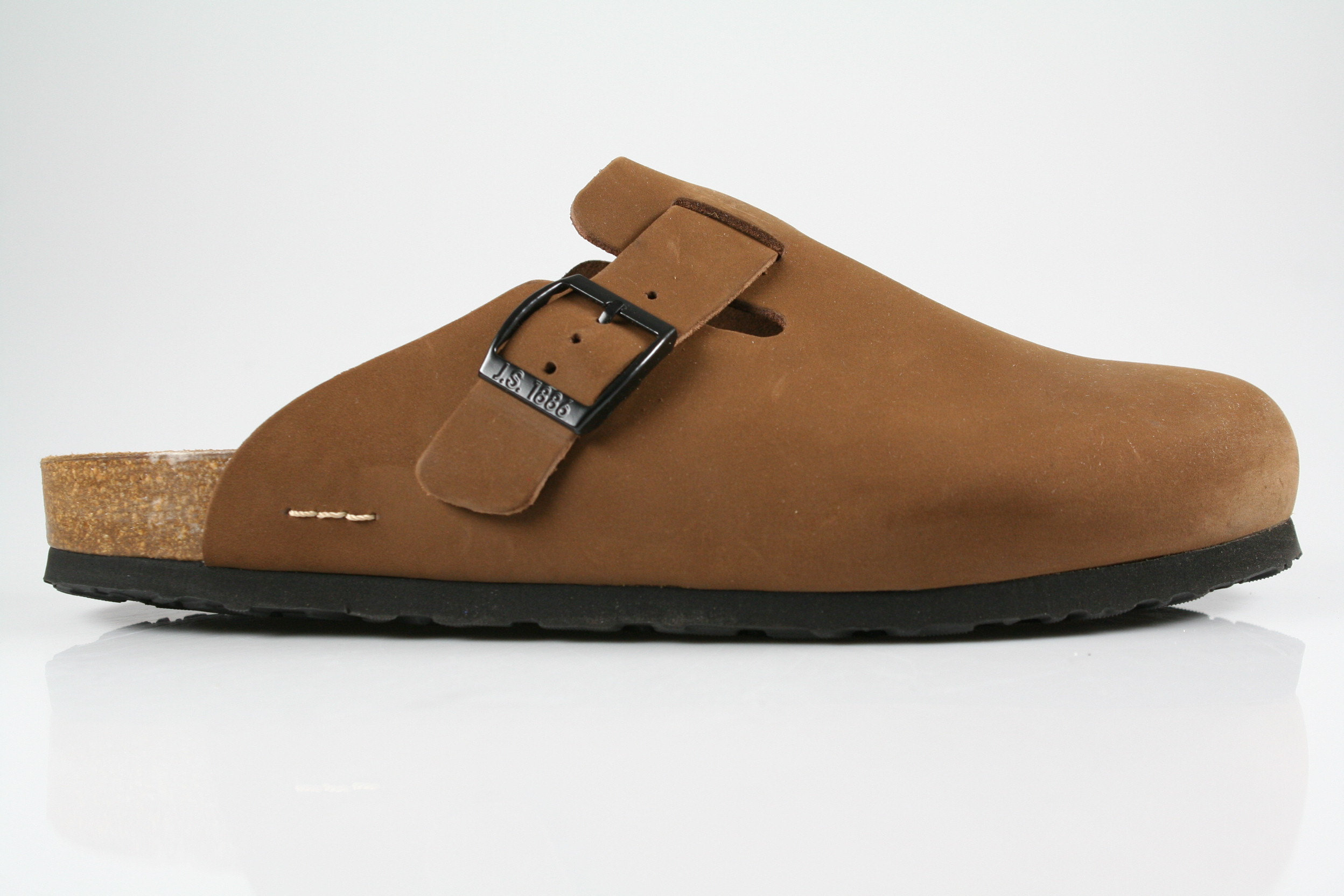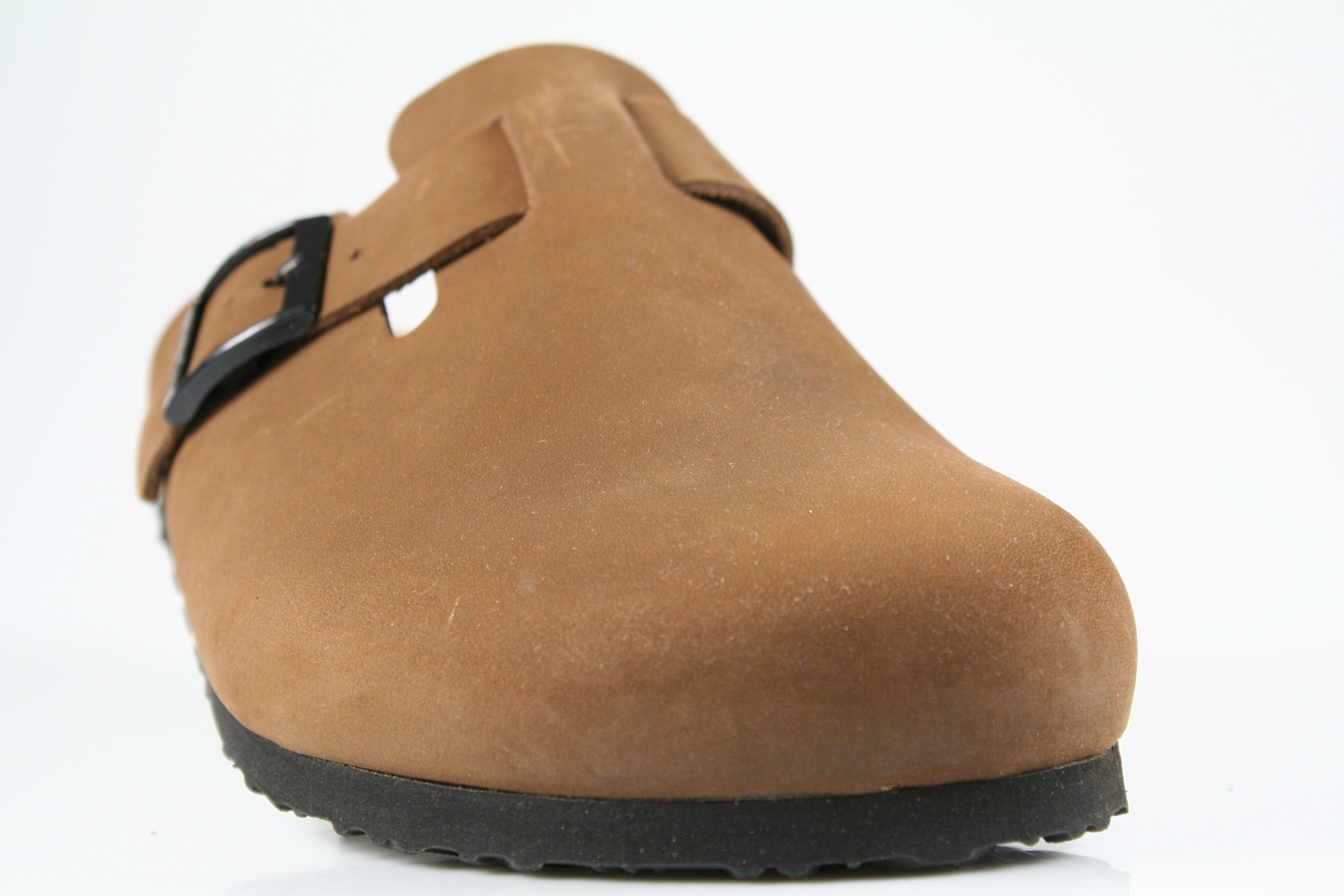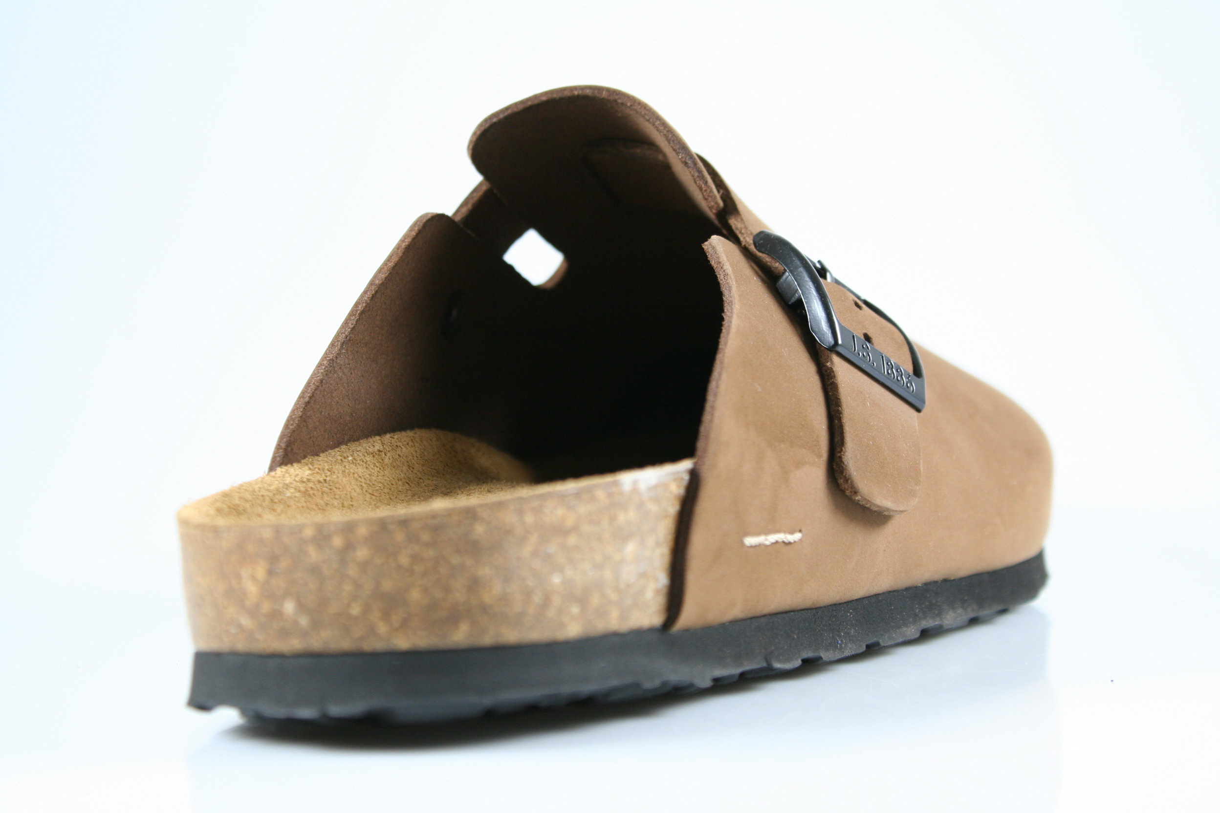 Typ: Pantolette; Farbe "braun"; Ausstattung:; - Obermaterial: Nubukleder; - weiches Fußbett; - leichte Laufsohle; - Riemchen zur Weitenregulierung
