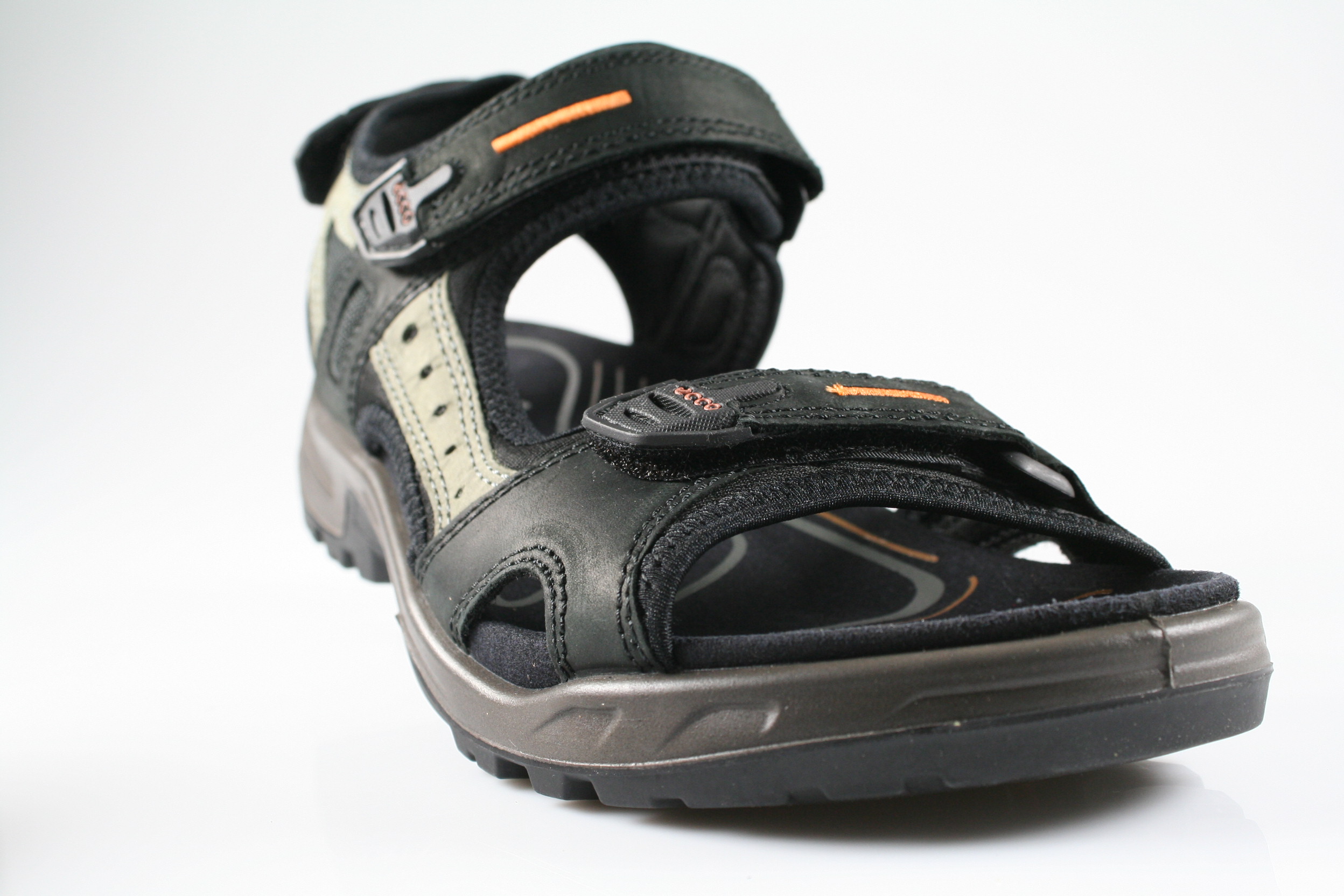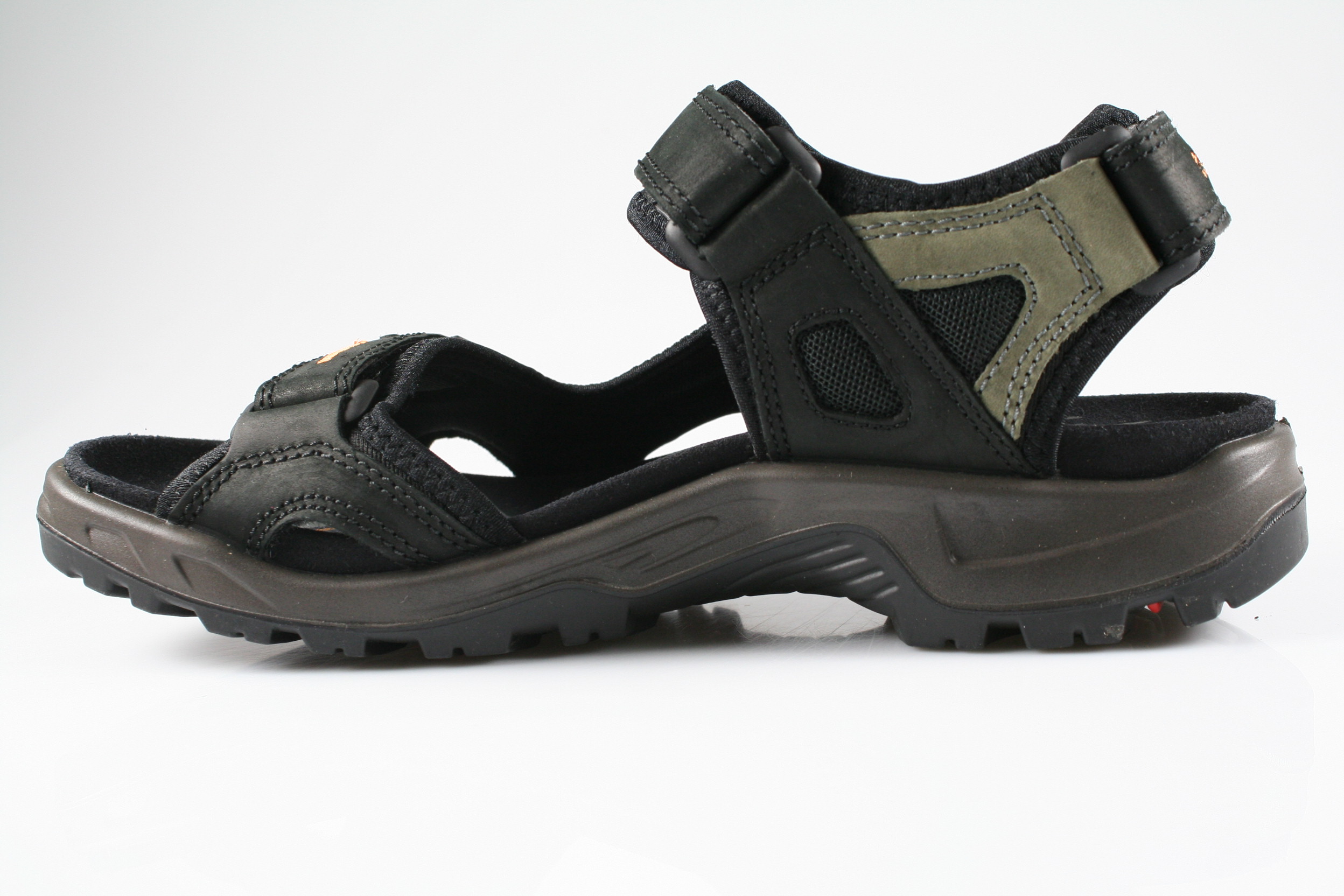 Typ: Sandale; Farbe "black/mole"; Ausstattung:; - Obermaterial: Leder; - atmungsaktives Futter; - weiches Fußbett; - leichte Laufsohle; - gepolsterter Schaftrand; - drei Klettverschlüsse zur Weitenregulierung