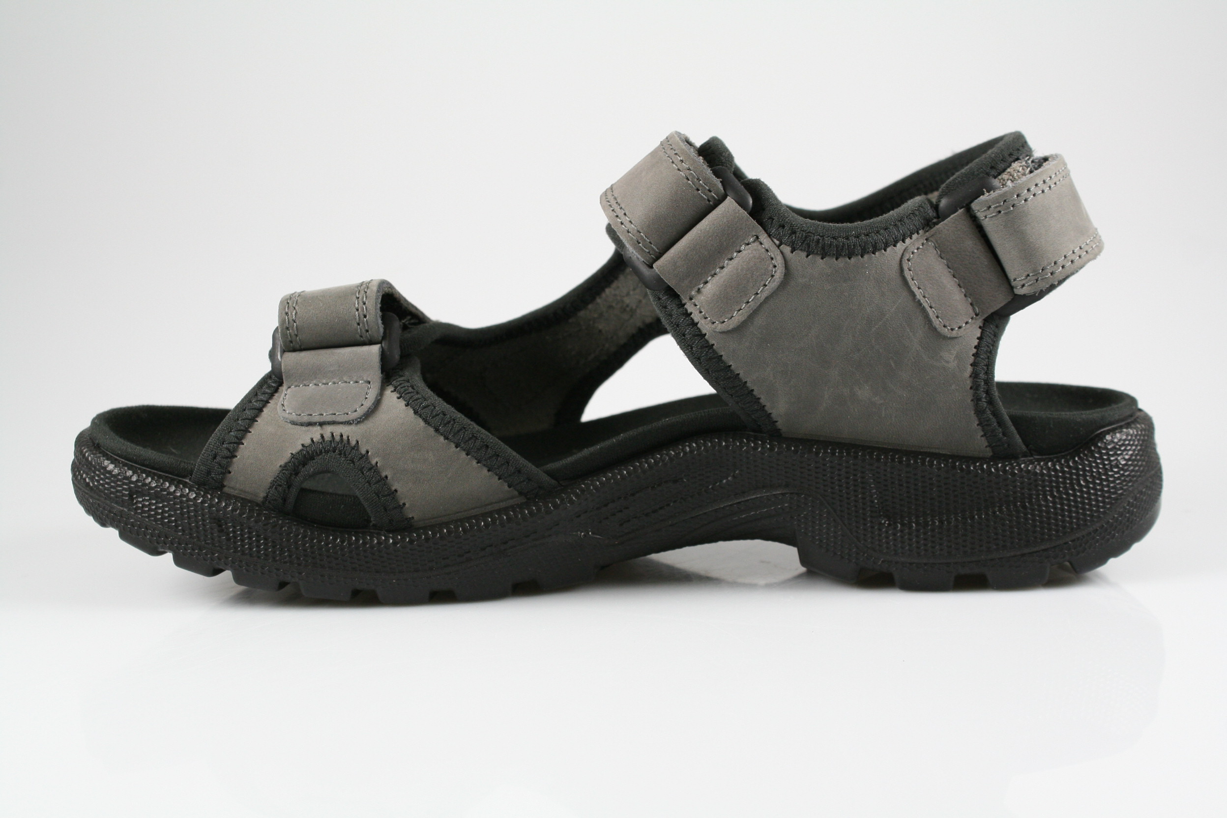 Typ: Sandale; Farbe "steel"; Ausstattung:; - Obermaterial: Nubukleder; - weiche Decksohle; - flexible Laufsohle; - gepolsterter Schaftrand; - Klettverschluss zur Weitenregulierung