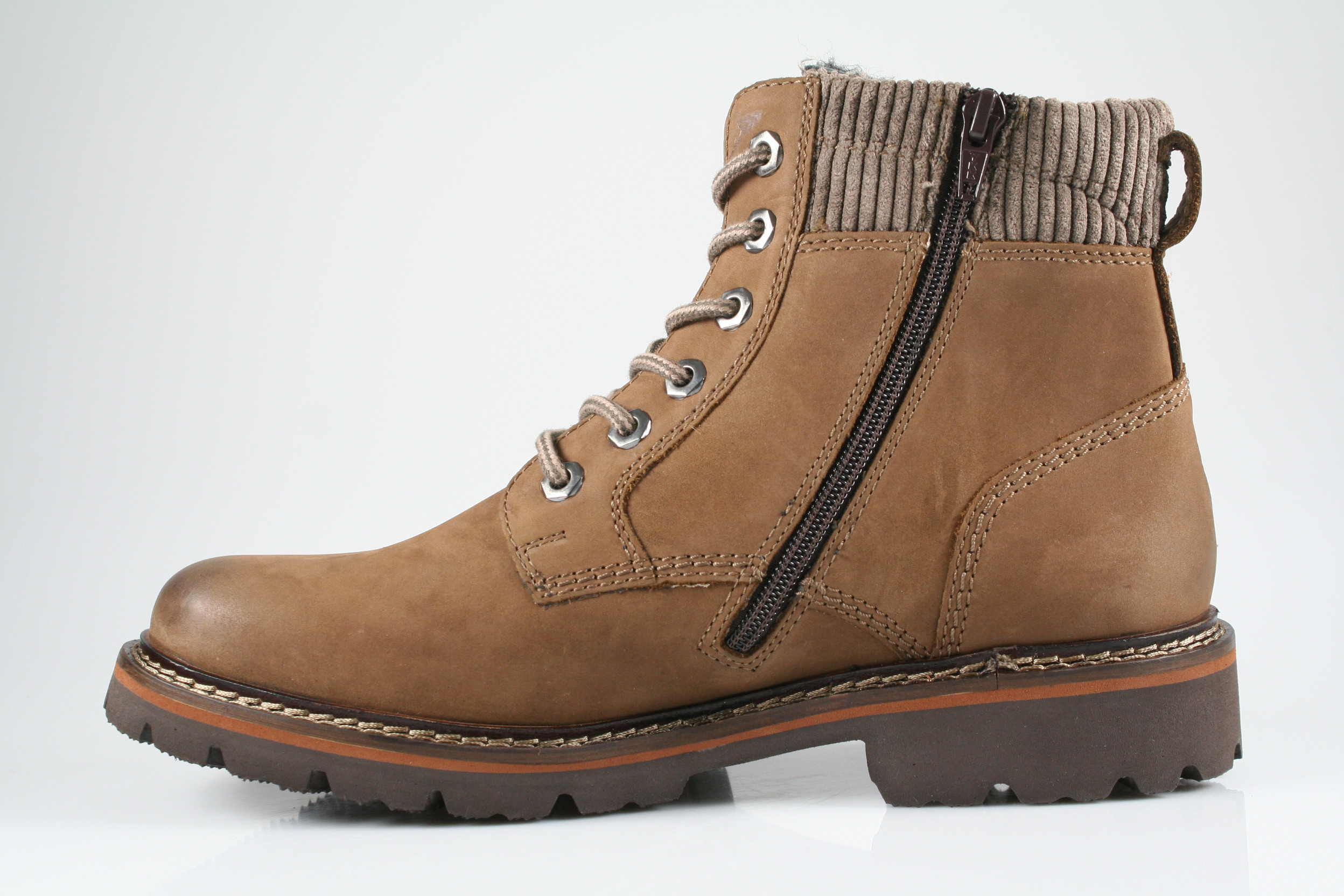 Typ: Boots; Farbe: "otter"; Ausstattung:; - Obermaterial: gewachstes Nubukleder/Cord; - wasserfest durch Tex-Membrane; - Warmfutter; - herausnehmbares Fußbett; - robuste Profilsohle; - gepolsterter Schaftrand; - Reißverschluss und Schnürsenkel