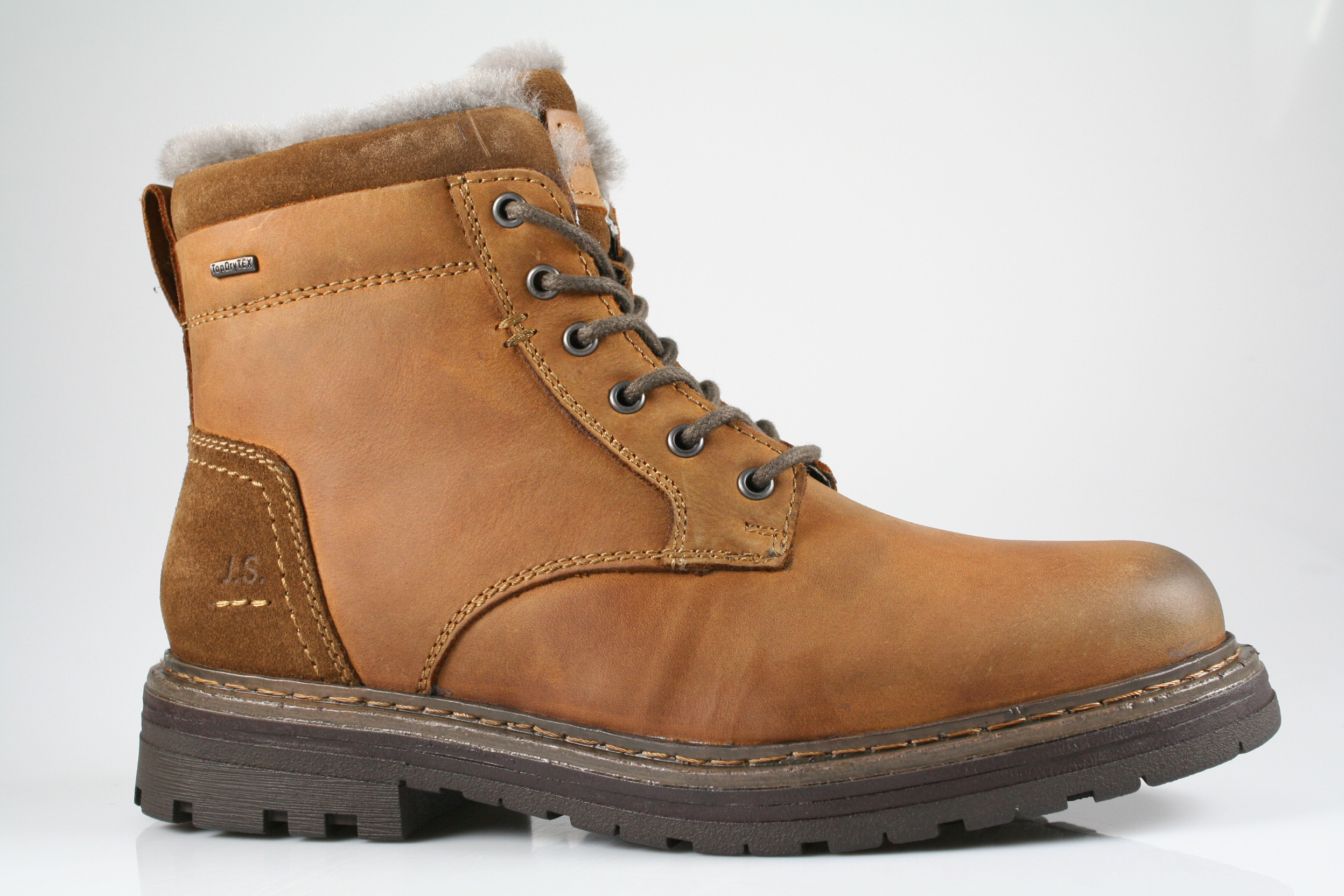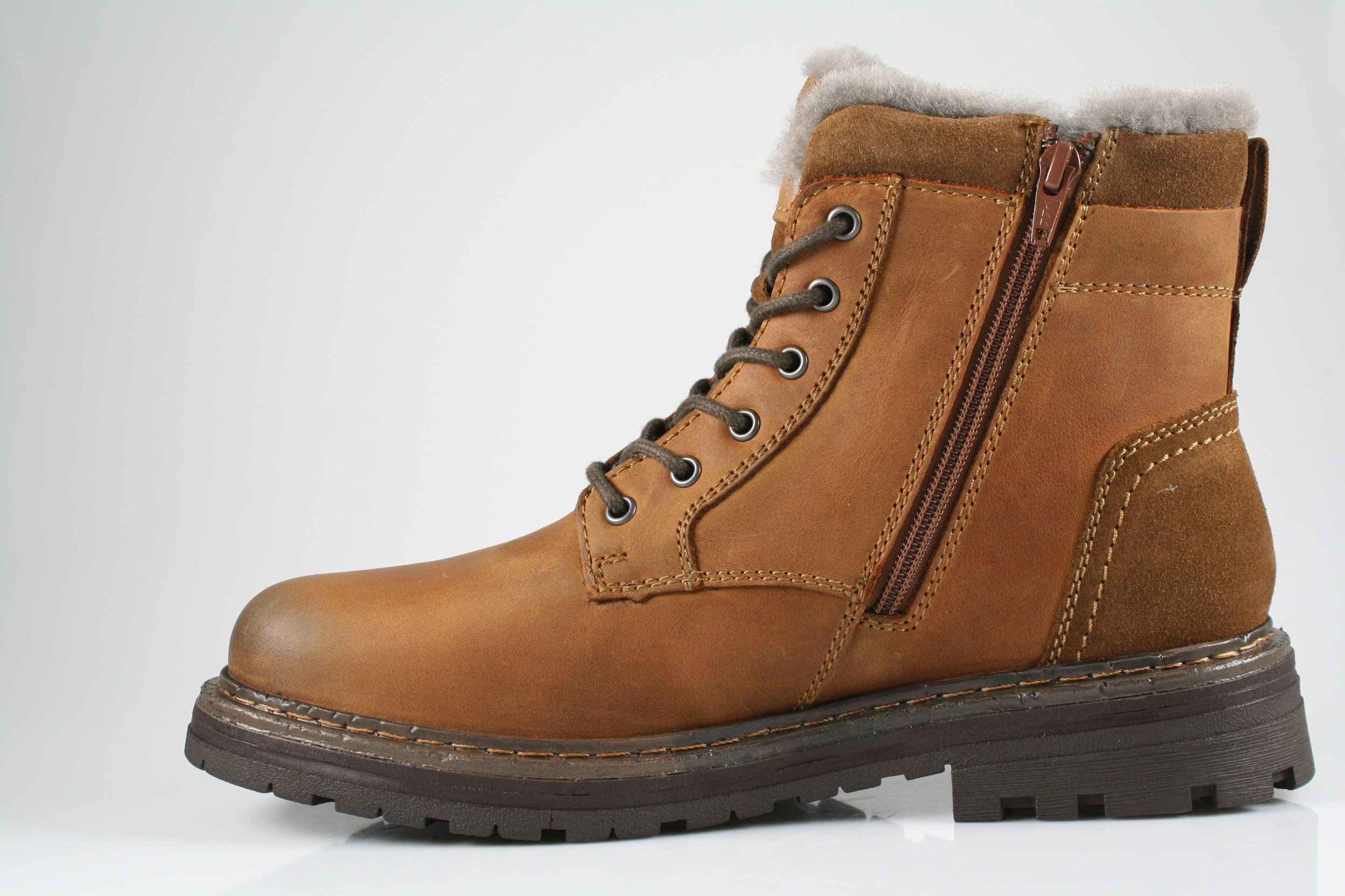 Typ: Boots; Farbe: "castagne"; Ausstattung:; - Obermaterial: Fettleder; - Lammfellfutter; - herausnehmbares Fußbett ; - leichte Laufsohle; - gepolsterter Schaftrand; - wasserfeste Membrane