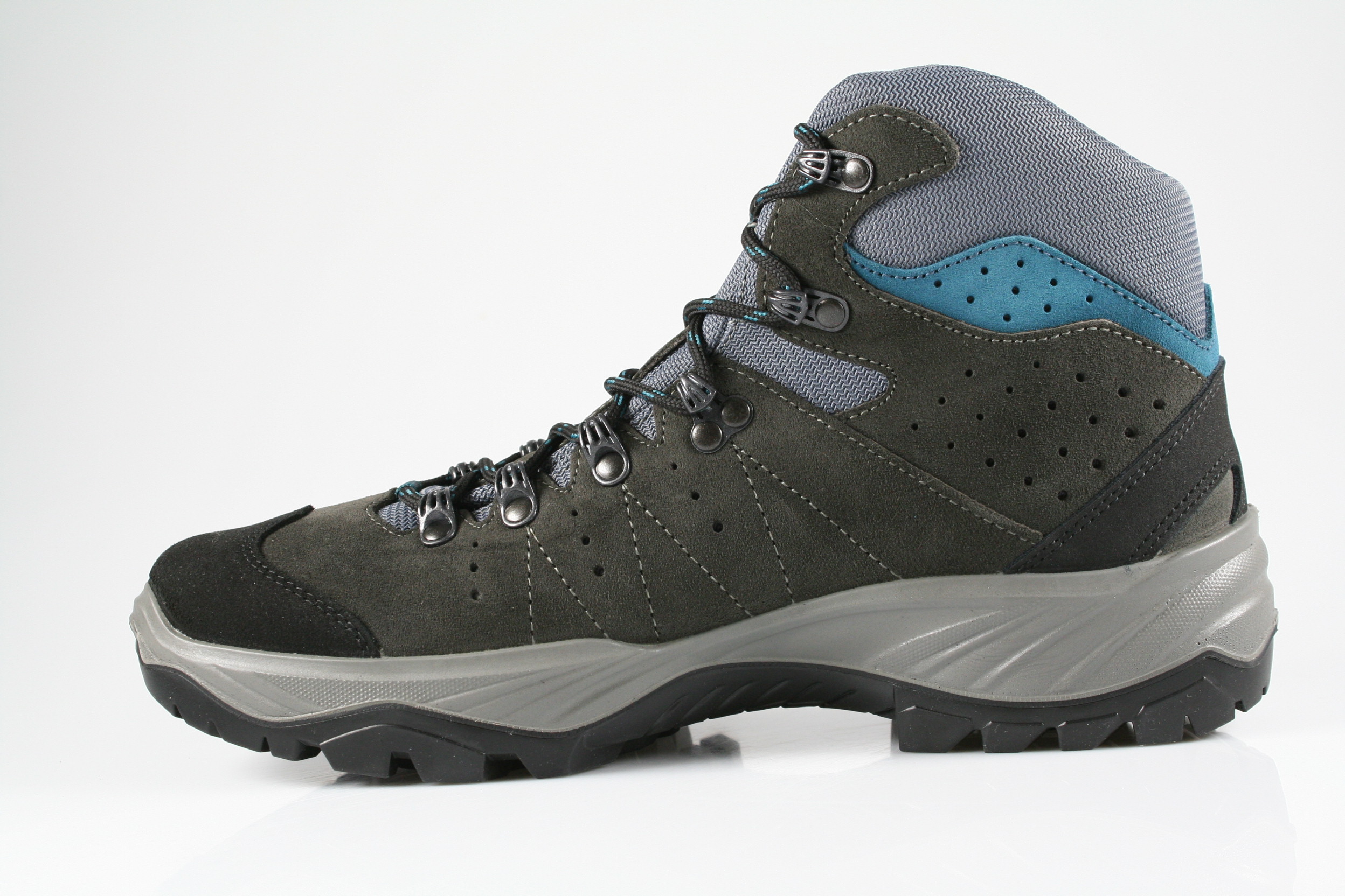 Typ: Boots; Farbe "smoke/lake blue"; Ausstattung:; - Obermaterial: Leder; - herausnehmbares Fußbett; - robuste Laufsohle; - gepolsterter Schaftrand; - Schnürsenkel zur Weitenregulierung; - wasserfest durch "GoreTex"-Membrane