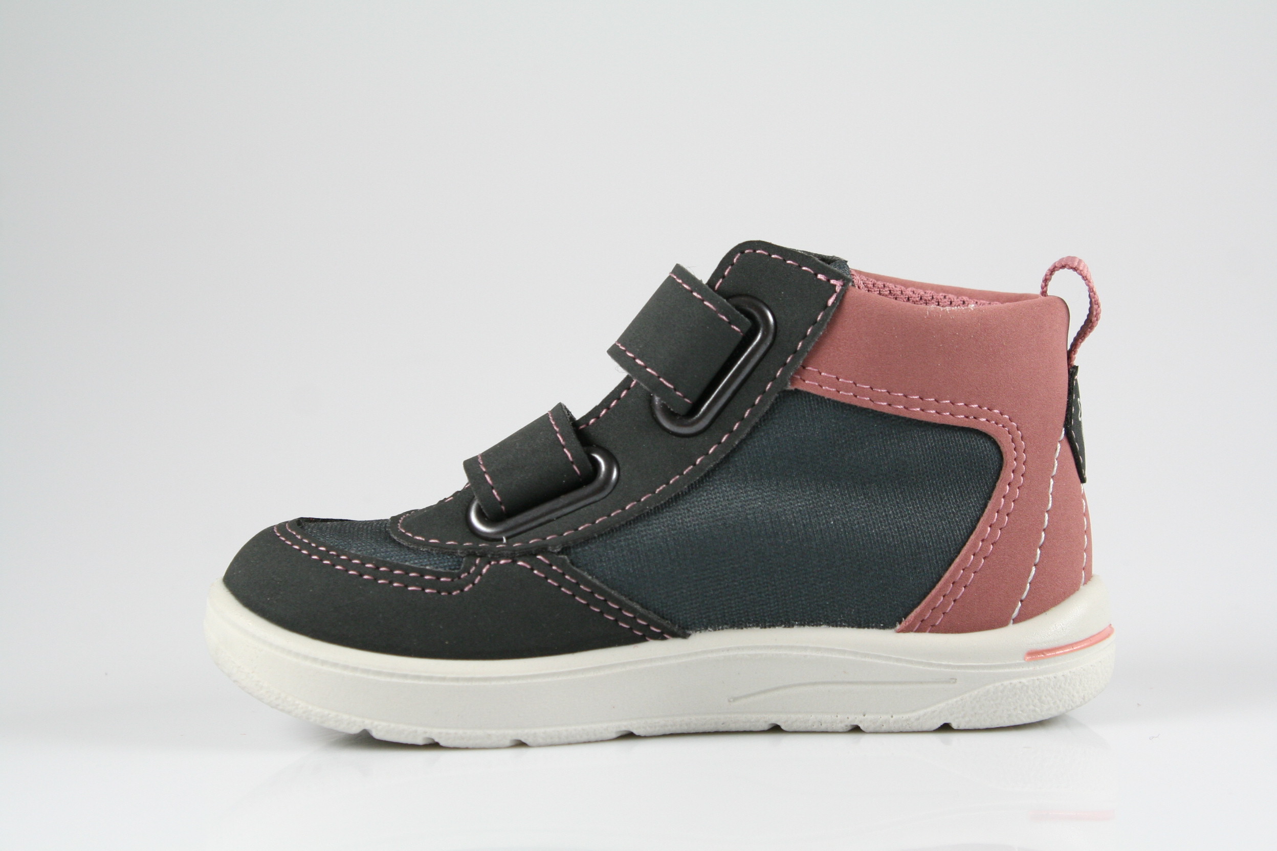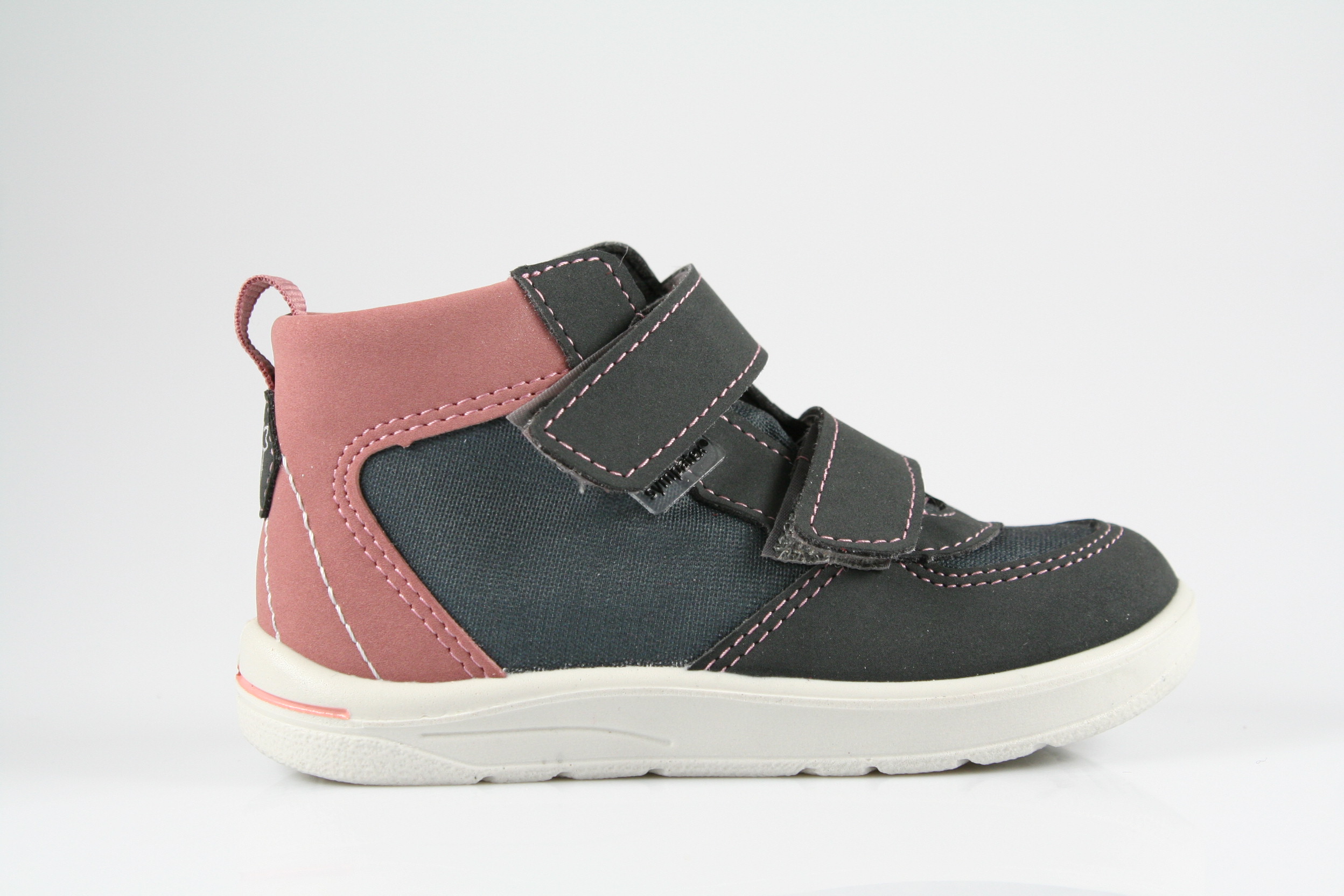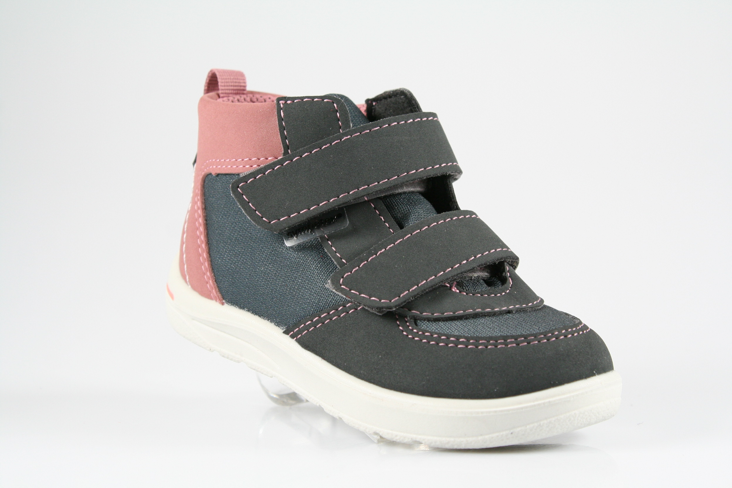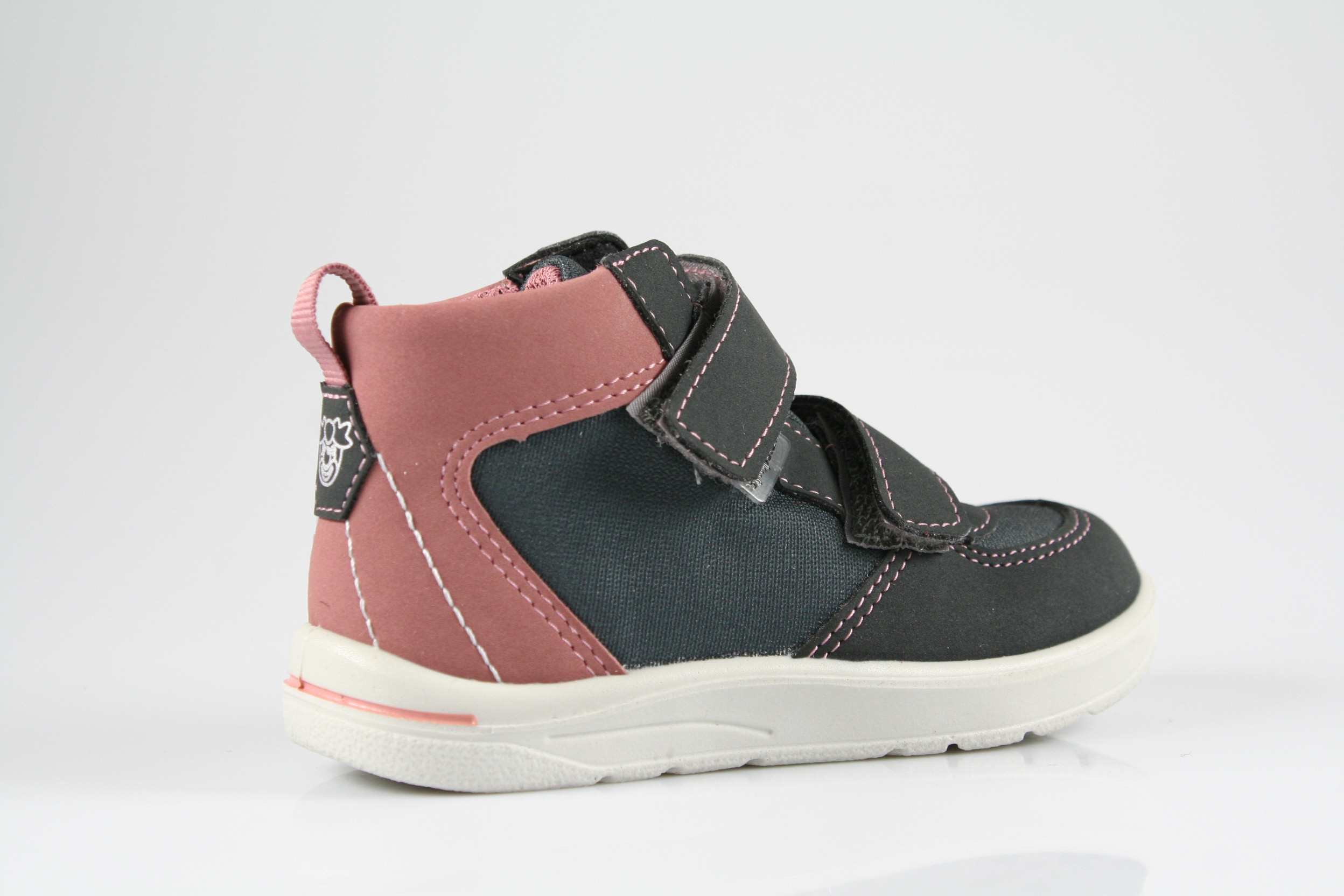 Typ: Erste-Schritte-Schuh; Farbe "grigio/carbon/rosa"; Ausstattung:; - Obermaterial: HighTech; - herausnehmbares Fußbett mit Größenkontrolle; - leichte Laufsohle; - gepolsterter Schaftrand; - Klettverschluss zur Weitenregulierung; - wasserfest durch "SympaTex"-Membrane; - Modell "Rory"; - Weite "mittel"