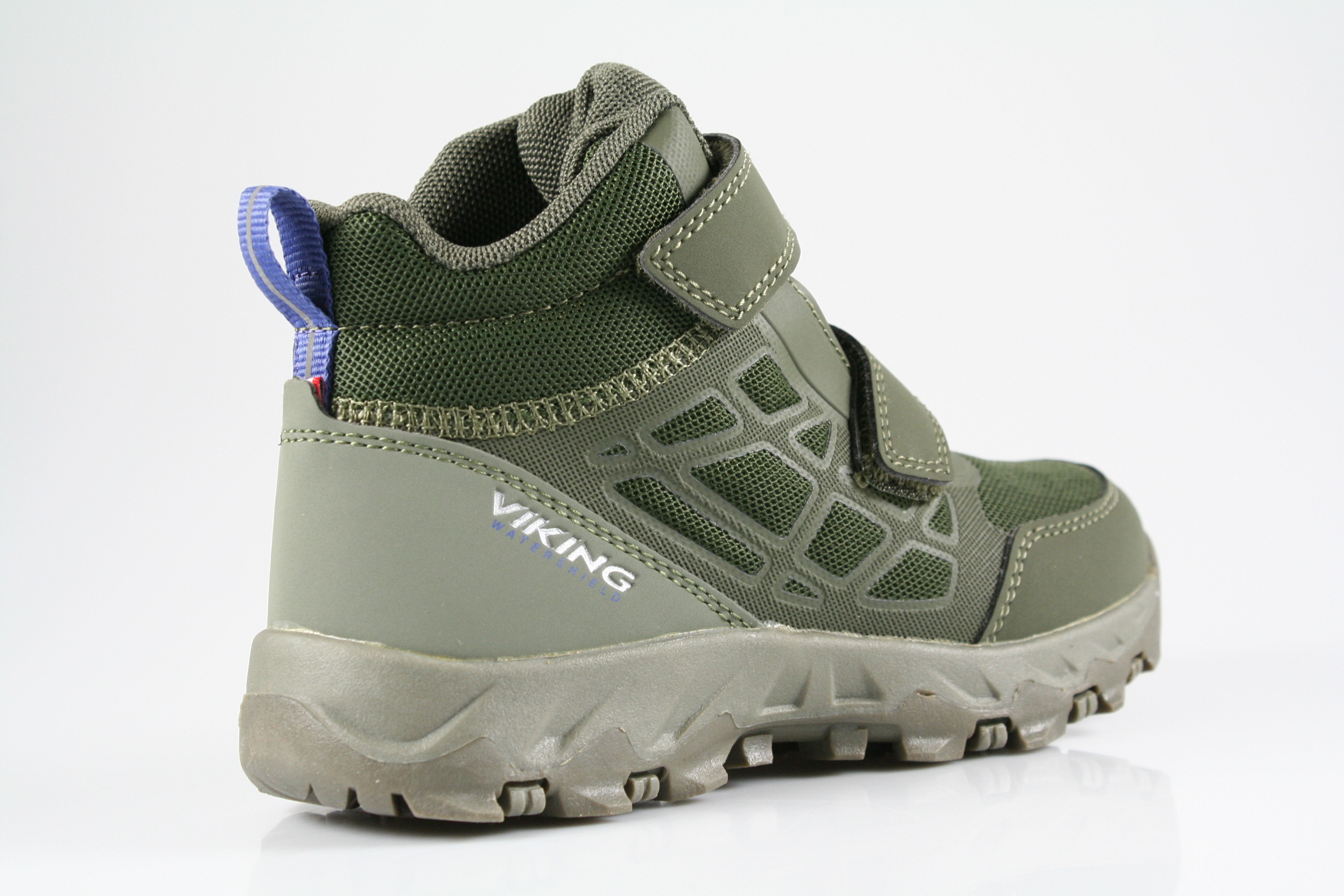 Typ: Boots; Farbe "olive"; Ausstattung:; - Obermaterial: Synthetik, Mesh; - herausnehmbares Fußbett; - leichte Laufsohle; - gepolsterter Schaftrand; - Klettverschluss zur Weitenregulierung; - "Viking-Watershield"