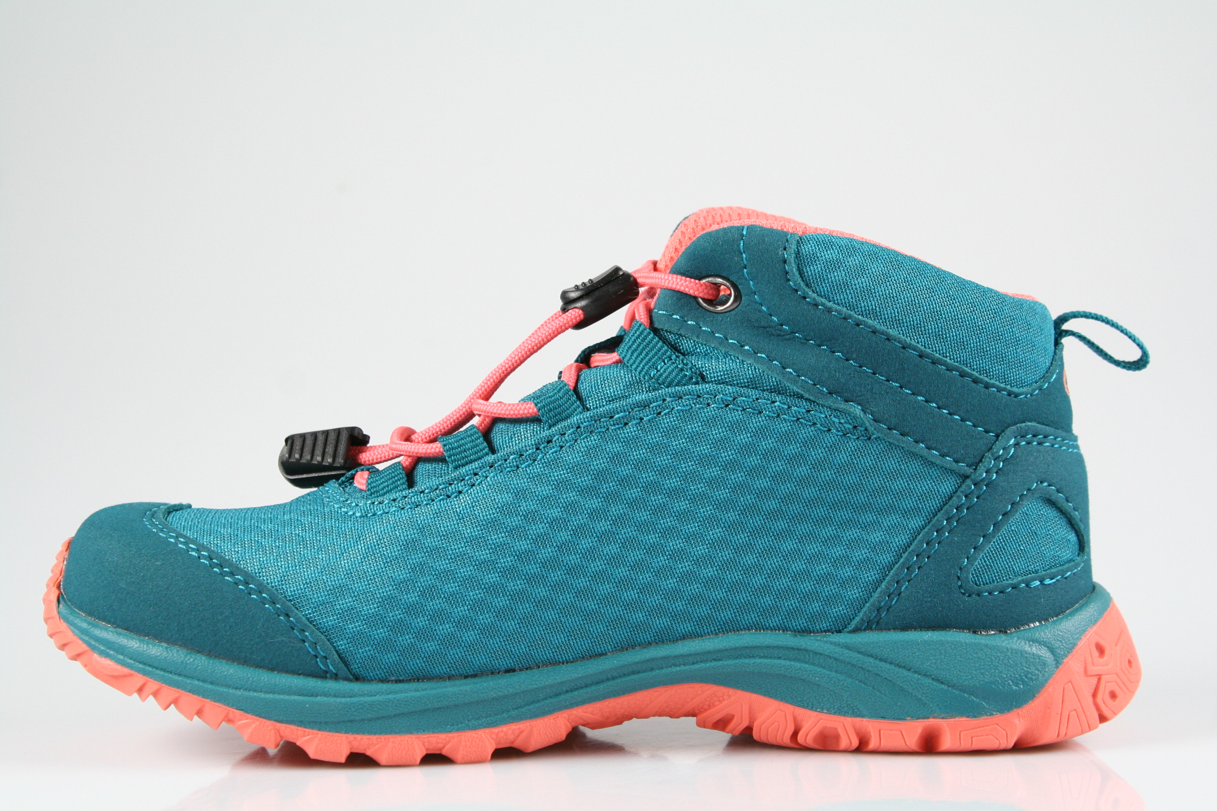 Typ: Boots; Farbe "petrol/lachs"; Ausstattung:; - Obermaterial: Mesh, Synthetik; - herausnehmbares Fußbett; - superleichte Laufsohle; - gepolsterter Schaftrand; - Gummizug zur Weitenregulierung; - wasserfest durch "ComforTex"-Membrane