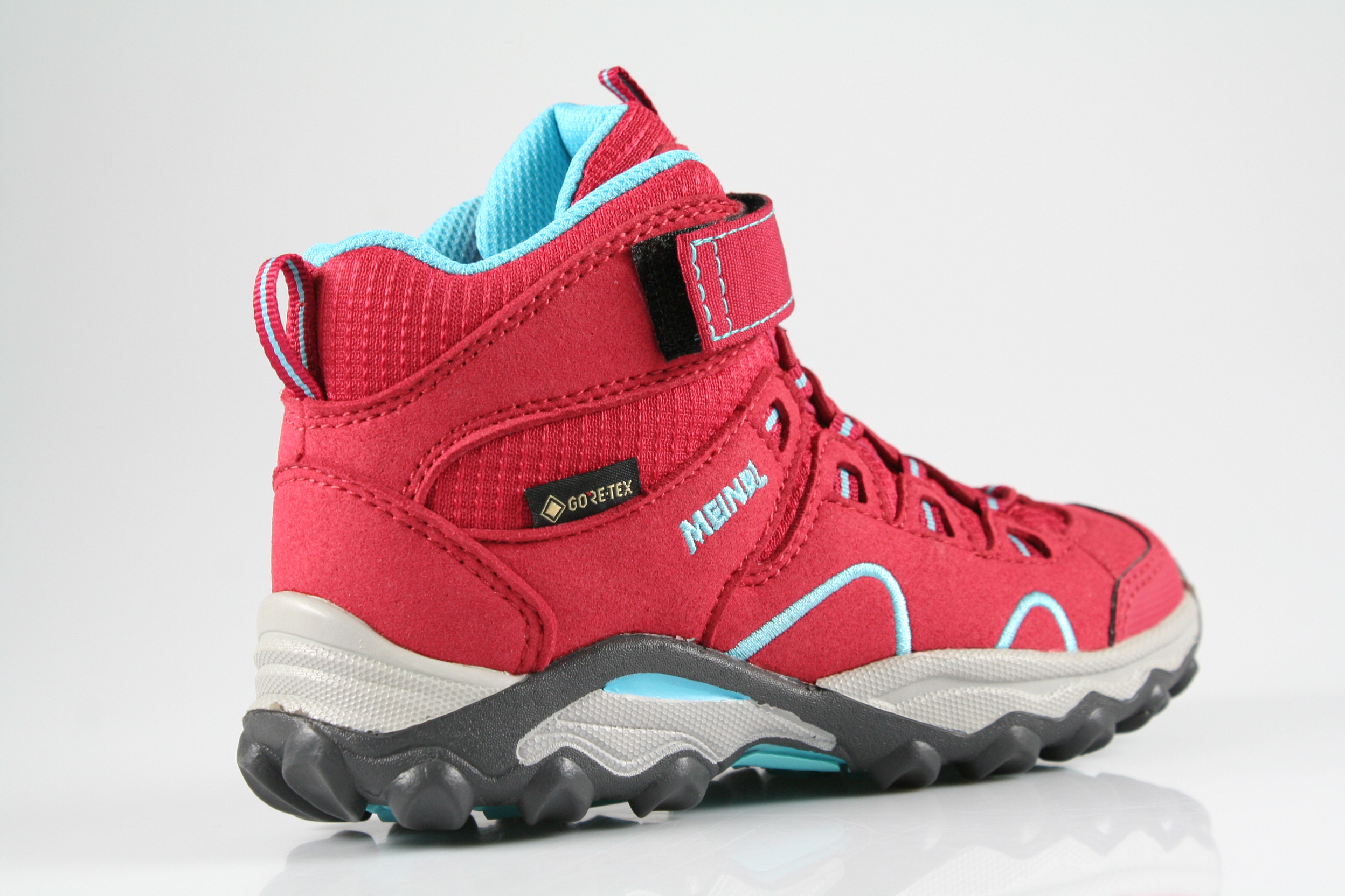 Typ: Boots; Farbe "rot/türkis"; Ausstattung:; - Obermaterial: Velourleder, Mesh; - Funktionsfutter; - herausnehmbares Fußbett; - flexible Laufsohle; - gepolsterter Schaftrand; - Klettverschluss zur Weitenregulierung; - wasserfest durch "GoreTex"-Membrane