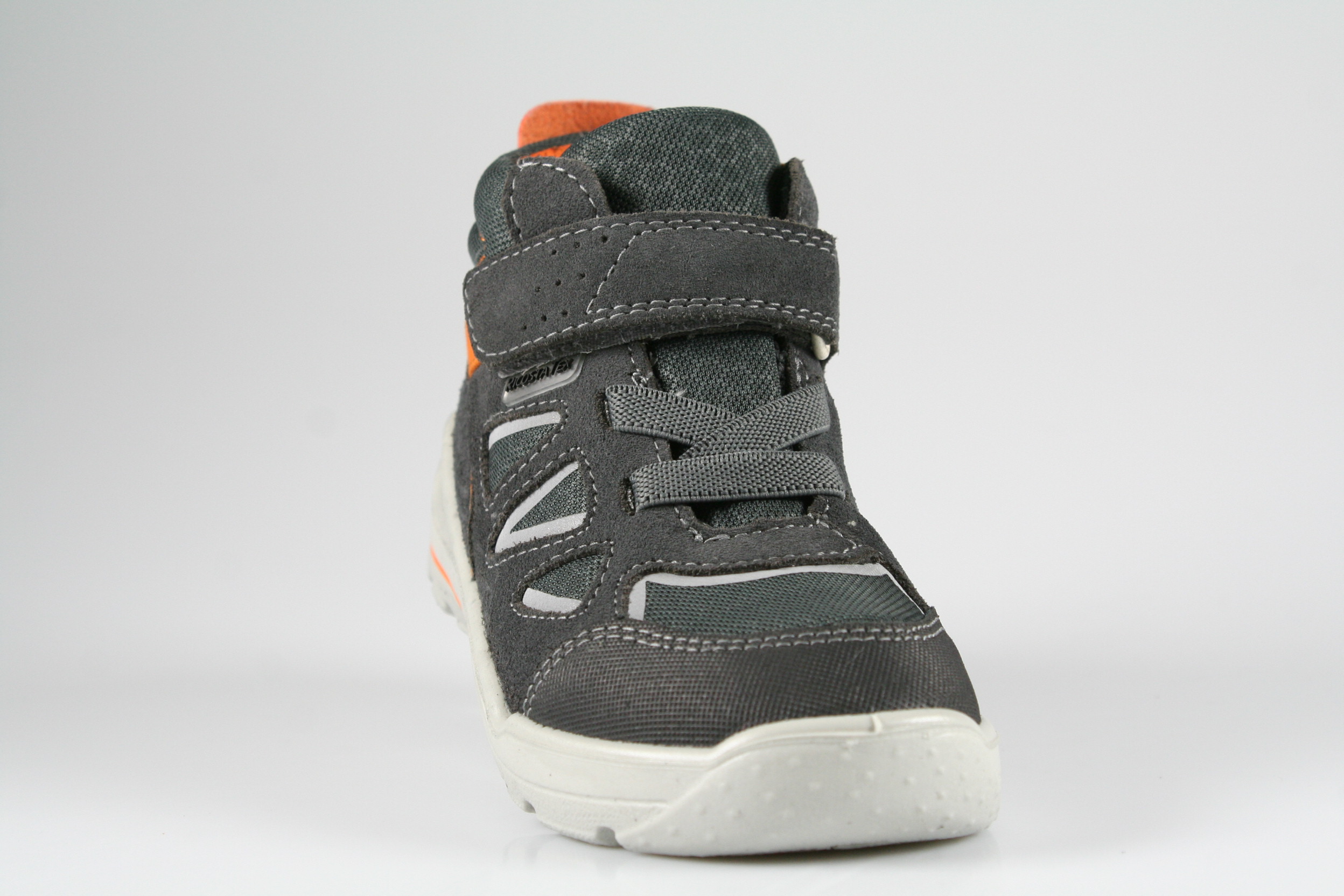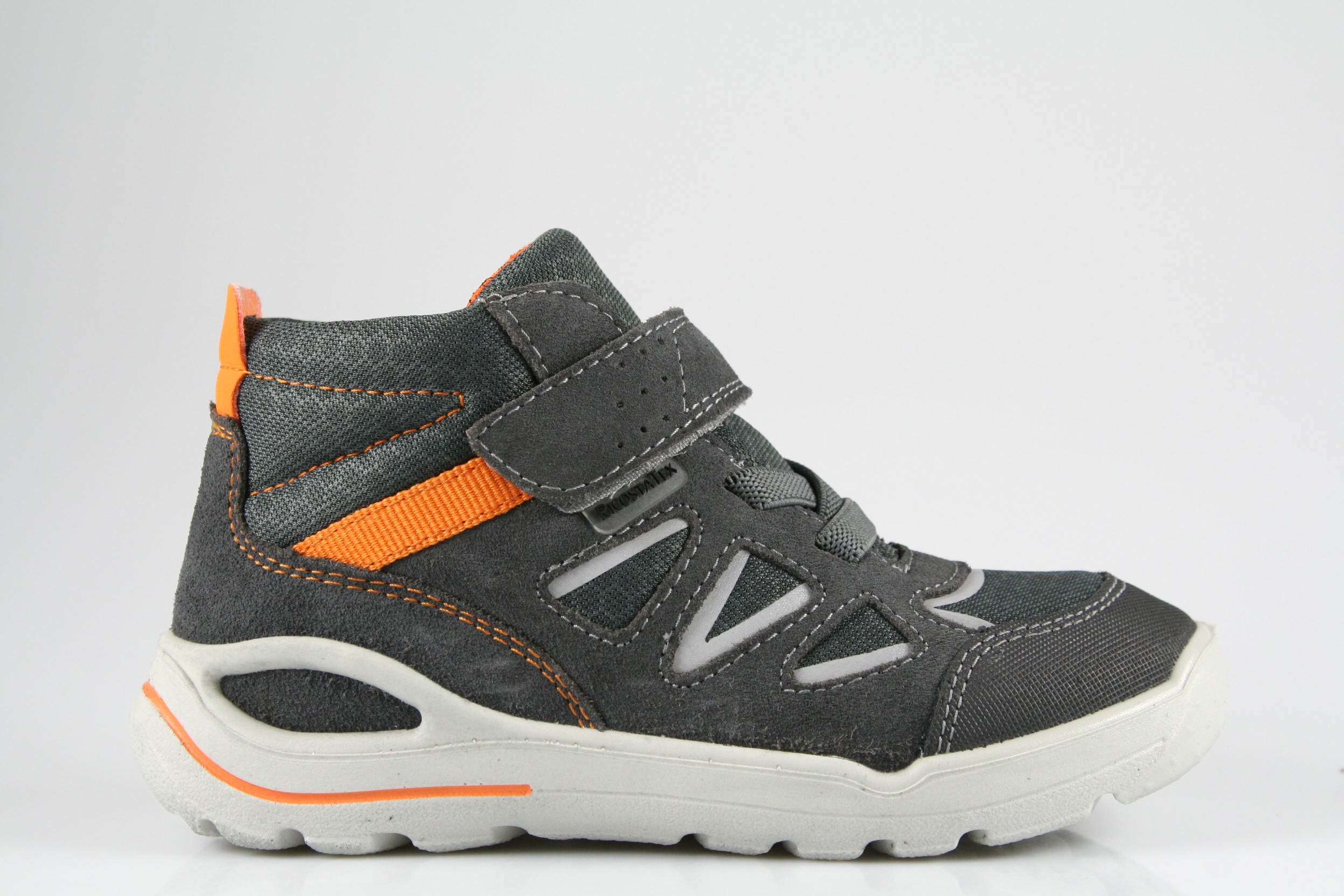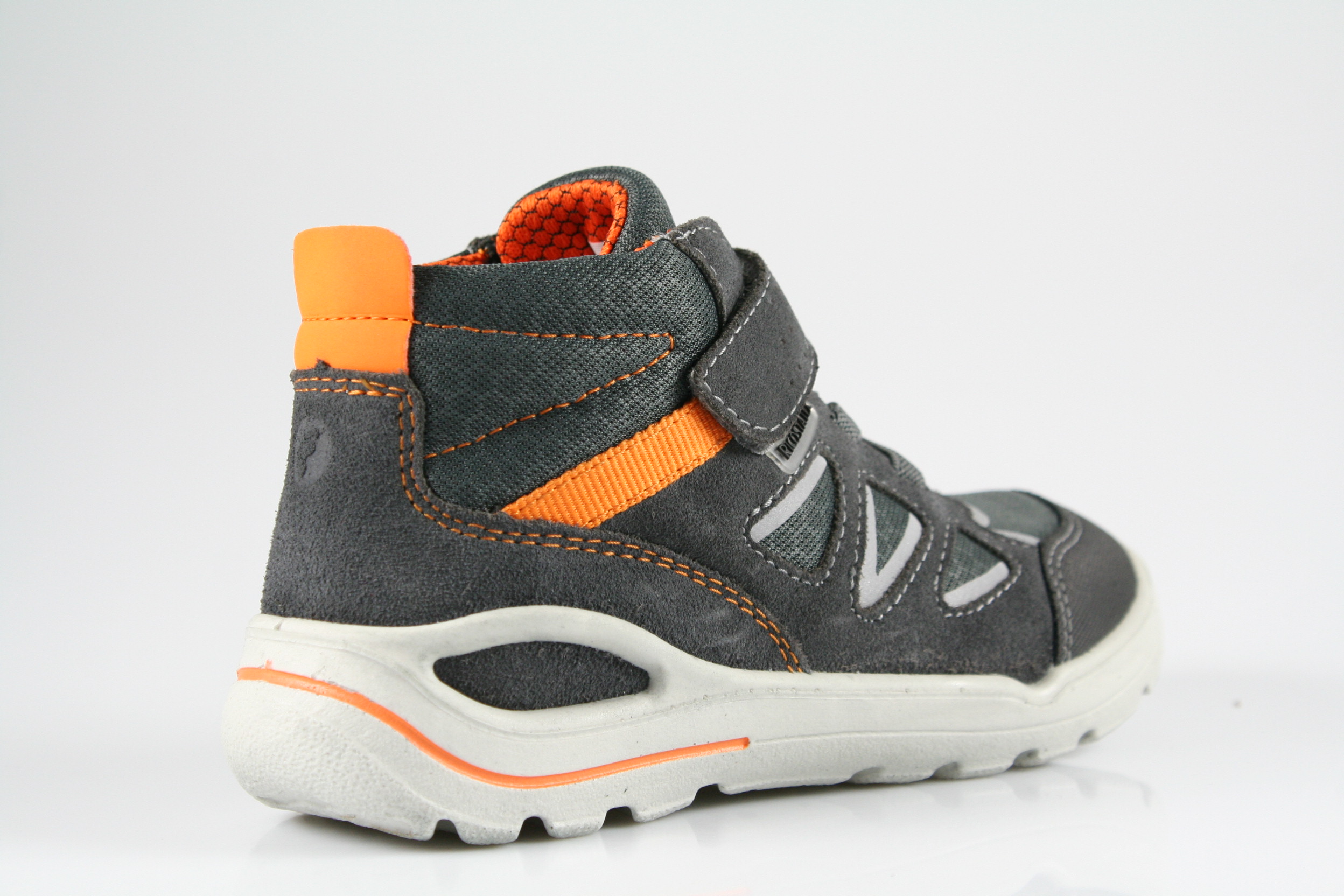 Typ: Boots; Farbe: grau/orange; Ausstattung:; - Obermaterial: Velour/Artico; - atmungsaktives Futter; - herausnehmbares Fußbett; - leichte, flexible Laufsohle; - gepolsterter Schaftrand; - Gummizug und Klettverschluss; - "Ricosta-Tex"-Membrane; - Modell "Active"; - Weite "mittel"
