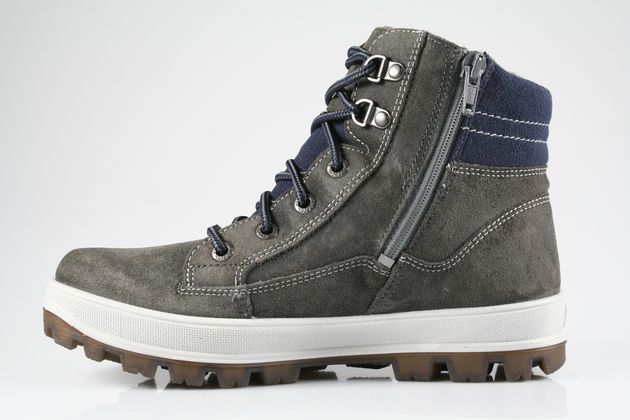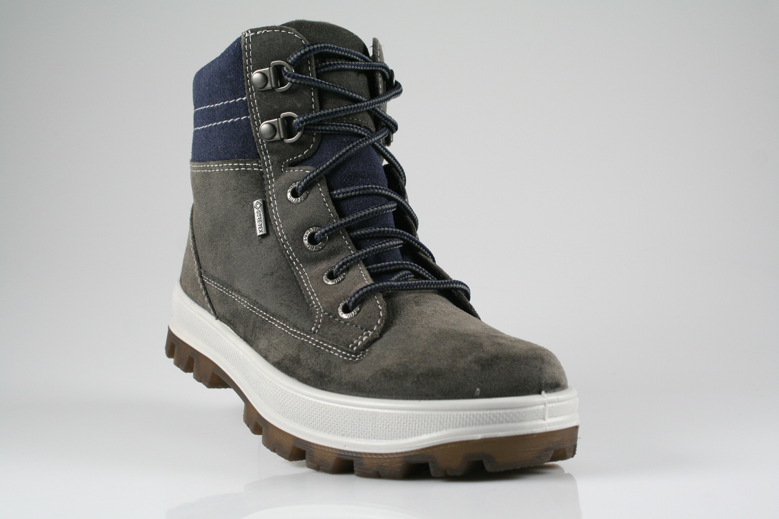 Typ: Boots; Farbe "grau/blau"; Ausstattung:; - Obermaterial: Velourleder; - Warmfutter; - weiches Fußbett; - flexible Laufsohle; - wasserfest durch "GoreTex"-Membrane; - gepolsterter Schaftrand; - Schnürsenkel und Reißverschluss